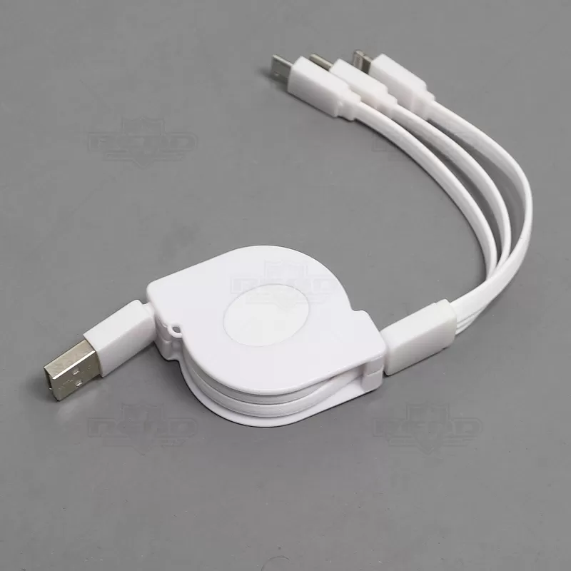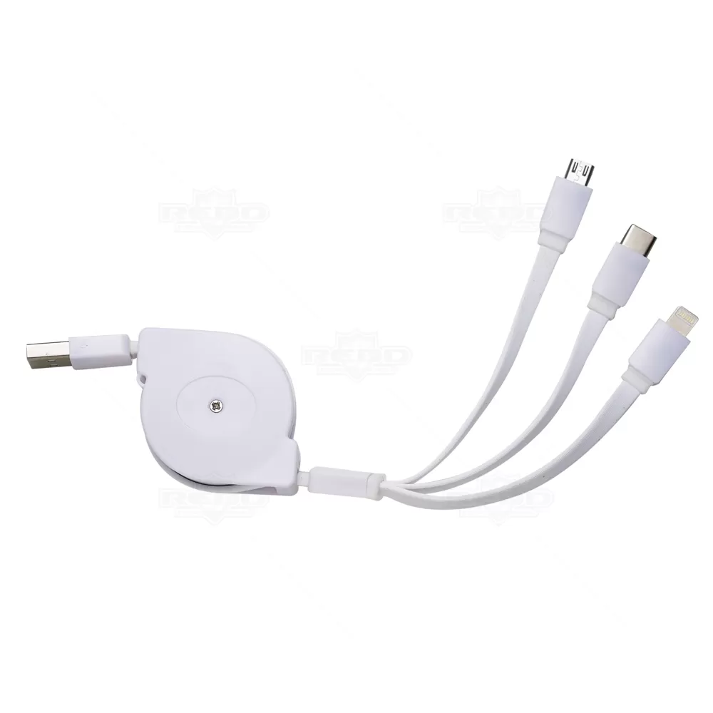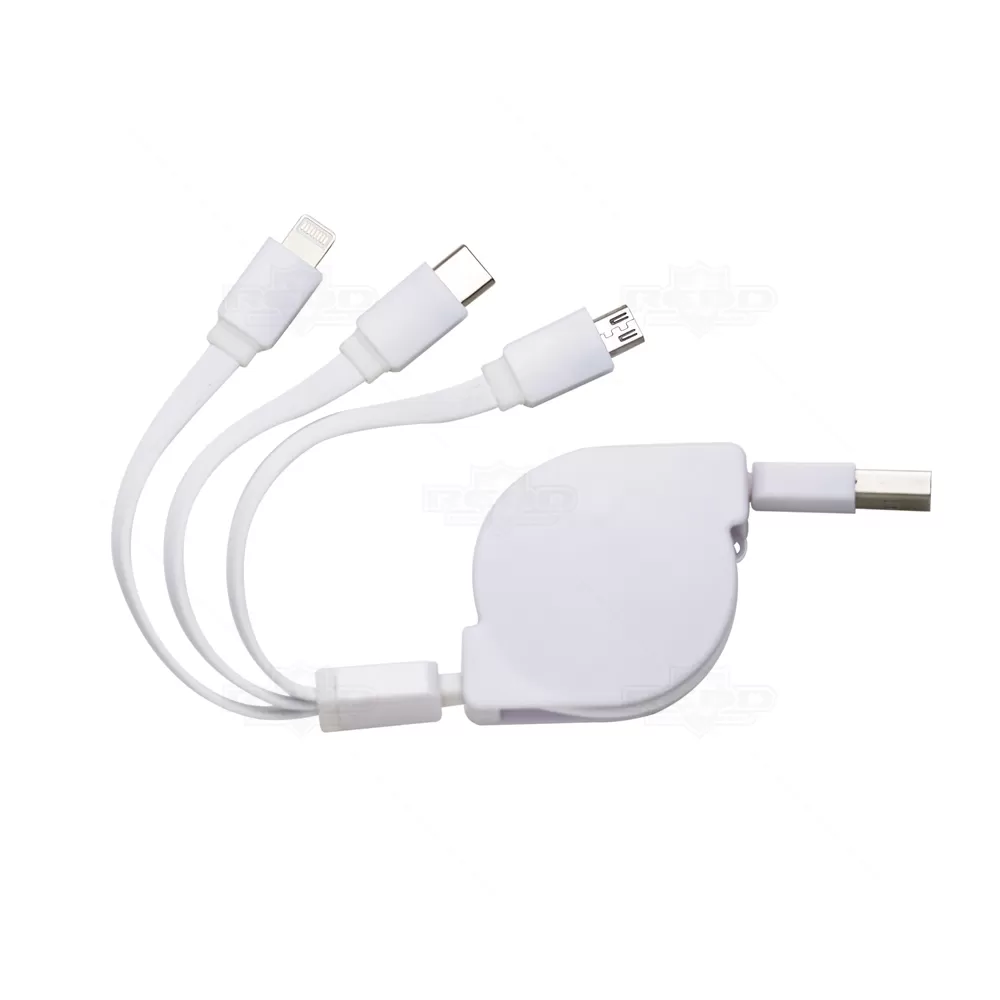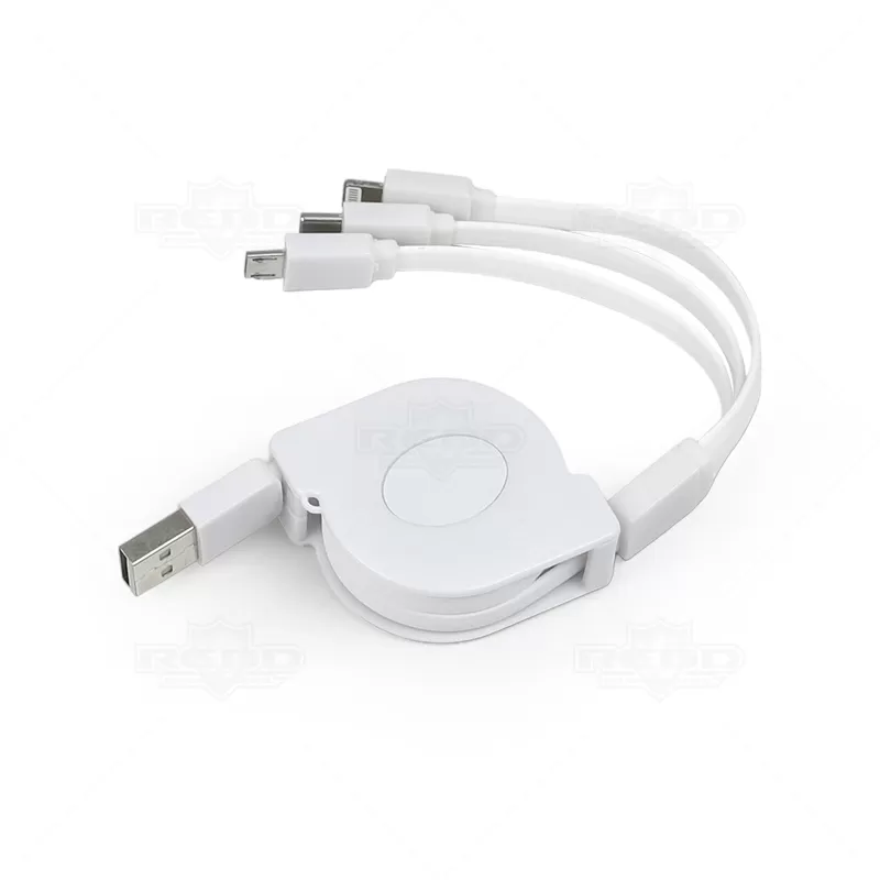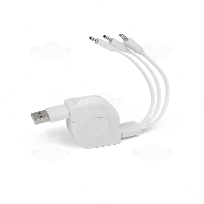 O cabo USB 3 em 1 retrátil personalizado é produzido em plástico resistente, garantindo longevidade ao produto. Uma extremidade é USB, enquanto a outra possui uma ponta 3 em 1, compatível com Micro-USB, Lightning e USB-C. Este acessório elegante e essencial é perfeito para o dia a dia, seja no escritório, em casa ou em viagens. Graças à sua característica retrátil, ocupa o mínimo espaço na bolsa ou mochila, evitando emaranhados. Ideal para brindes personalizados e eventos corporativos, combina praticidade e funcionalidade, tornando-o um presente apreciado em feiras e encontros empresariais.