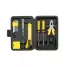 O kit ferramenta personalizado é um conjunto essencial para pequenos reparos em casa, no escritório ou em qualquer lugar. Armazenado em um estojo plástico durável e funcional na cor preta, mantém todas as ferramentas organizadas e acessíveis. O estojo apresenta texturização para melhor aderência e uma trava superior segura para transporte. Inclui 5 chaves Allen para parafusos sextavados, 1 fita métrica de 1 metro para medições precisas, 1 chave teste para corrente elétrica, 1 estilete, 1 chave de fenda e 1 chave Philips para diferentes tipos de parafusos, além de um alicate versátil para aperto, corte e torção. Com 11 peças no total, oferece praticidade e eficiência para manutenções rápidas. Ideal para brindes corporativos ou uso pessoal, combina qualidade e funcionalidade em um design personalizado.