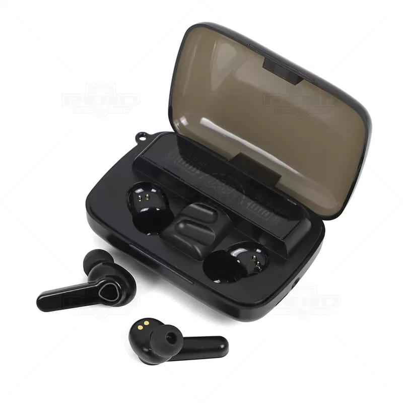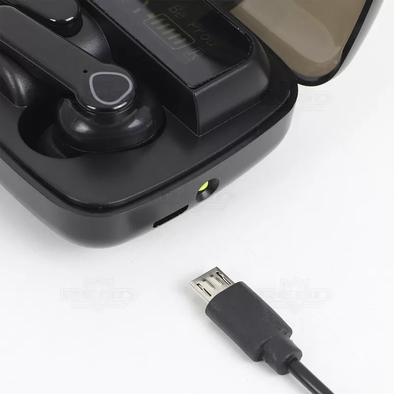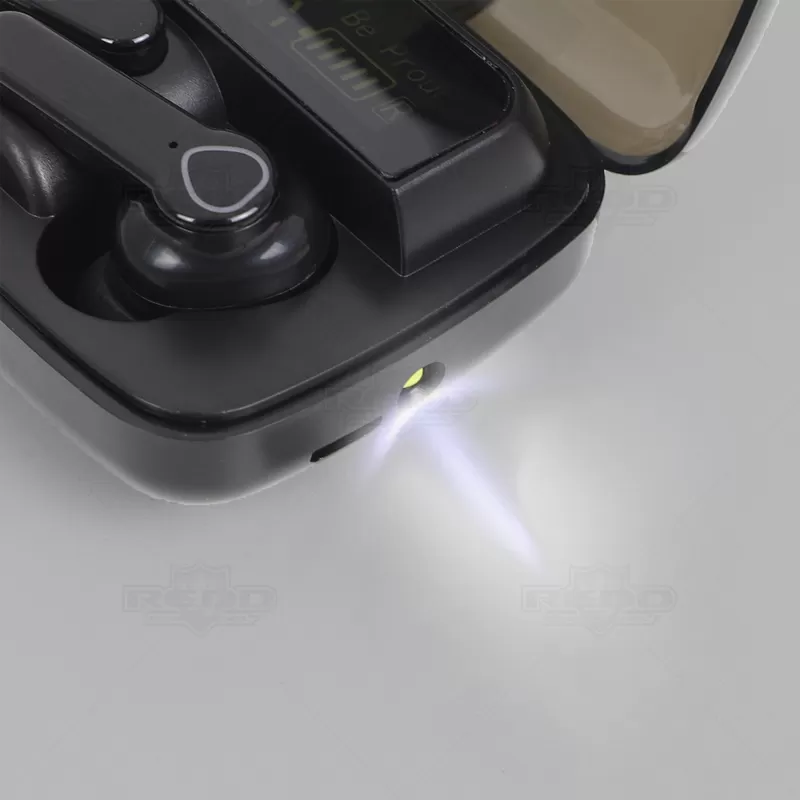 Fone de ouvido intra-auriculares com tela de LED e caixa de carregamento personalizada, com microfone embutido e slot de carregamento preto tendo portas USB e MicroUSB. Com a mais avançada tecnologia é compatível com todos os dispositivos IOS e Android, transmissão rápida e estável. Qualidade de som estéreo surround, aprimoram sua experiência de audição, oferecendo som de alta fidelidade. Equipado com alto-falante que fornece som verdadeiro e desempenho poderoso, você pode se divertir totalmente ouvindo sua música no cotidiano e nos esportes. Com display de bateria e fechamento magnético, o case pode ser utilizado também como um power bank de baixa capacidade para emergênciase conta ainda com uma lanterna. Material plástico. Acompanha 2 pares de borrachas em diferentes tamanhos e cabo USB. Ideal para brindes promocionais e eventos corporativos.