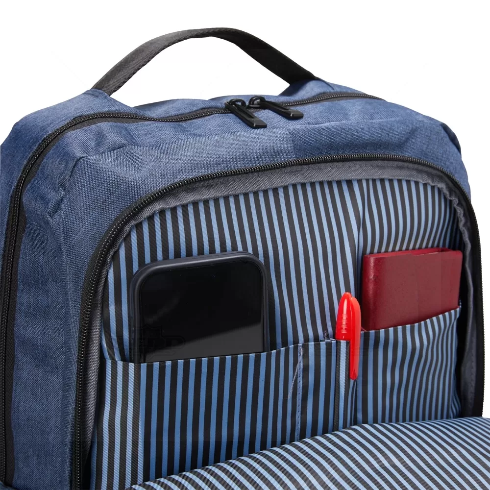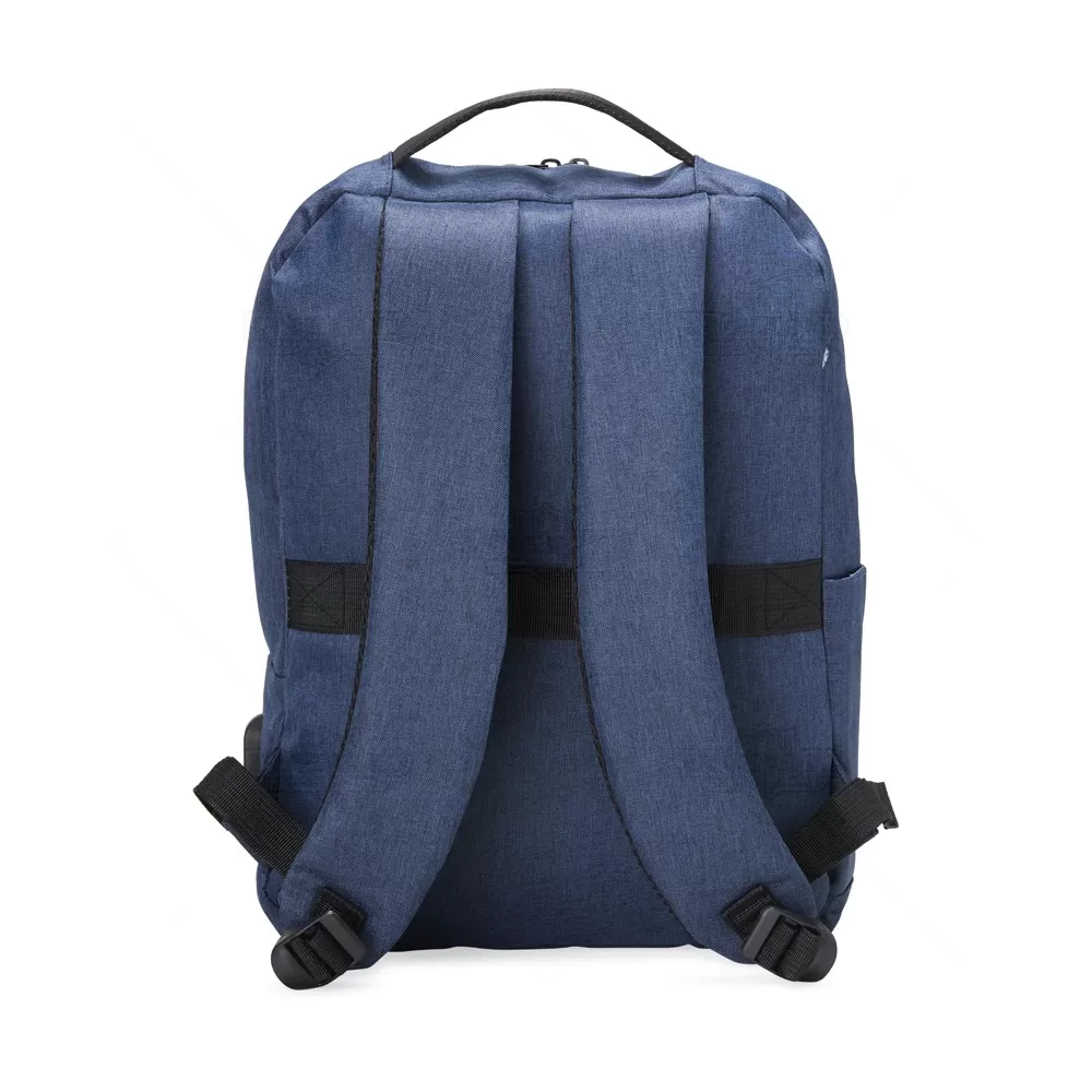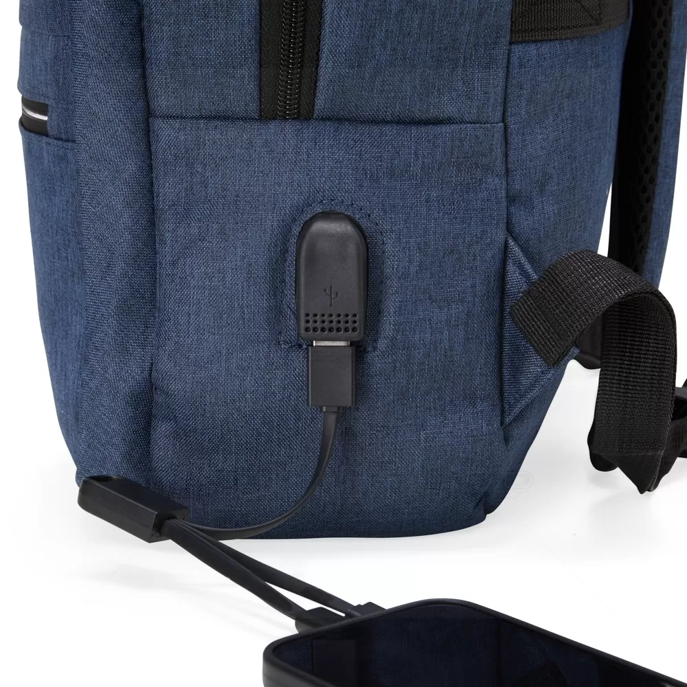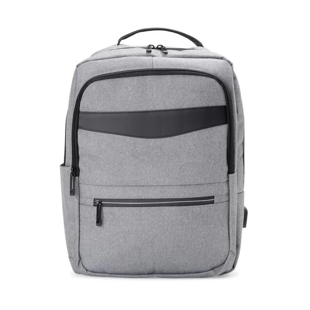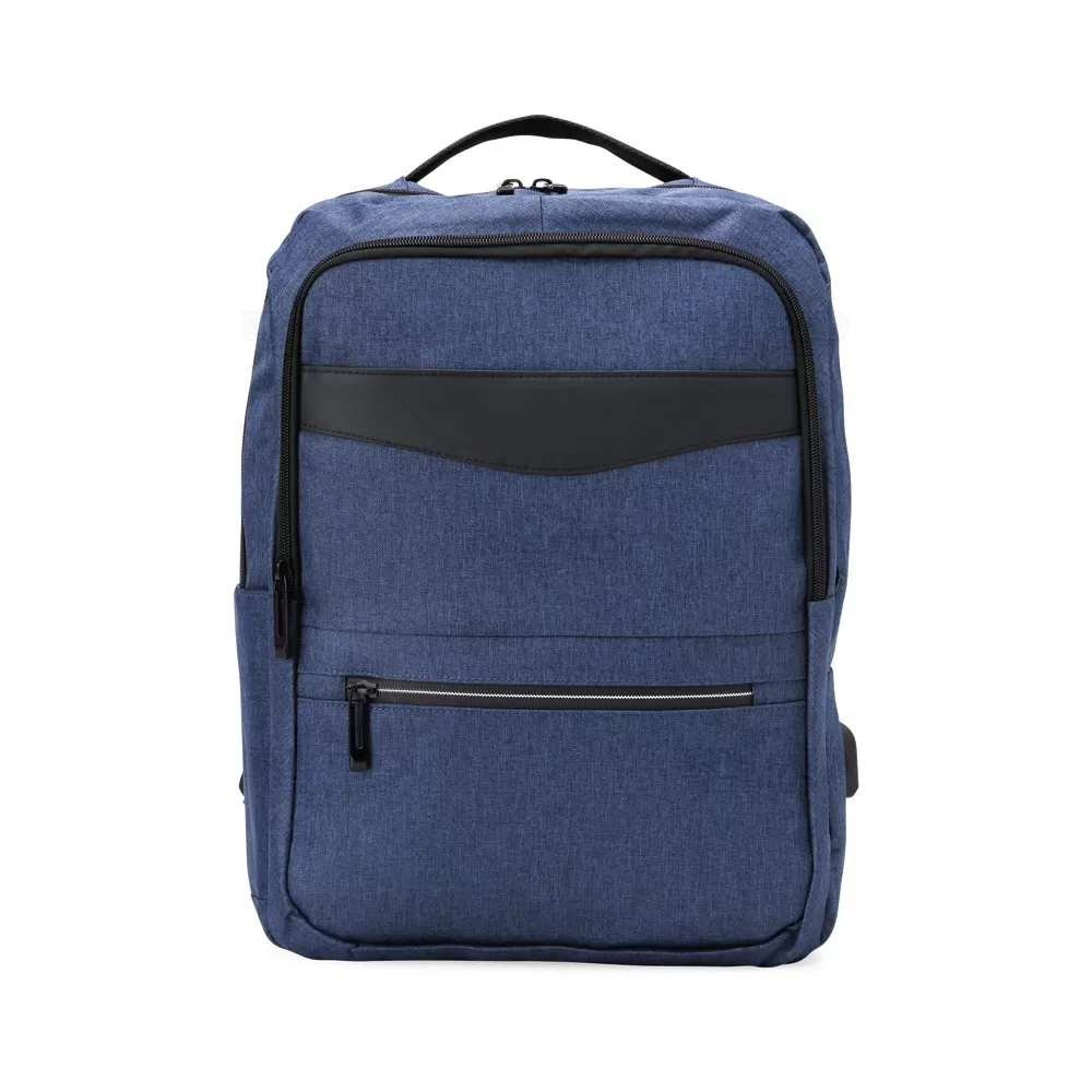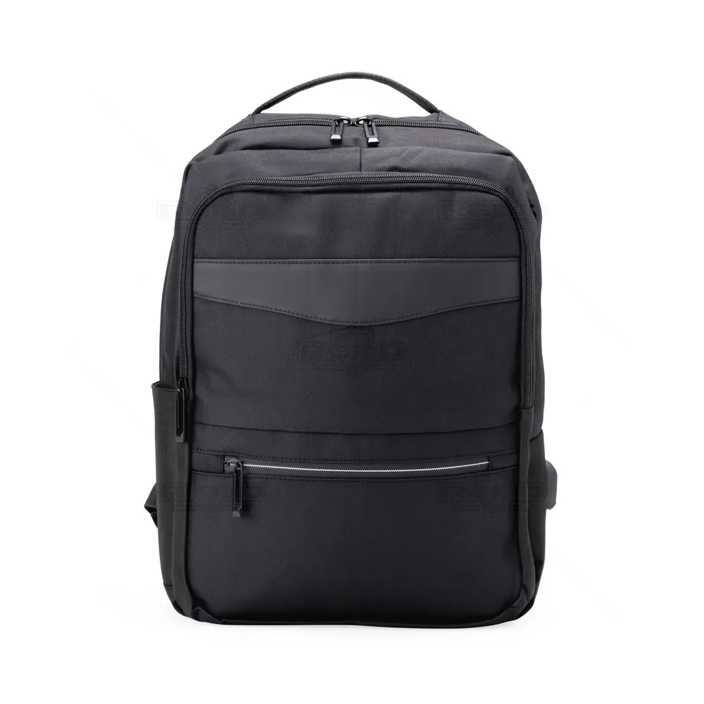 A mochila para notebook personalizada, feita em nylon com detalhes em tecido sintético que imita couro, combina elegância e praticidade, sendo ideal para o uso diário e viagens. Projetada para notebooks de até 15,6", oferece um compartimento principal espaçoso e seguro. Um bolso lateral prático é ideal para garrafas ou itens de acesso rápido. Na frente, dois compartimentos com zíper: um menor para objetos como chaves, celulares ou carteiras, e outro maior, com bolsos internos para canetas, documentos e outros itens. O compartimento principal é acolchoado para proteger seu notebook e eletrônicos. Inclui uma entrada USB externa para conexão de powerbank (não incluído), permitindo carregar dispositivos sem abrir a mochila. Alças de ombro ajustáveis e acolchoadas proporcionam conforto, enquanto a alça de mão e a faixa trolley na parte traseira facilitam fixá-la à alça de uma mala de viagem. Essa mochila personalizada é perfeita para profissionais e estudantes que valorizam funcionalidade, estilo e qualidade.