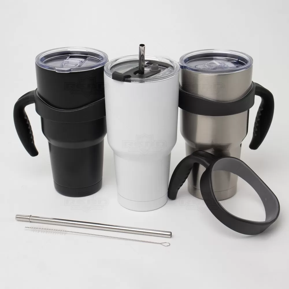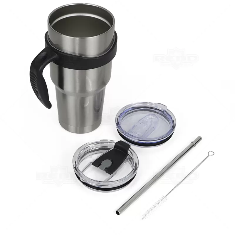 Caneca térmica personalizada produzida em aço inox, com capacidade para 800ml. Possui alça removível (dando a opção de ser usada como copo ou caneca), duas tampas com anel de vedação sendo uma com trava de abertura tipo MUG e ainda abertura para acesso do canudo e fechamento em borracha e a segunda também estilo MUG porém com fecho deslizante afim de evitar vazamento; conta ainda com o canudo em inox, pensando em sustentabilidade e escovinha para higienização do mesmo. Essa combinação de recursos é conveniente para pessoas que desejam desfrutar de uma bebida enquanto estão em movimento e conservar a temperatura da bebida gelada ou quente por mais tempo. Ideal para brindes promocionais e eventos corporativos pois possibilita a gravação do logo da sua empresa.