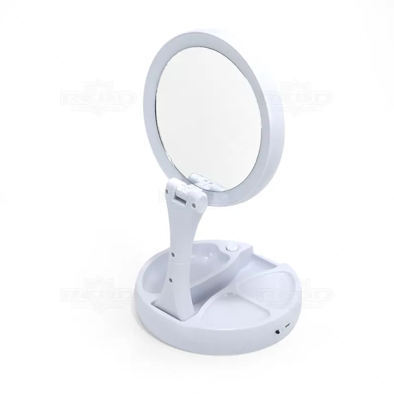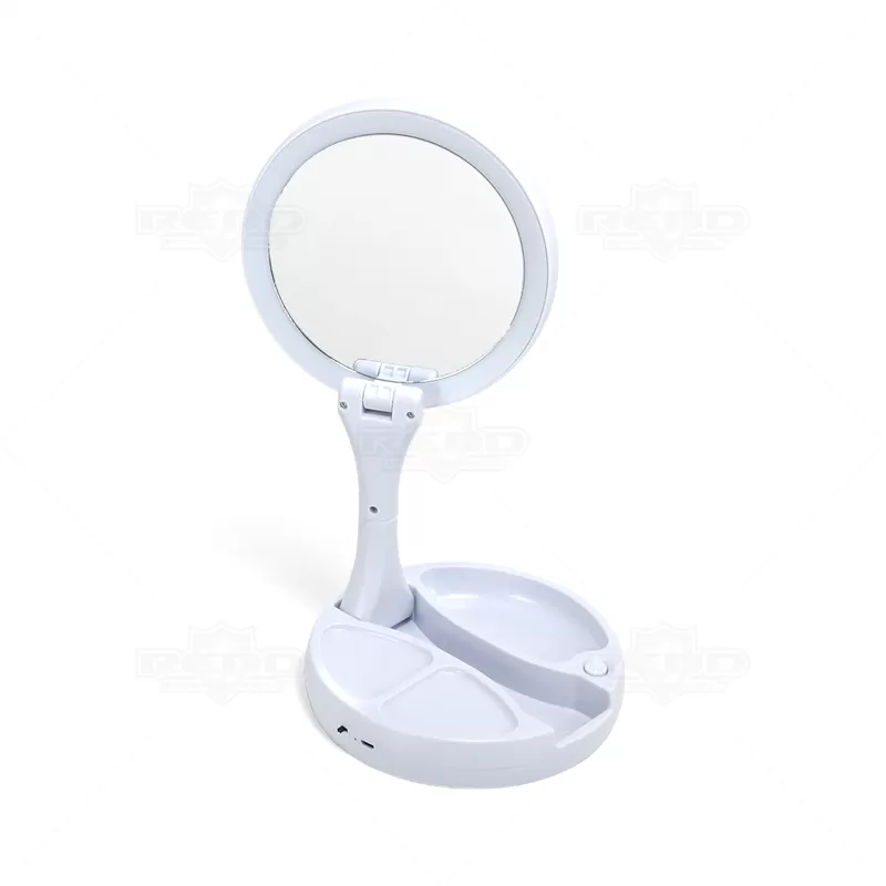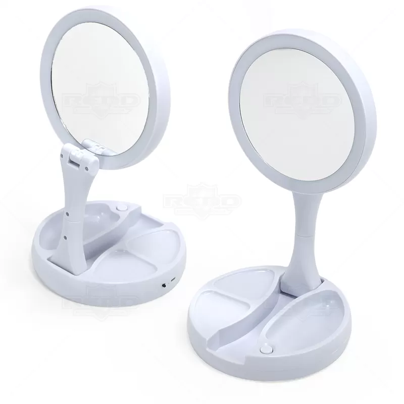 O espelho articulado com LED personalizado, é um dispositivo funcional e moderno que combina as características de um espelho de maquiagem e aumento com a conveniência da iluminação LED integrada. Esse espelho é projetado para oferecer uma experiência aprimorada durante a aplicação de maquiagem, cuidados com a pele ou qualquer atividade que exija uma visão clara e detalhada do rosto. O espelho é montado em um suporte articulado, produzido em plástico resistente, que permite ajustar facilmente o ângulo e a posição conforme sua necessidade. Isso possibilita uma visualização perfeita para diferentes atividades. Esse espelho têm uma superfície normal (1x) e a outra com ampliação (10x), para proporcionar uma visão mais detalhada e precisa, especialmente útil para tarefas específicas, como aplicação de maquiagem detalhada ou remoção de pelos. Uma característica distinta é a presença de luzes LED ao redor do espelho, isso ajuda a garantir uma iluminação uniforme e brilhante para uma utilização precisa. O espelho é alimentado por 4 pilhas AA (não acompanha) ou por meio de um cabo USB (necessário uma fonte de alimentação). Isso proporciona mobilidade e flexibilidade de uso, seja em casa ou em uma viagem. Ideal para brindes promocionais e eventos corporativos.