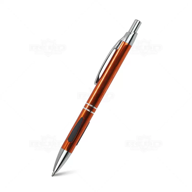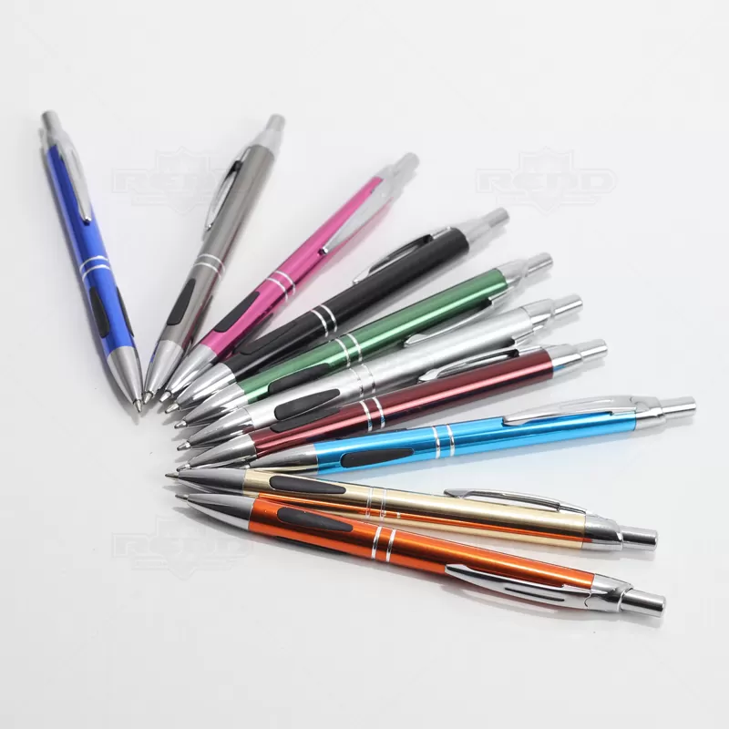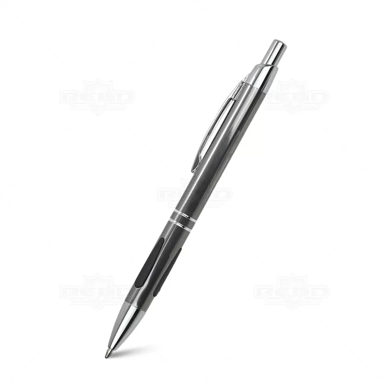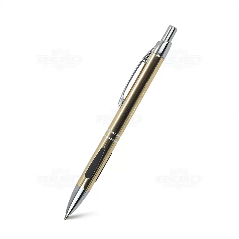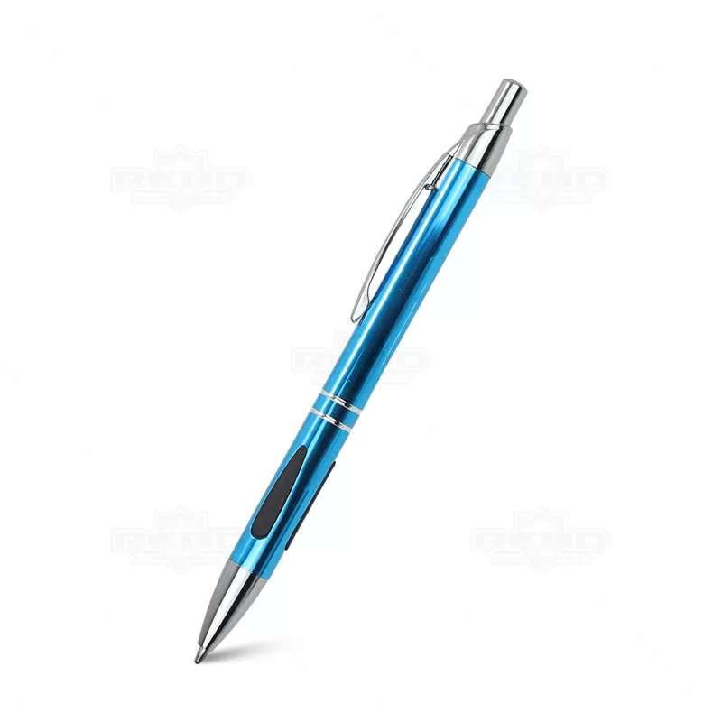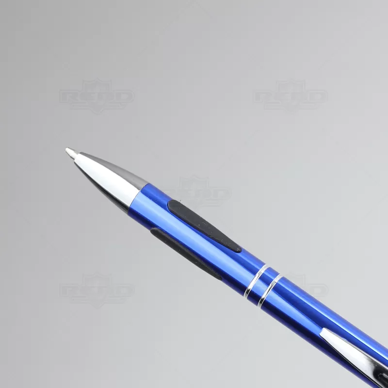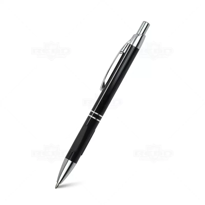Caneta de Metal Personalizada, um acessório que une design sofisticado e funcionalidade prática. Com um acabamento de alta qualidade, esta caneta é tanto elegante quanto durável, projetada para proporcionar uma experiência de escrita superior, com dois anéis prateados na parte inferior adicionam um toque de sofisticação e estilo, detalhe emborrachado na área de pegada oferece melhor aderência e conforto, garantindo uma escrita firme e controlada, esferográfica de tinta azul de alta qualidade, clip de metal robusto não só proporciona durabilidade, mas também facilita o transporte e mecanismo de acionamento por click torna a caneta fácil de usar, permitindo que você comece a escrever com apenas um clique, e garantindo que a ponta esteja protegida quando não estiver em uso. Seja para uso pessoal, como brinde corporativo ou em eventos promocionais, esta caneta oferece qualidade e estilo em cada traço.