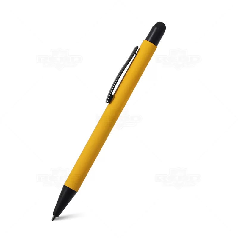 A caneta de metal conta com um acabamento fosco soft touch proporcionando uma sensação suave ao toque, o acionamento por click oferece conveniência instantânea, esferográfica azul de alta qualidade e a ponteira touch na extremidade da caneta permite que você use facilmente tablets e smartphones, oferecendo versatilidade e praticidade em suas atividades digitais. Com um corpo colorido e extremidades e clip em preto, esta caneta combina charme e elegância, destacando-se como um acessório de estilo no seu dia a dia. Personalize com o logo da sua empresa ou marca para uma promoção eficaz e duradoura, garantindo visibilidade em cada uso. Seja para uso pessoal, como brinde corporativo ou em campanhas de marketing, esta caneta é uma escolha versátil e elegante que certamente impressionará.