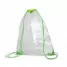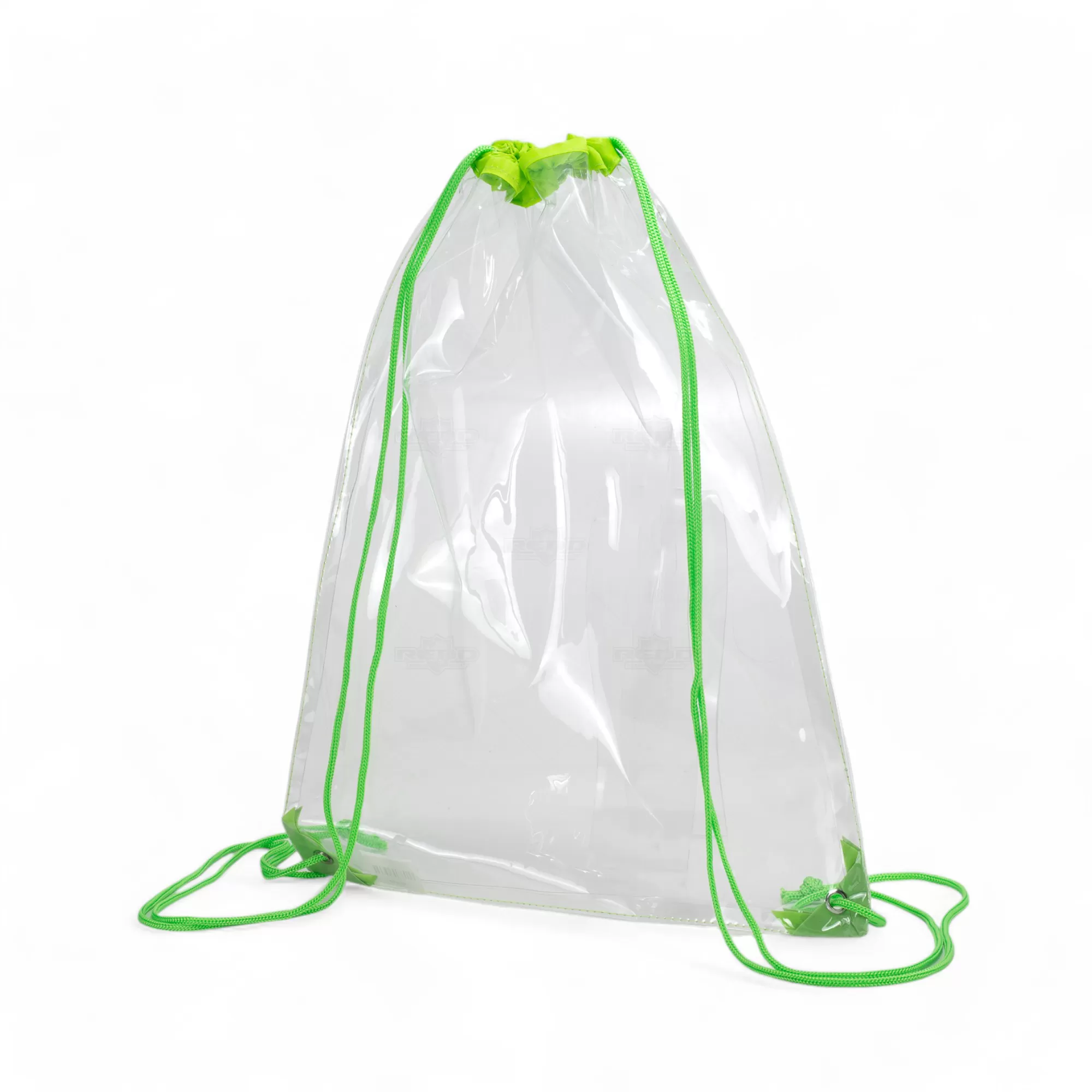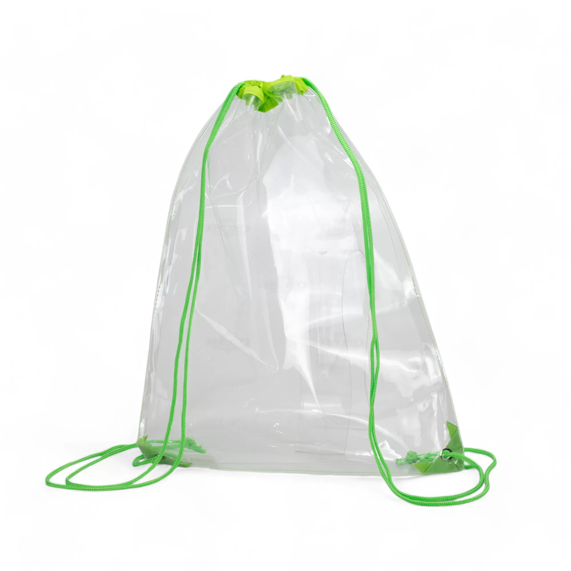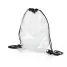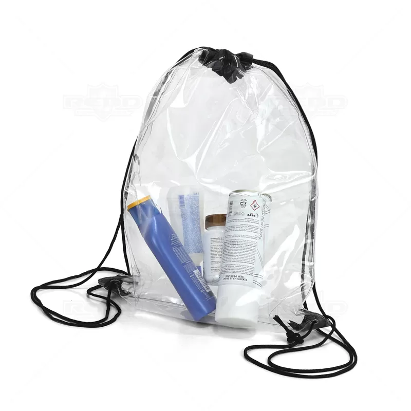 A mochila saco é feita de PVC transparente, o que facilita ver o conteúdo interno. É uma bolsa grande com cordões na parte superior que servem como alças ajustáveis e se fecha puxando as mesmas, com ilhós para dar maior resistência e durabilidade. Sua transparência a torna ideal para eventos onde a segurança é crucial, como estádios esportivos ou festivais, permitindo que os inspetores vejam facilmente o que está dentro. Além disso, o PVC transparente confere um visual moderno e contemporâneo à mochila, sendo uma escolha popular para quem gosta de um estilo urbano e descolado, com uma grande visibilidade da sua marca a torna perfeita para brindes promocionais, eventos corporativos e esportivos e feiras de divulgação.