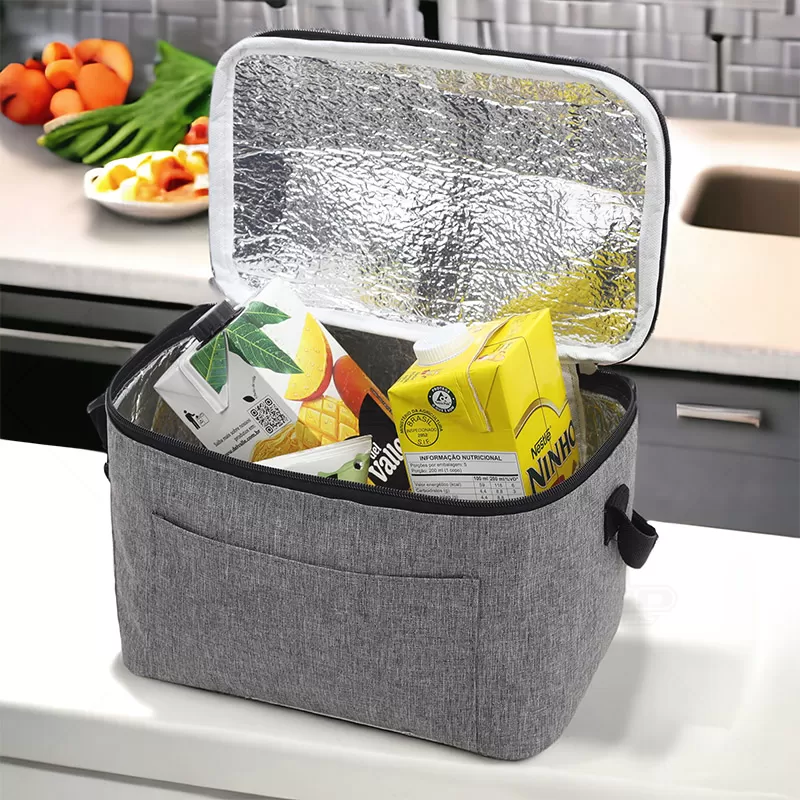 Esta bolsa térmica personalizada é perfeita para eventos corporativos e brindes personalizados, combinando funcionalidade, estilo e praticidade. Feita de tecido resistente e durável, suporta o uso diário e protege o conteúdo contra impactos e condições adversas. Com capacidade de 9 litros, é ideal para transportar refeições completas, lanches ou bebidas, sendo perfeita para piqueniques, almoços de trabalho, viagens e atividades ao ar livre. Inclui um bolso frontal para itens pequenos como talheres e guardanapos, e uma alça ajustável para maior conforto e conveniência. Esta bolsa é a escolha ideal para quem procura uma solução prática e estilosa para manter alimentos e bebidas na temperatura ideal. Não é adequado colocar gelo pois por mais que a bolsa conserve a temperatura o gelo irá derreter e vazar pela costura, caso o objetivo principal seja a utilização de gelo, opte por nossas opções de coolers. Ótima opção para brindes promocionais, eventos corporativos e gastronômicos.