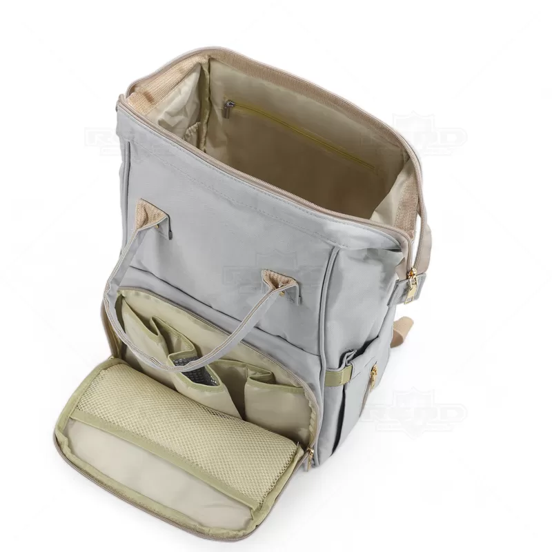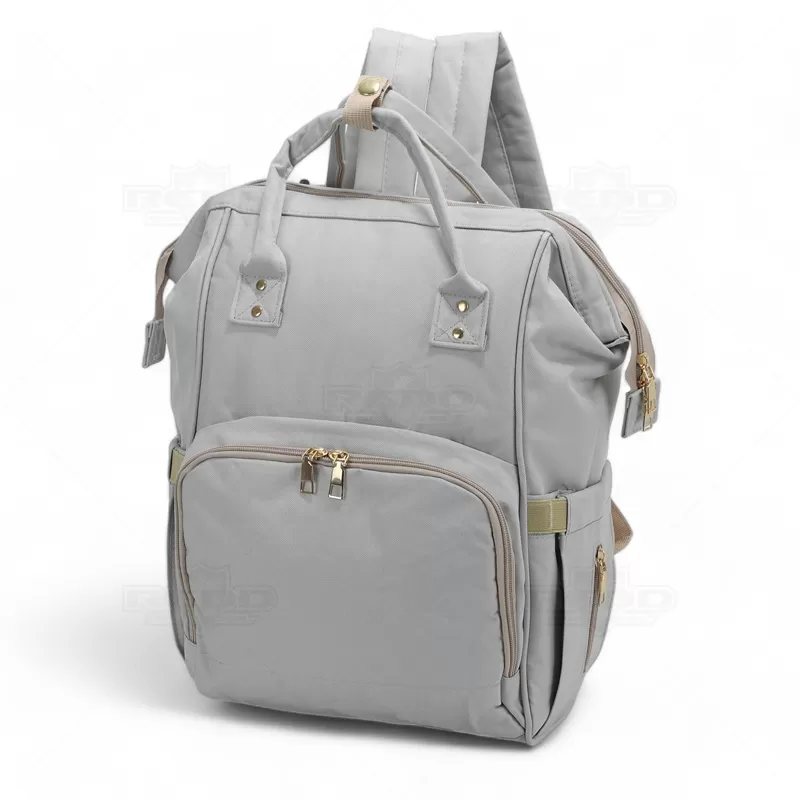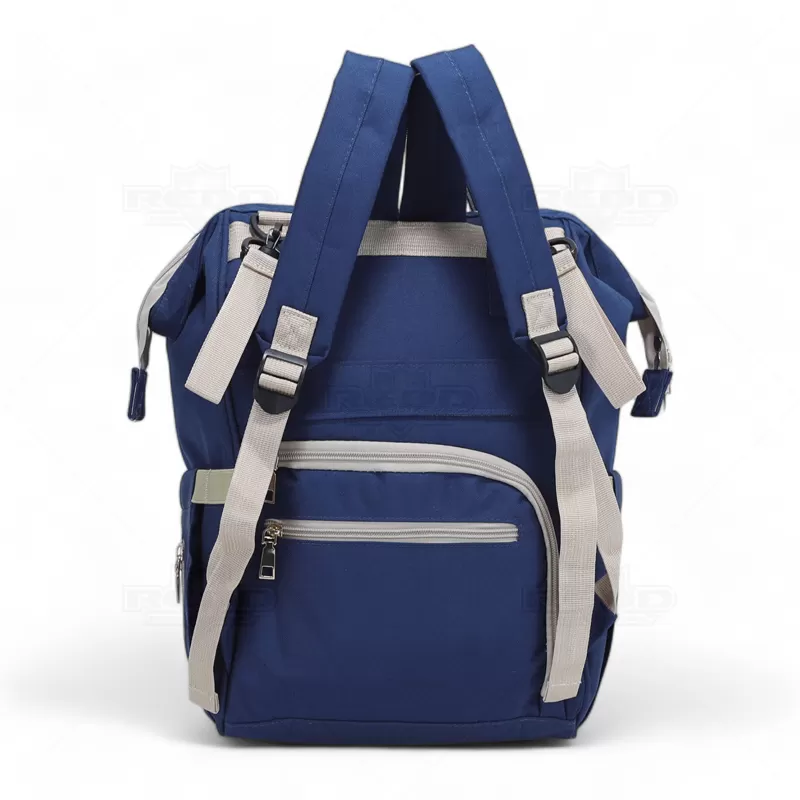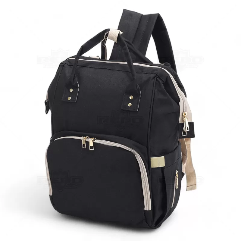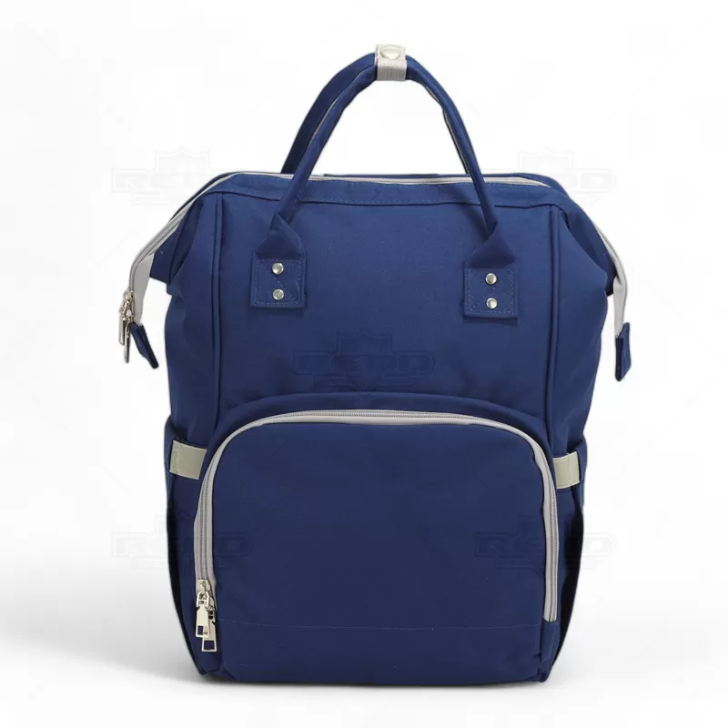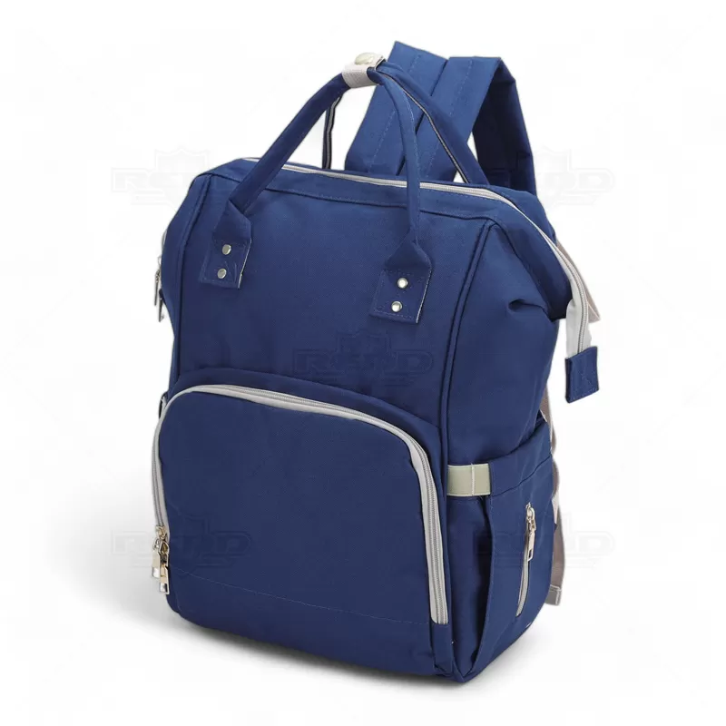 Mochila maternidade bolsa bebê personalizada, produzida em oxford resistente a água, com amplo espaço interno, bolso frontal com 3 divisórias internas revestidas em alumínio e fechamento por zíper, 2 bolsos laterais (sendo um apropriado para a embalagem de lenço umedecido), alça de mão dupla com botão de pressão, alça para encaixe para carrinho de bebê (estilo trolley) alça de costas ajustáveis para ser transportada como mochila, e por fim, duas pequenas alças para pendurar ou carregar um cobertor, blusa e o que mais for necessário, um compartimento com zíper na parte posterior e outra abertura por zíper dando acesso rápido a parte interna. A parte interna, além de ampla ainda conta com pequeno bolso com zíper em plástico para armazenar itens molhados e mais 04 compartimentos separados, com elástico podendo ser utilizado conforme lhe convier, e ainda estrutura metálica trazendo mais praticidade a utilização. Ideal para brindes promocionais e eventos puerperais.