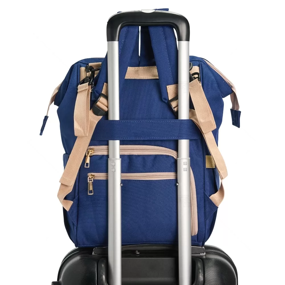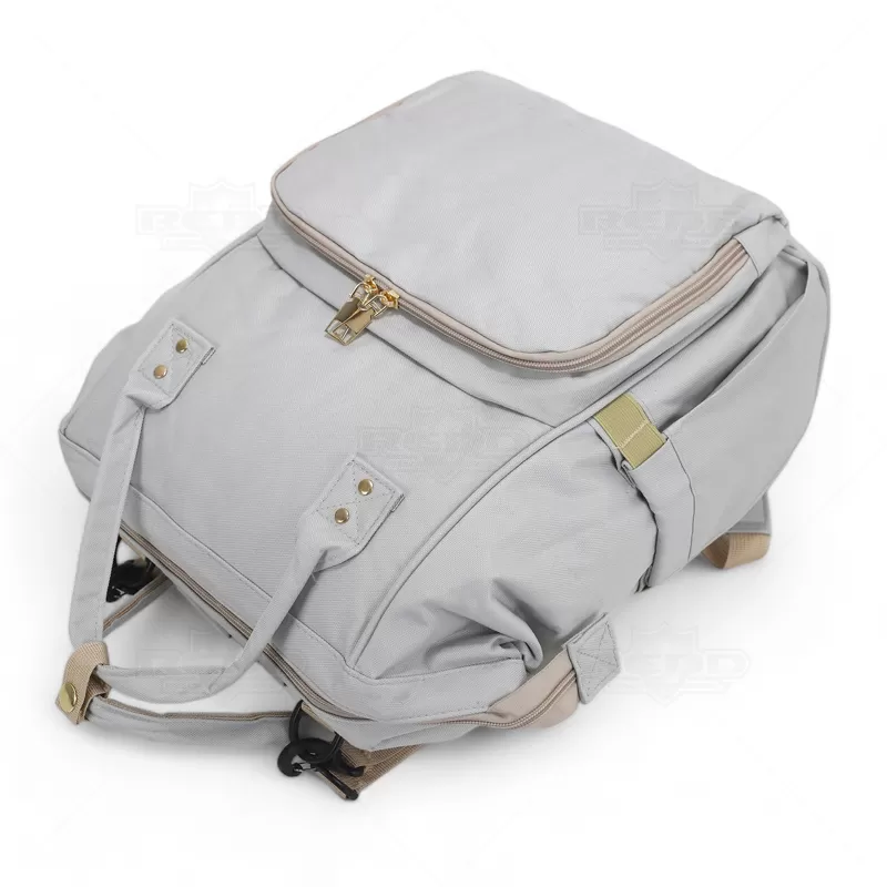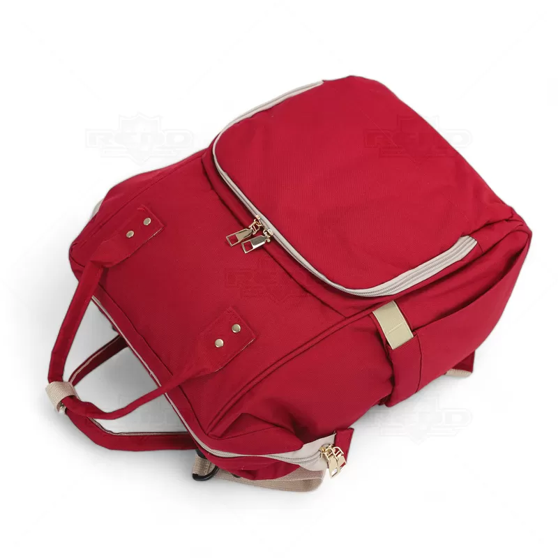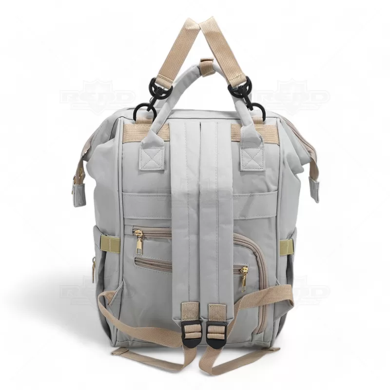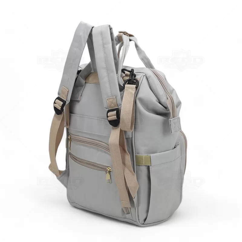 Mochila maternidade bolsa bebê personalizada, produzida em oxford resistente a água, com amplo espaço interno, bolso frontal com 3 divisórias internas revestidas em alumínio e fechamento por zíper, 2 bolsos laterais (sendo um apropriado para a embalagem de lenço umedecido), alça de mão dupla com botão de pressão, alça para encaixe para carrinho de bebê (estilo trolley) alça de costas ajustáveis para ser transportada como mochila, e por fim, duas pequenas alças para pendurar ou carregar um cobertor, blusa e o que mais for necessário, um compartimento com zíper na parte posterior e outra abertura por zíper dando acesso rápido a parte interna. A parte interna, além de ampla ainda conta com pequeno bolso com zíper em plástico para armazenar itens molhados e mais 04 compartimentos separados, com elástico podendo ser utilizado conforme lhe convier, e ainda estrutura metálica trazendo mais praticidade a utilização. Ideal para brindes promocionais e eventos puerperais.