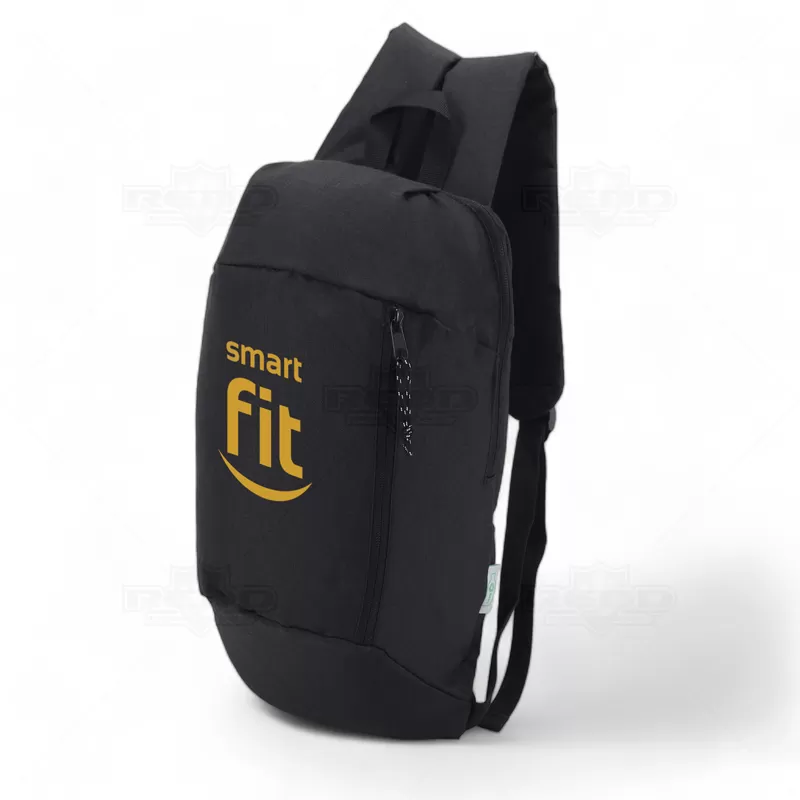 Mochila personalizada, para ser compacta e leve, oferecendo praticidade e conforto. A mochila personalizada é confeccionada em RPET, tornando-a "amiga do ambiente", perfeita para suportar o desgaste das atividades do dia a dia. Ela possui um design ergonômico, com alças acolchoadas e ajustáveis ??para garantir um ajuste confortável nos ombros. Apesar de seu tamanho compacto, a mochila oferece espaço suficiente para armazenar itens essenciais, possui um compartimento principal com zíper e um bolso para organizar objetos menores, como chaves, celular e carteira. Uma mochila adequada para pequenas tarefas diárias, ida a academia onde é possível levar seu squeeze ou garrafa de água, uma toalha e pequenos utensílios. Ideal para brindes promocionais, eventos fitness e corporativos.