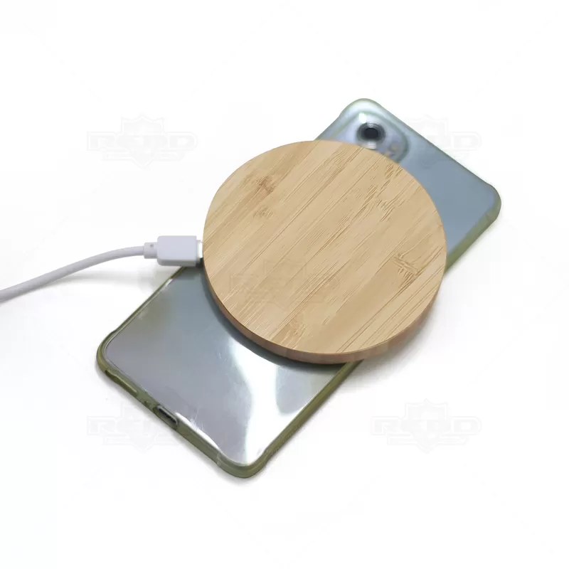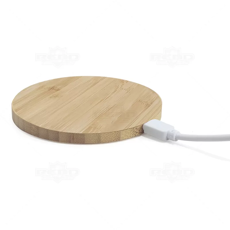 Imagine um carregador wireless personalizado, criado a partir de bambu natural. Sua superfície suave e texturizada homenageia a elegância da natureza, com padrões únicos que refletem a beleza orgânica do bambu. Acompanha um cabo USB/Micro-USB de aproximadamente 1 metro, permitindo fácil conexão a diversos dispositivos para um carregamento eficiente. O design do carregador se integra perfeitamente a qualquer ambiente, combinando funcionalidade com estilo e sofisticação. Ideal para uso em casa, no escritório ou em viagens, este carregador wireless representa uma declaração de sustentabilidade e beleza natural na tecnologia moderna. Necessita de fonte de alimentação via rede elétrica ou porta USB, pois não possui armazenamento por bateria. Perfeito para brindes personalizados e eventos corporativos. Imagem ilustrativa, itens demonstrativos não acompanham o produto.