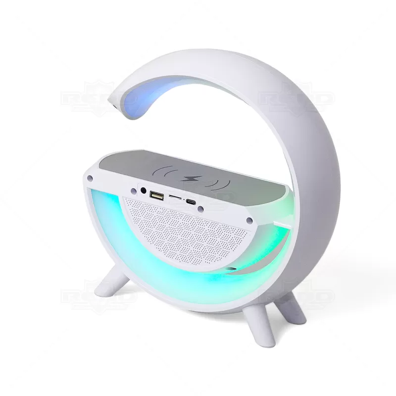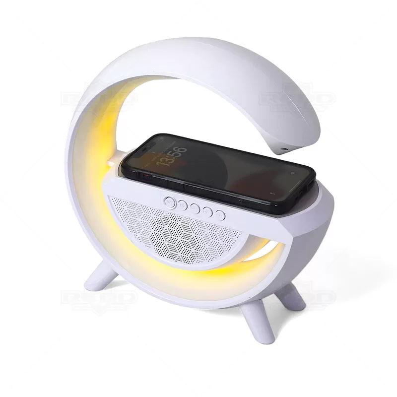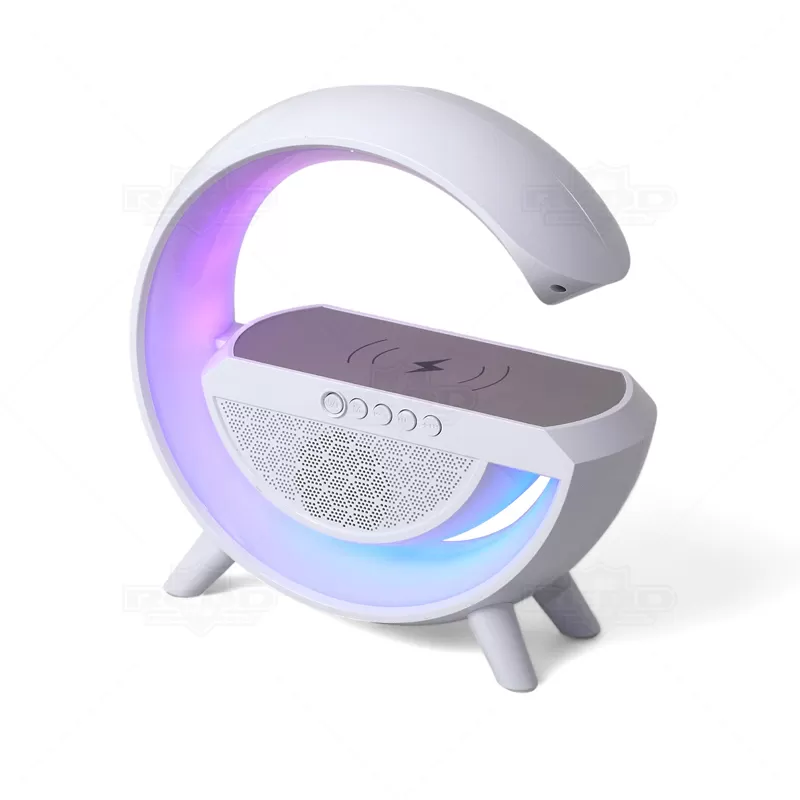 Caixa de som personalizada com carregador por indução e luminária. este produto inovador possui seis modos de iluminação, operando nos modos bluetooth, rádio FM, auxiliar P2, USB e TF (cartão MicroSD), proporcionando uma experiência completa de conectividade. Para desfrutar do carregamento por indução, o celular deve ter a tecnologia QI. O produto armazena bateria apenas para o próprio funcionamento, sendo necessário conectar a uma fonte de energia através de conexão TYPE-C para ativar a indução e carregar o mesmo. Este brinde personalizado é multifuncional e ideal para surpreender seus clientes, parceiros e colaboradores, destacando sua marca com um presente prático e moderno.