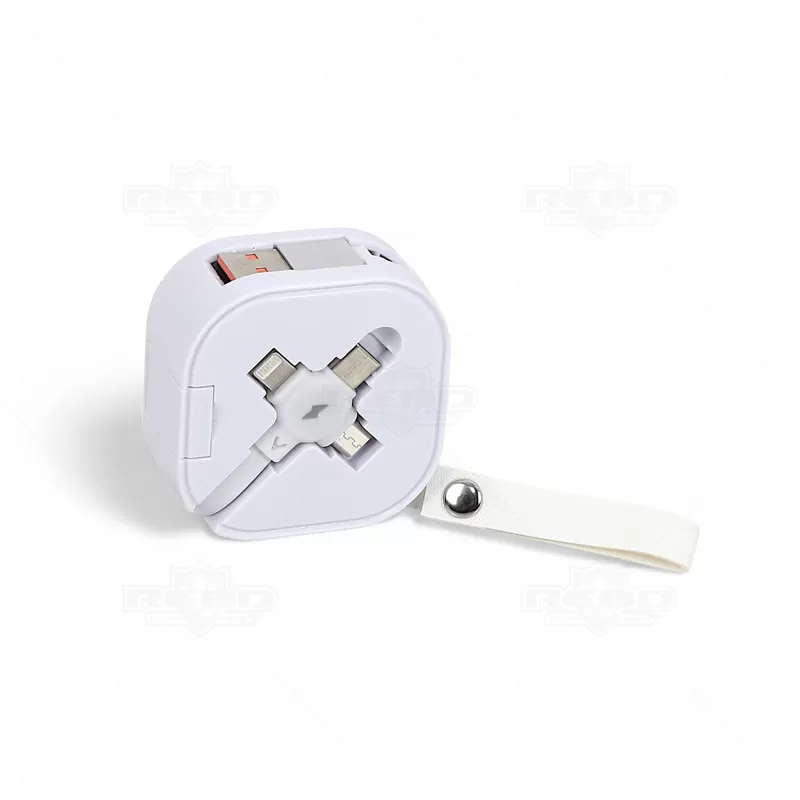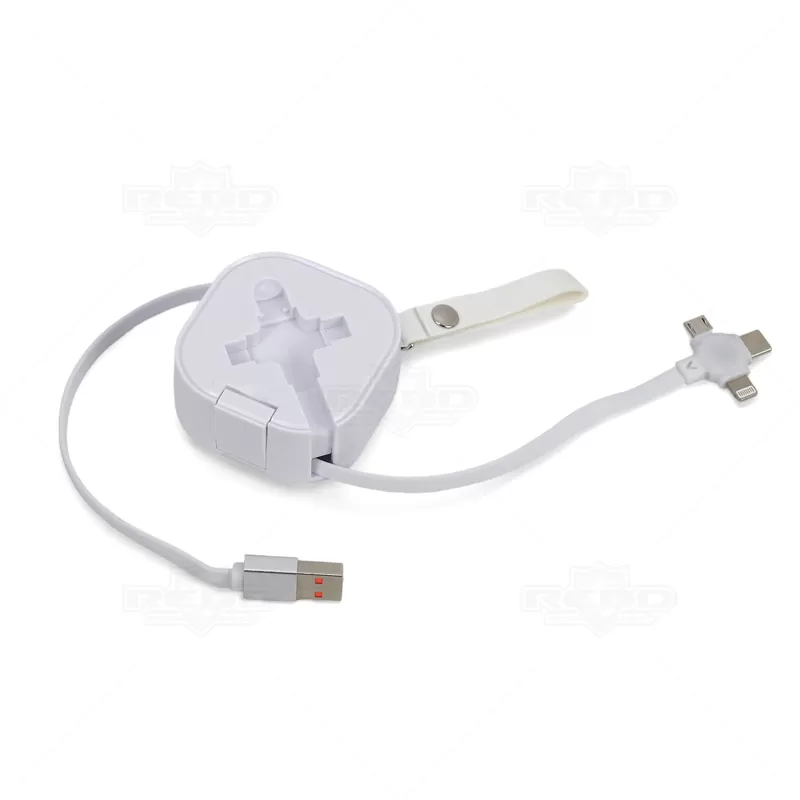 O cabo USB 3 em 1 retrátil personalizado é ideal para brindes personalizados e corporativos. Produzido em plástico resistente, garante durabilidade e longevidade. Uma extremidade possui conexão USB, enquanto a outra possui uma ponta especial 3 em 1, com Micro-USB, Lightning e USB-C, atendendo a diversas necessidades de conexão. Este acessório elegante é essencial para o dia a dia, sendo compacto e prático para levar na bolsa ou mochila, pois sua característica retrátil evita emaranhados, e a pequena alça em tecido sintético similar ao couro adiciona um toque de sofisticação. Perfeito para brindes personalizados e eventos corporativos, o cabo USB 3 em 1 retrátil combina funcionalidade e estilo, destacando sua marca de forma única e eficiente.