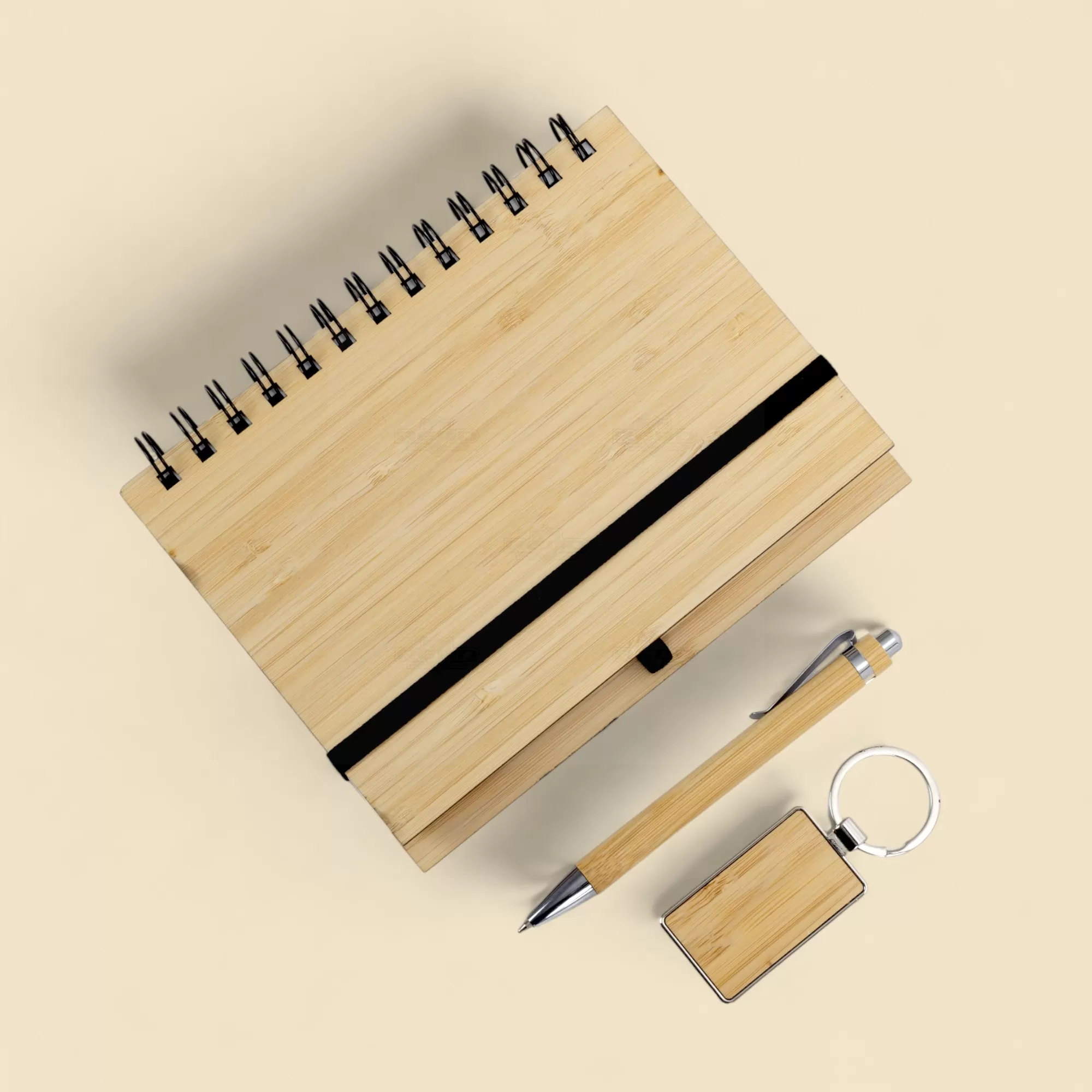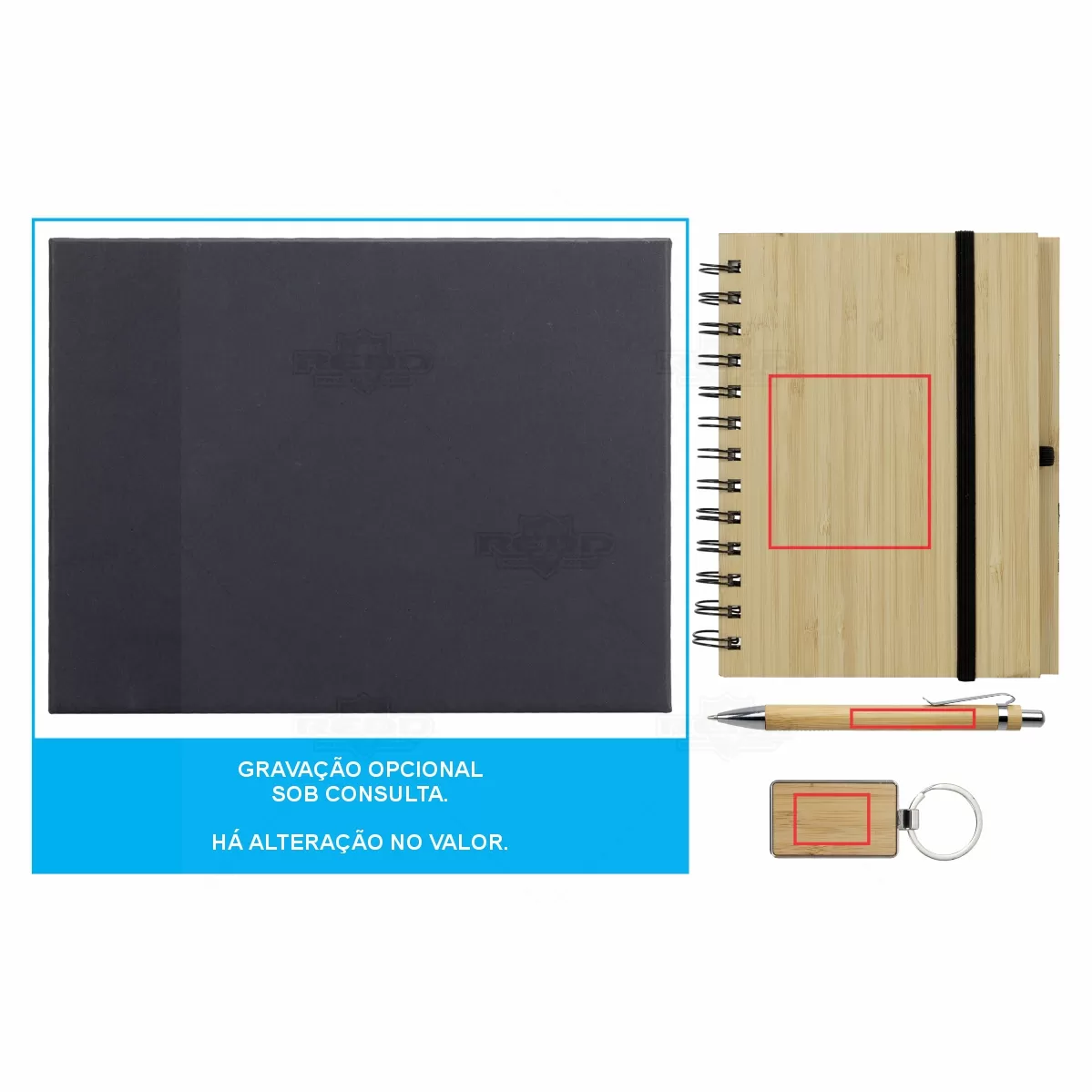 Conjunto escritório personalizado é perfeito para quem busca elegância e sustentabilidade em um só produto. O conjunto é composto por 3 peças, sendo um chaveiro de bambu com detalhe em metal, uma caderneta de bambu com capa dura, contendo aproximadamente 65 folhas brancas pautadas, e uma caneta de bambu com clipe metálico. A caderneta possui um elástico para fechar e suporte para caneta em elástico, garantindo praticidade e organização. Tudo isso vem em um estojo de papelão com berço em EVA, ideal para ser utilizado como brinde promocional ou presente personalizado em eventos corporativos. O bambu, conhecido por sua durabilidade e apelo ecológico, confere um toque natural e sofisticado a cada item. Este conjunto é uma escolha acertada para empresas que valorizam a sustentabilidade e desejam impressionar seus clientes e colaboradores com um presente funcional e elegante.