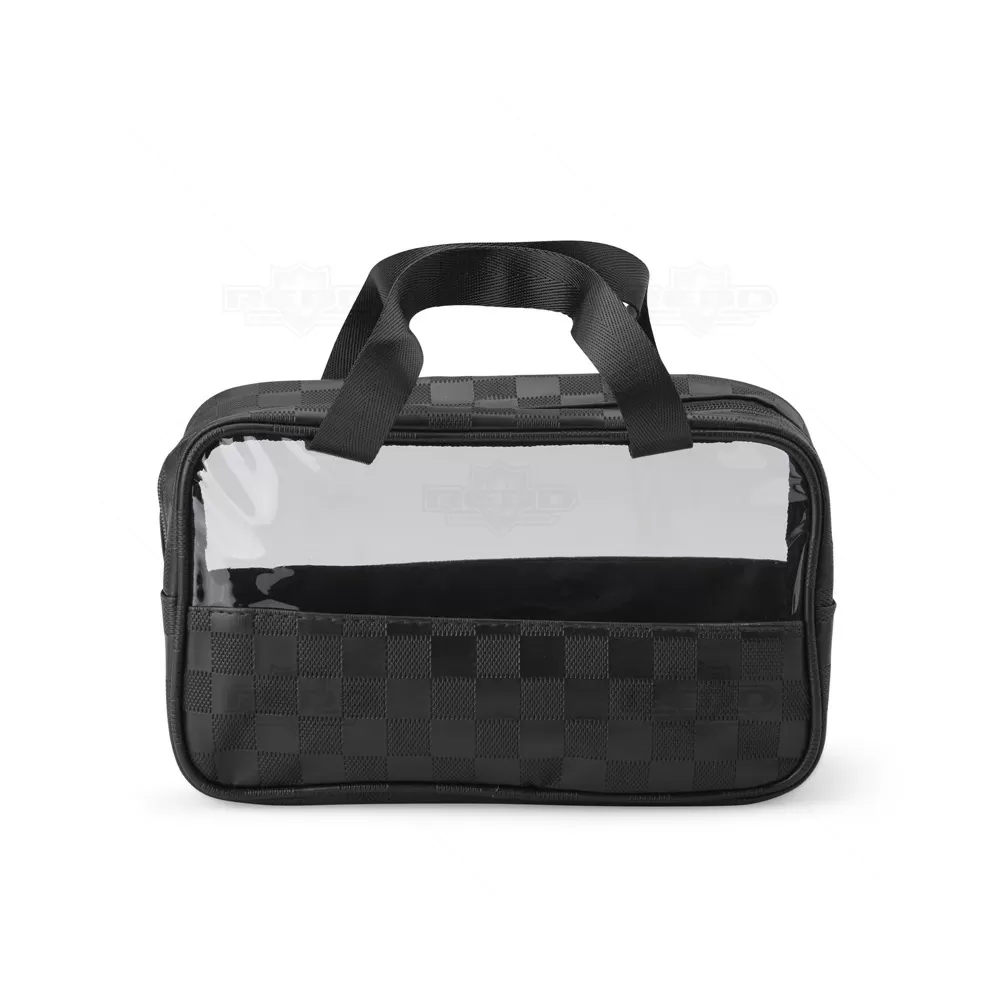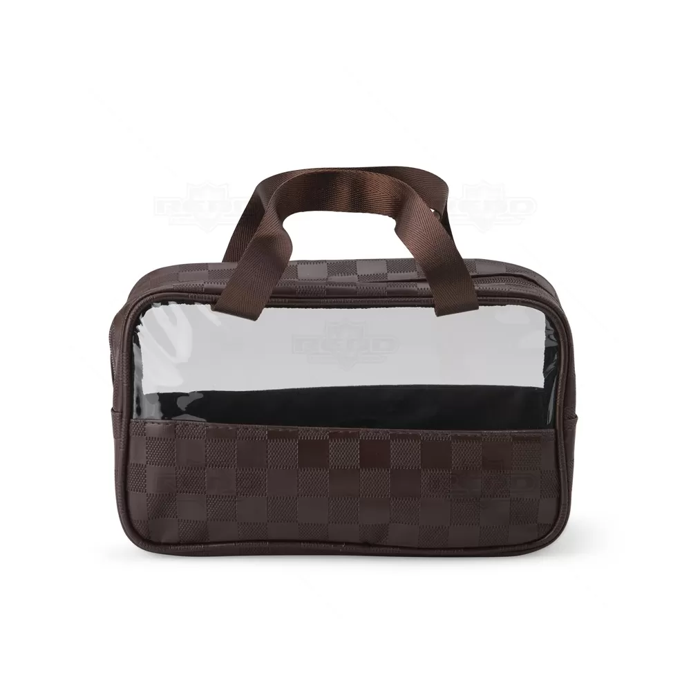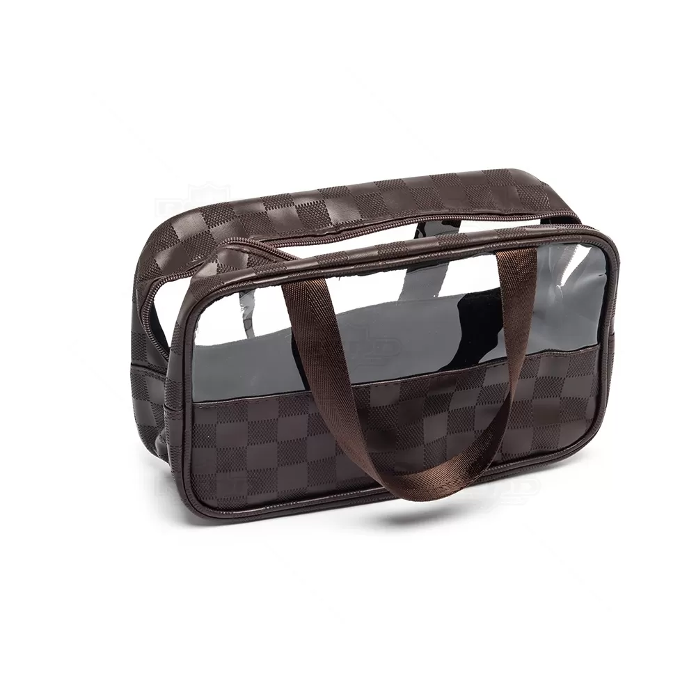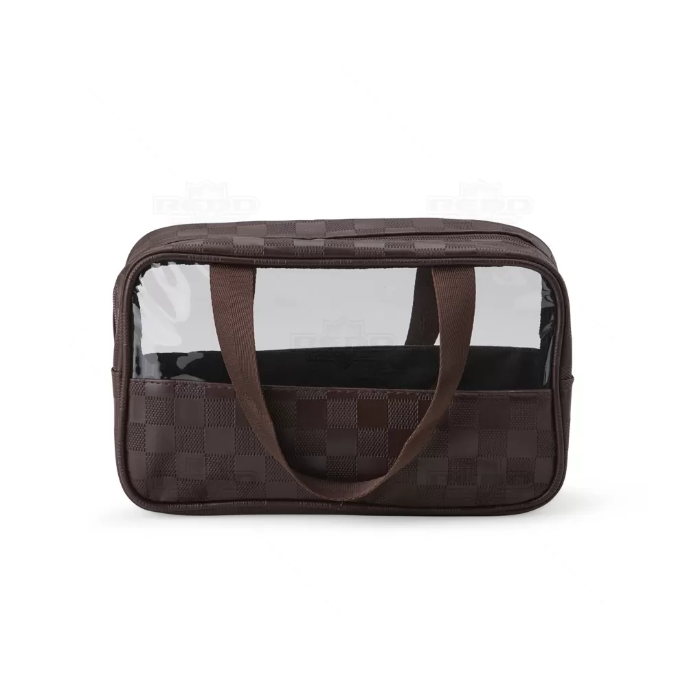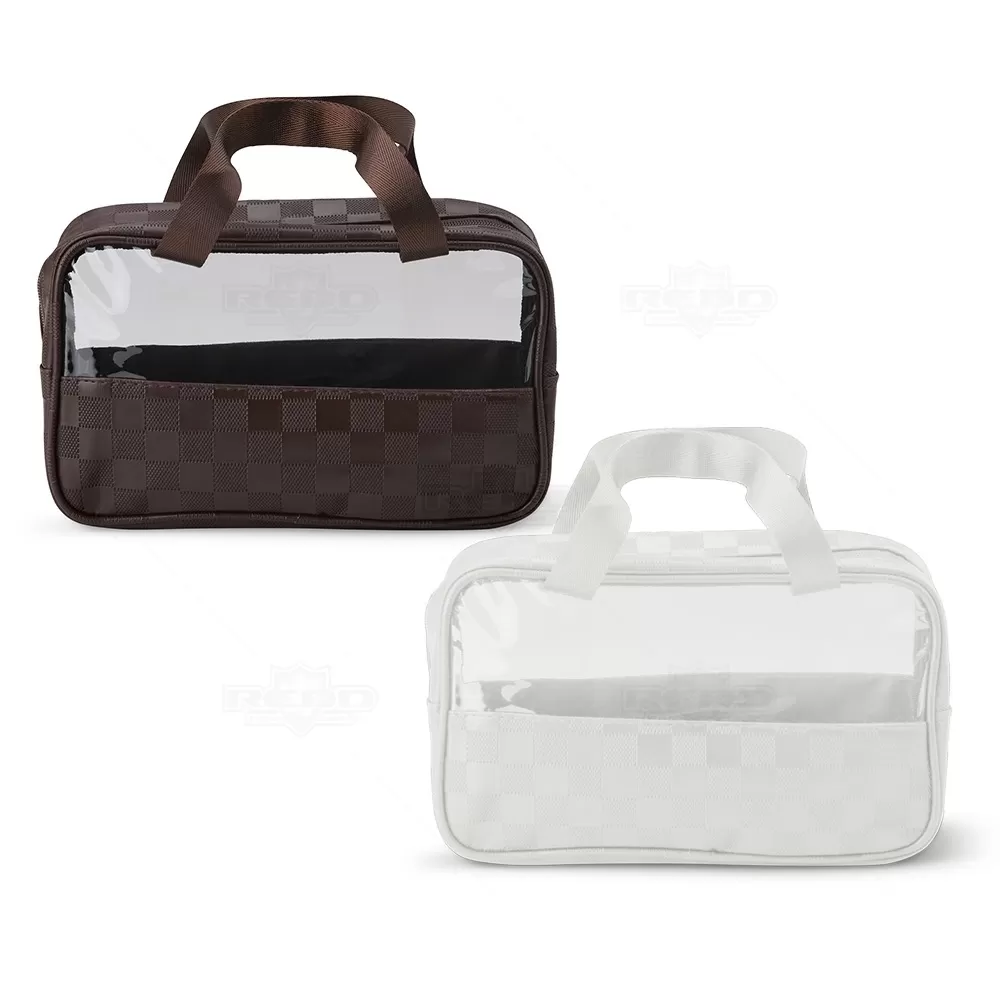 Esta necessaire é confeccionada em PVC e tecido sintético que simula couro, oferecendo uma combinação de estilo e durabilidade. Seu design impermeável em xadrez garante que seus itens fiquem protegidos contra umidade, tornando-a ideal para viagens ou uso diário. O visor transparente permite visualizar facilmente o conteúdo, facilitando o acesso aos itens armazenados. As duas alças laterais de mão em nylon proporcionam um transporte confortável e seguro. O fechamento em zíper assegura que tudo permaneça no lugar, evitando derramamentos ou perdas. Prática e elegante, esta necessaire é perfeita para organizar produtos de higiene pessoal, maquiagem ou outros pequenos itens. Seu estilo versátil a torna adequada tanto para homens quanto para mulheres, sendo uma excelente opção para presentes personalizados ou brindes promocionais em eventos corporativos. Combine funcionalidade e sofisticação com esta necessaire impermeável, que certamente agradará a todos que a receberem.