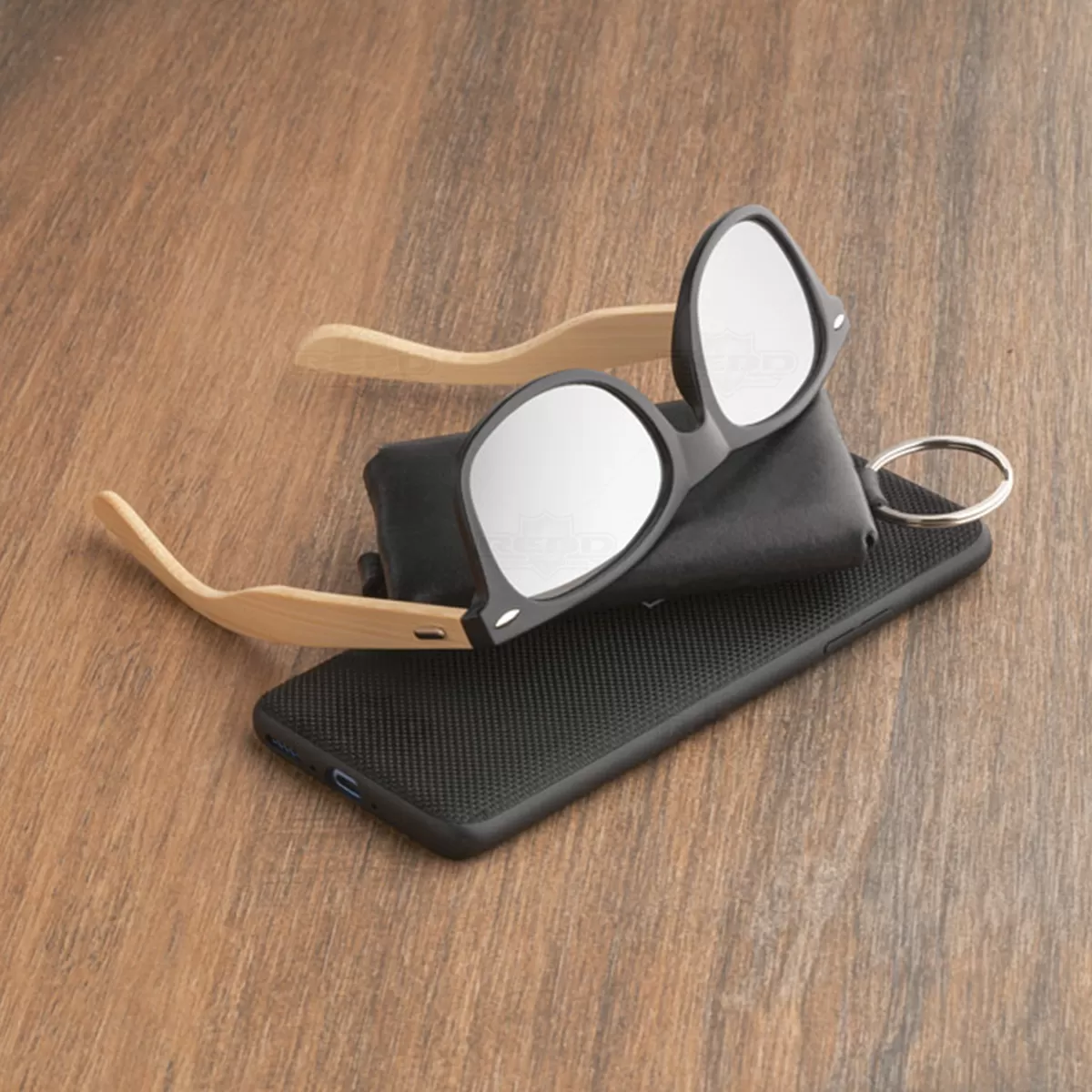 Os óculos de sol com armação em PP e bambu combinam estilo e sustentabilidade. Suas lentes espelhadas de categoria 3 oferecem proteção UV400, garantindo segurança contra os raios solares nocivos. A armação em bambu confere um toque natural e elegante, enquanto o PP proporciona durabilidade. Com a possibilidade de variação na cor e no resultado da impressão nos materiais naturais, cada par de óculos se torna único. Ideal para quem busca um acessório diferenciado e eco-friendly. Perfeitos para brindes personalizados e eventos corporativos, esses óculos de sol destacam-se pela combinação de proteção, estilo e responsabilidade ambiental.