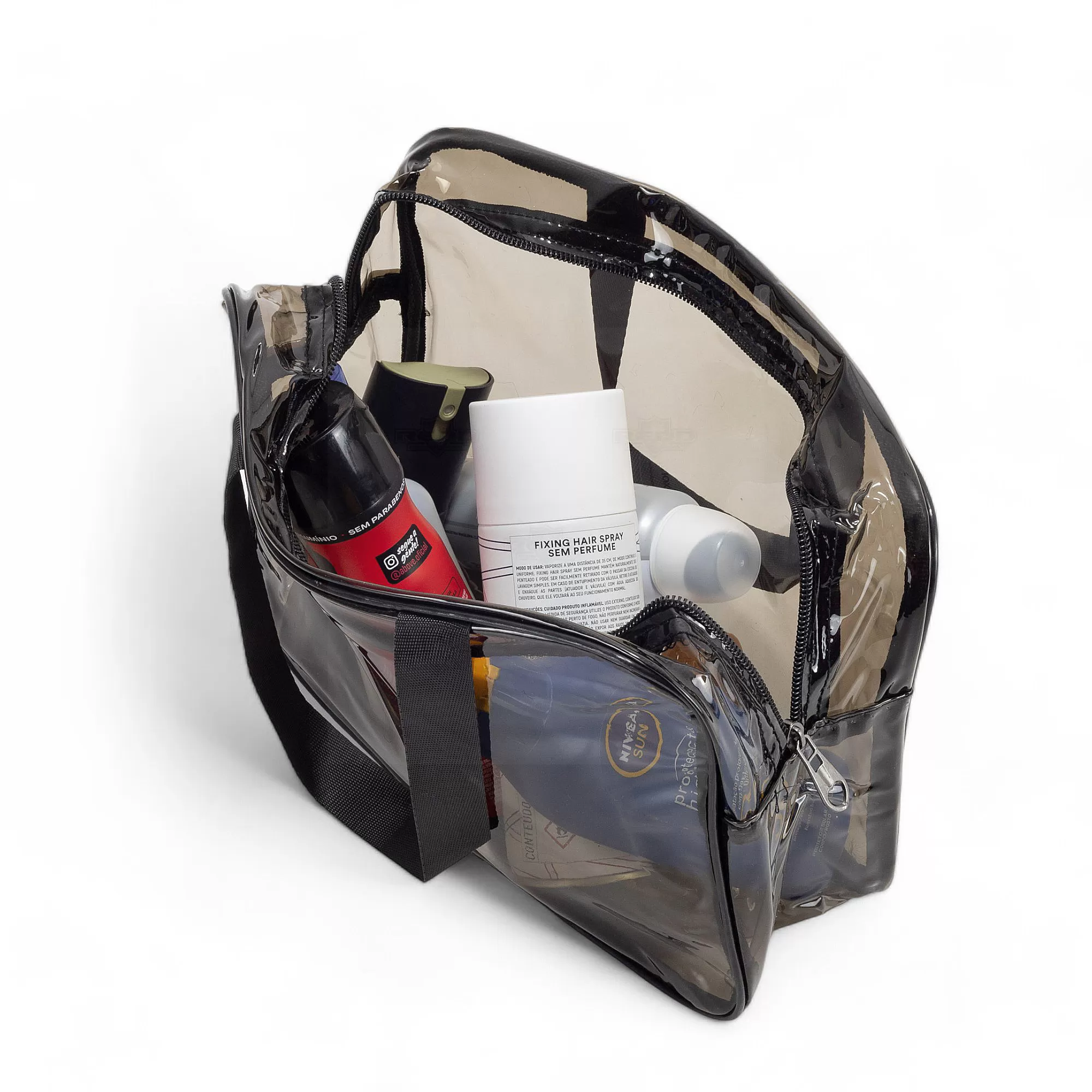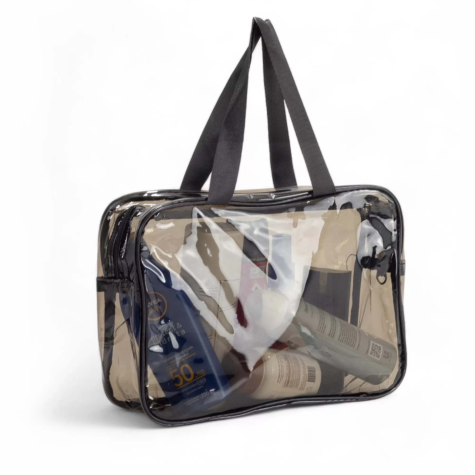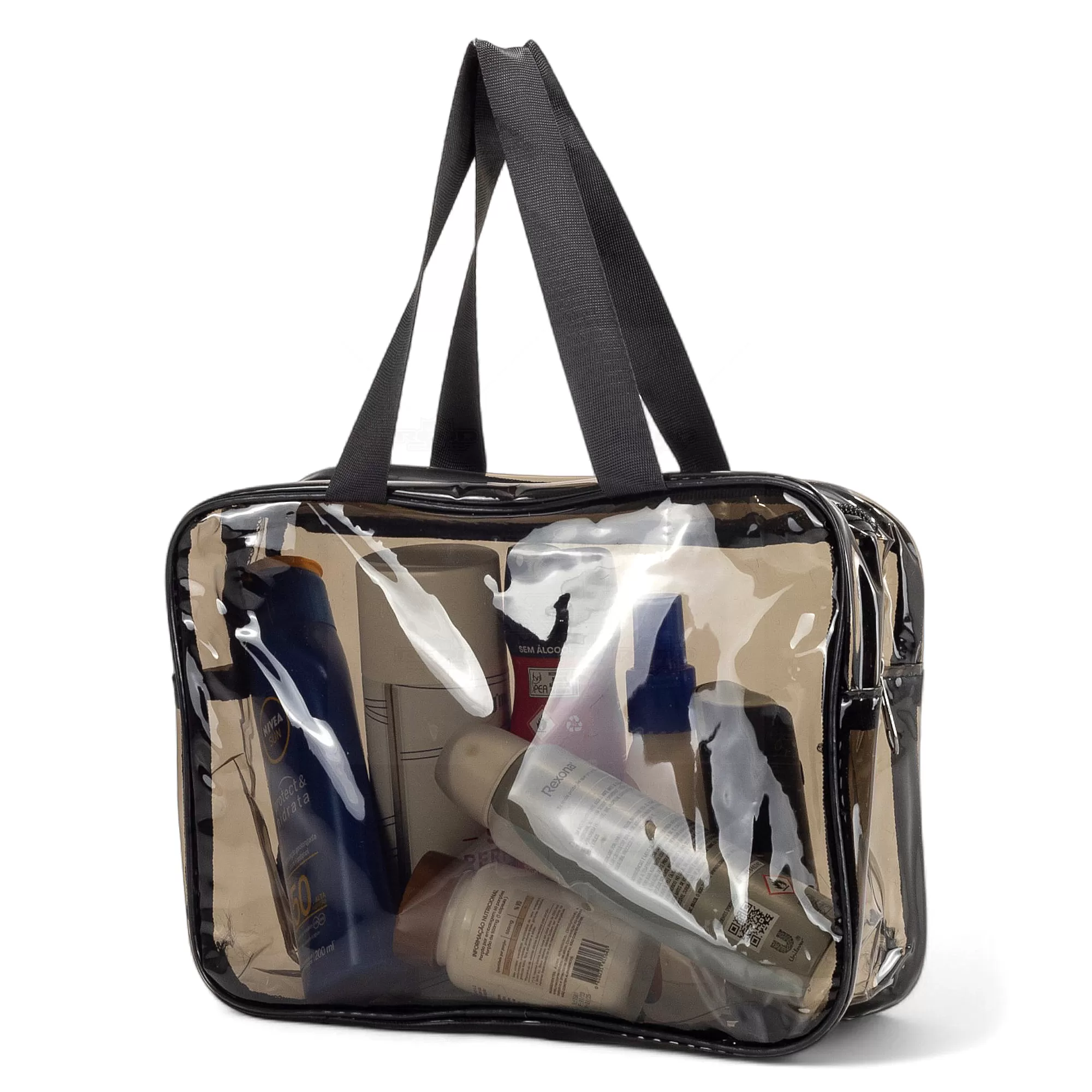 Esta necessaire é confeccionada em PVC translúcido fumê, oferecendo uma combinação de estilo e durabilidade. Seu design resistente a água em garante que seus itens fiquem protegidos contra umidade, tornando-a ideal para viagens ou uso diário. A visualização permite que acesse facilmente o conteúdo, facilitando o acesso aos itens armazenados. As duas alças laterais de mão em nylon proporcionam um transporte confortável e seguro. O fechamento em zíper assegura que tudo permaneça no lugar, evitando derramamentos ou perdas. Prática e elegante, esta necessaire é perfeita para organizar produtos de higiene pessoal, maquiagem ou outros pequenos itens. Seu estilo versátil a torna adequada tanto para homens quanto para mulheres, sendo uma excelente opção para presentes personalizados ou brindes promocionais em eventos corporativos. Combine funcionalidade e sofisticação com esta necessaire impermeável, que certamente agradará a todos que a receberem.