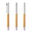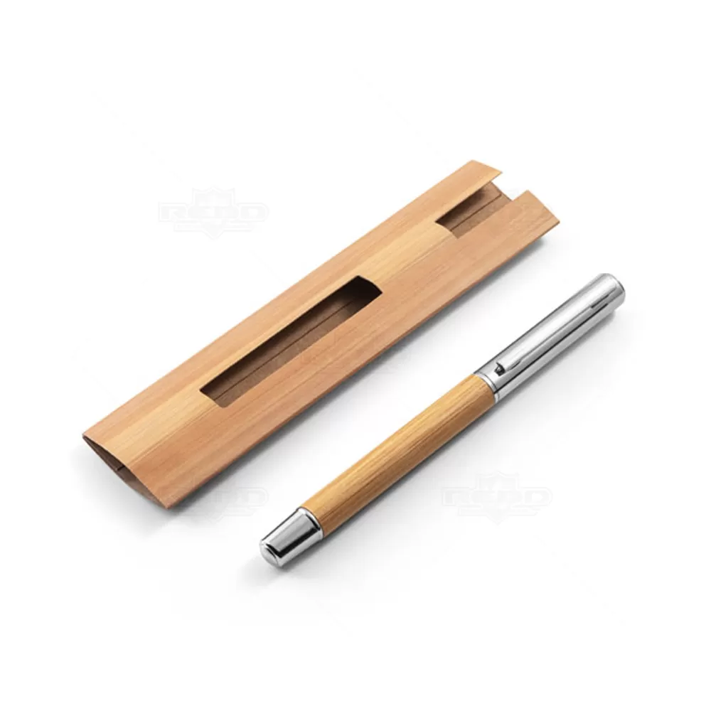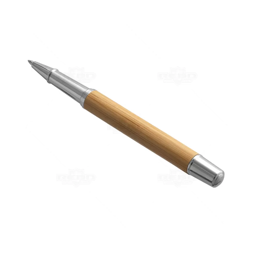 Caneta de Metal é uma combinação elegante de aço inoxidável 90% reciclado e bambu, destacando-se pela sustentabilidade e estilo, esta roller oferece uma escrita suave e precisa em tinta azul. Cada peça possui características únicas devido à variação natural dos materiais, tornando cada produto exclusivo. A roller é fornecida em uma bolsa feita de papel de bambu, reforçando seu apelo ecológico. Ideal para profissionais, estudantes e amantes de artigos de papelaria de alta qualidade, esta roller é perfeita para brindes promocionais, eventos corporativos e presentes personalizados. Combina sustentabilidade e funcionalidade, sendo uma excelente escolha para quem valoriza produtos ecológicos e sofisticados.