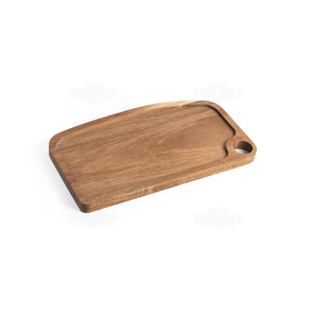 Feita de madeira de acácia proveniente de gestão florestal sustentável, esta tábua é uma escolha ecológica e funcional para sua cozinha. O design inclui um rebordo ao redor da tábua, ideal para conter líquidos e facilitar o manuseio de alimentos. A tábua possui uma pega que facilita o transporte e permite pendurá-la para melhor arrumação. A cor e o resultado da impressão podem variar devido às características naturais da madeira, tornando cada peça única. Fornecida em uma caixa de papel kraft reciclado, é perfeita para presentes personalizados, brindes promocionais e eventos corporativos. Ideal para cozinheiros amadores e profissionais que valorizam sustentabilidade e praticidade em seus utensílios de cozinha.