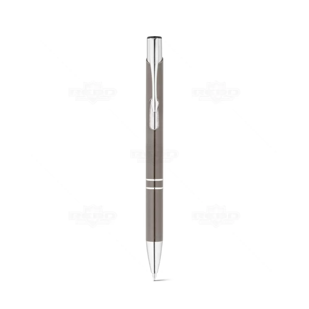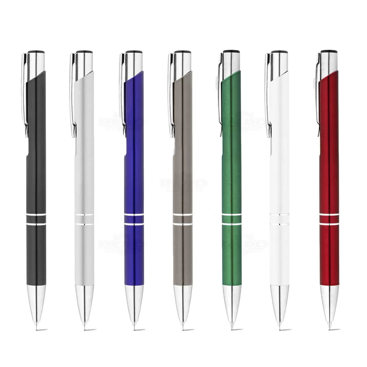 Esta caneta de metal personalizada é produzida em alumínio, combinando durabilidade e elegância. A caneta possui dois anéis prateados na parte inferior, adicionando um toque de sofisticação ao seu design. Com uma esferográfica de tinta azul, ela garante uma escrita suave e consistente. O clip de metal facilita o transporte, permitindo prendê-la em bolsos, cadernos ou agendas. O acionamento da escrita é feito através de um mecanismo de click, proporcionando praticidade e rapidez no uso diário. Ideal para profissionais, estudantes e eventos corporativos, esta caneta é perfeita como brinde promocional ou presente personalizado. É uma escolha elegante e funcional para quem valoriza qualidade e estilo em seus acessórios de escrita.