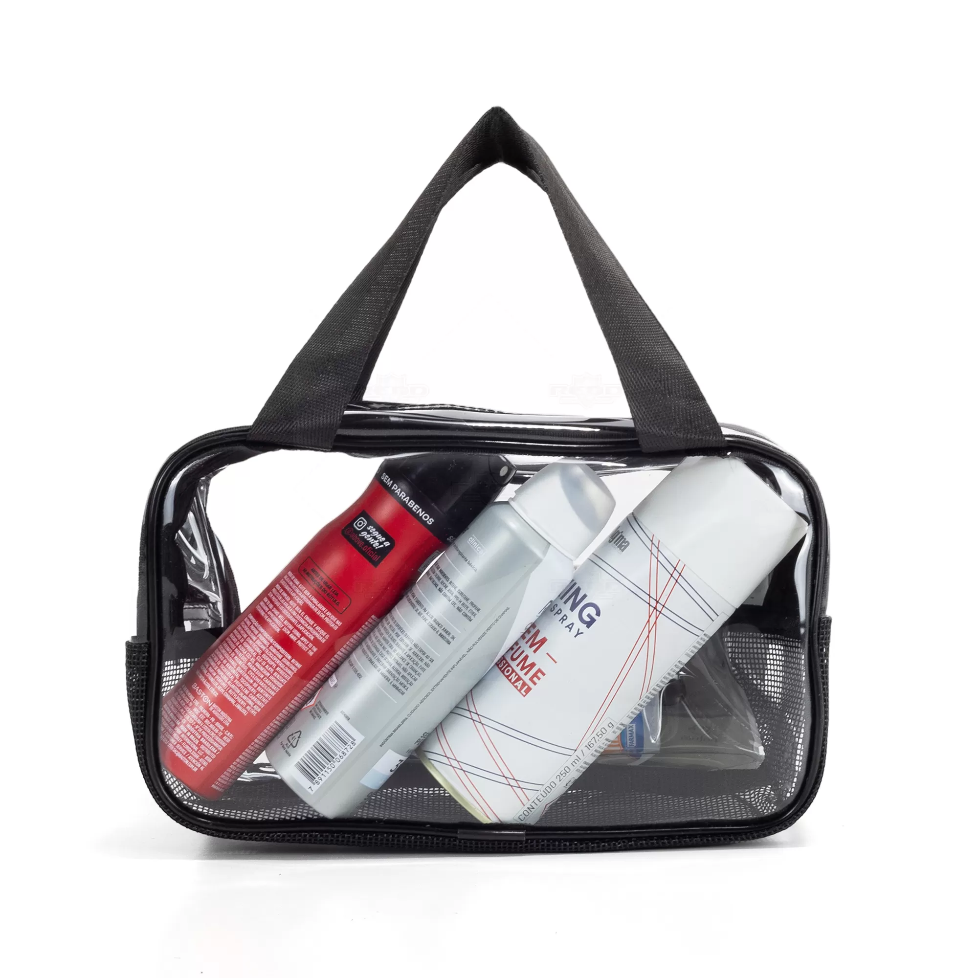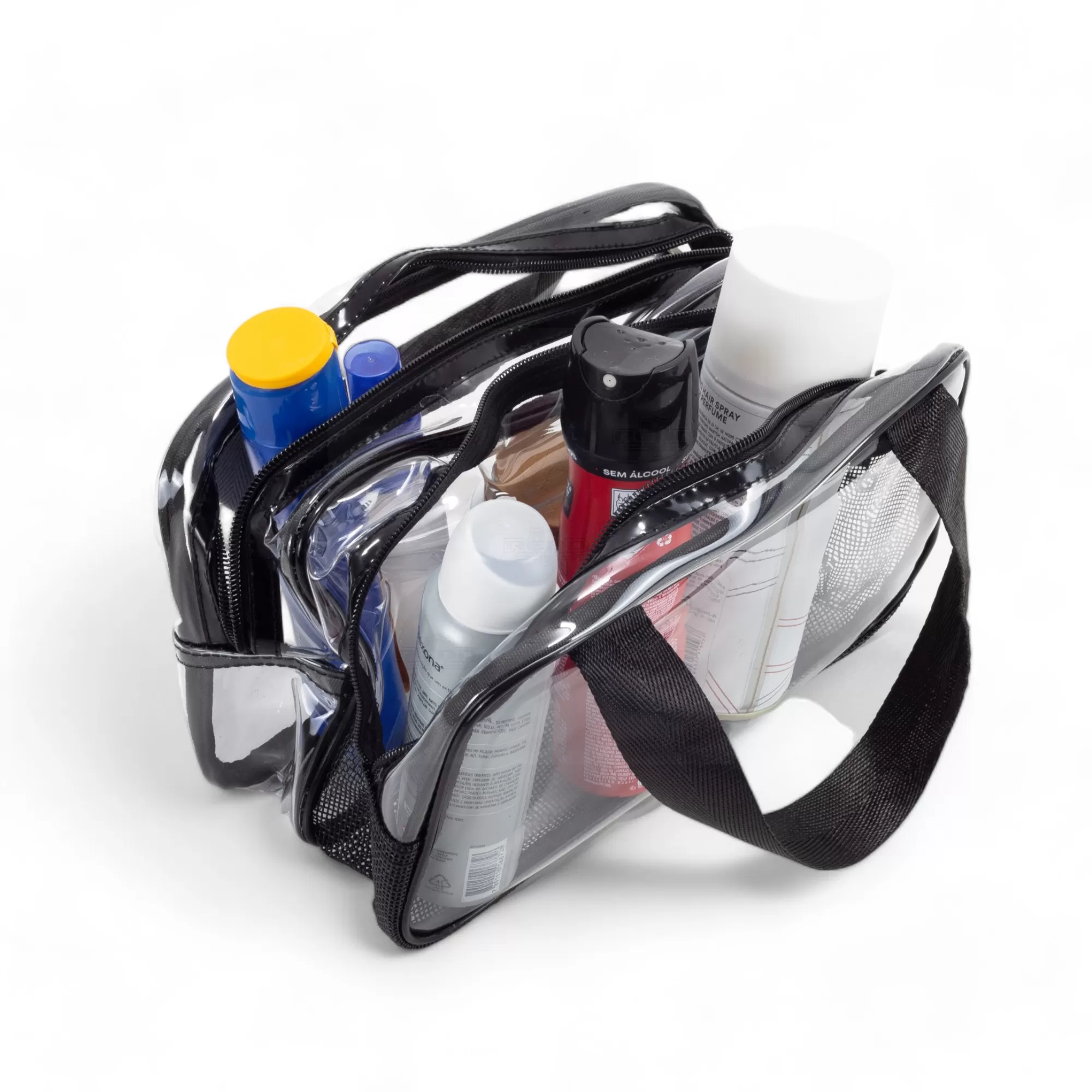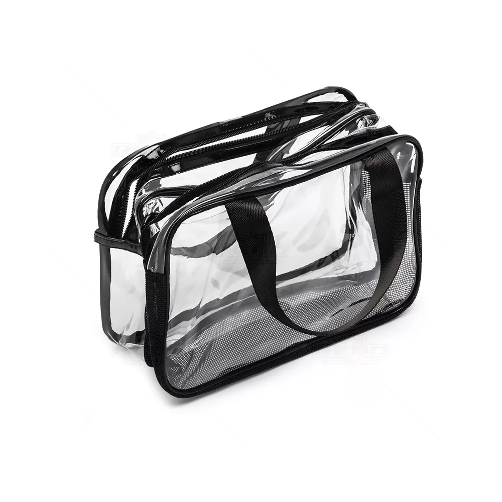 Esta necessaire é confeccionada em PVC transparente e tecido sintético, oferecendo uma combinação de estilo e durabilidade. Seu design resistente a água em garante que seus itens fiquem protegidos contra umidade em um compartimento e o outro proporcionando o inverso, com sua base telada deixando com que haja ventilação e os seus itens "respirem", tornando-a ideal para viagens ou uso diário. A visualização permite que acesse facilmente o conteúdo, facilitando o acesso aos itens armazenados. As duas alças laterais de mão em nylon proporcionam um transporte confortável e seguro. O fechamento em zíper assegura que tudo permaneça no lugar, evitando derramamentos ou perdas. Prática e elegante, esta necessaire é perfeita para organizar produtos de higiene pessoal, maquiagem ou outros pequenos itens. Seu estilo versátil a torna adequada tanto para homens quanto para mulheres, sendo uma excelente opção para presentes personalizados ou brindes promocionais em eventos corporativos. Combine funcionalidade e sofisticação com esta necessaire, que certamente agradará a todos que a receberem. Imagem ilustrativa.