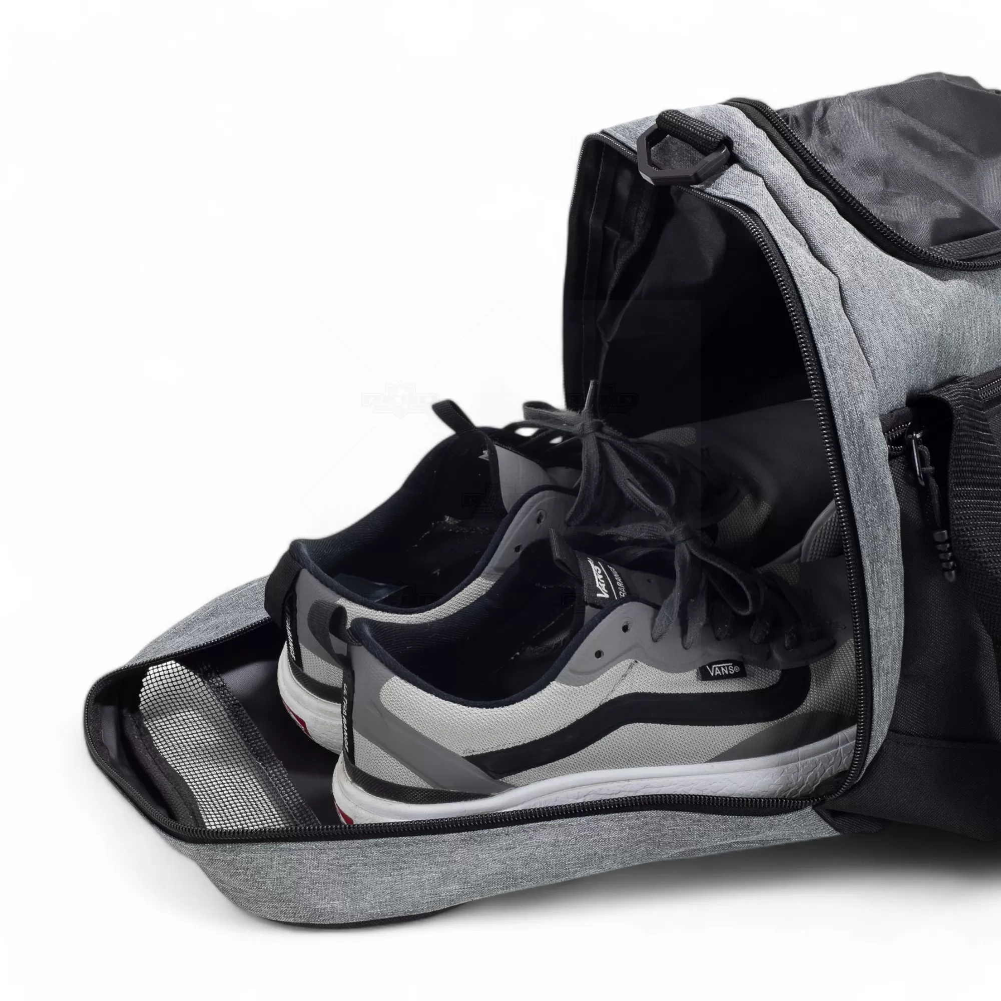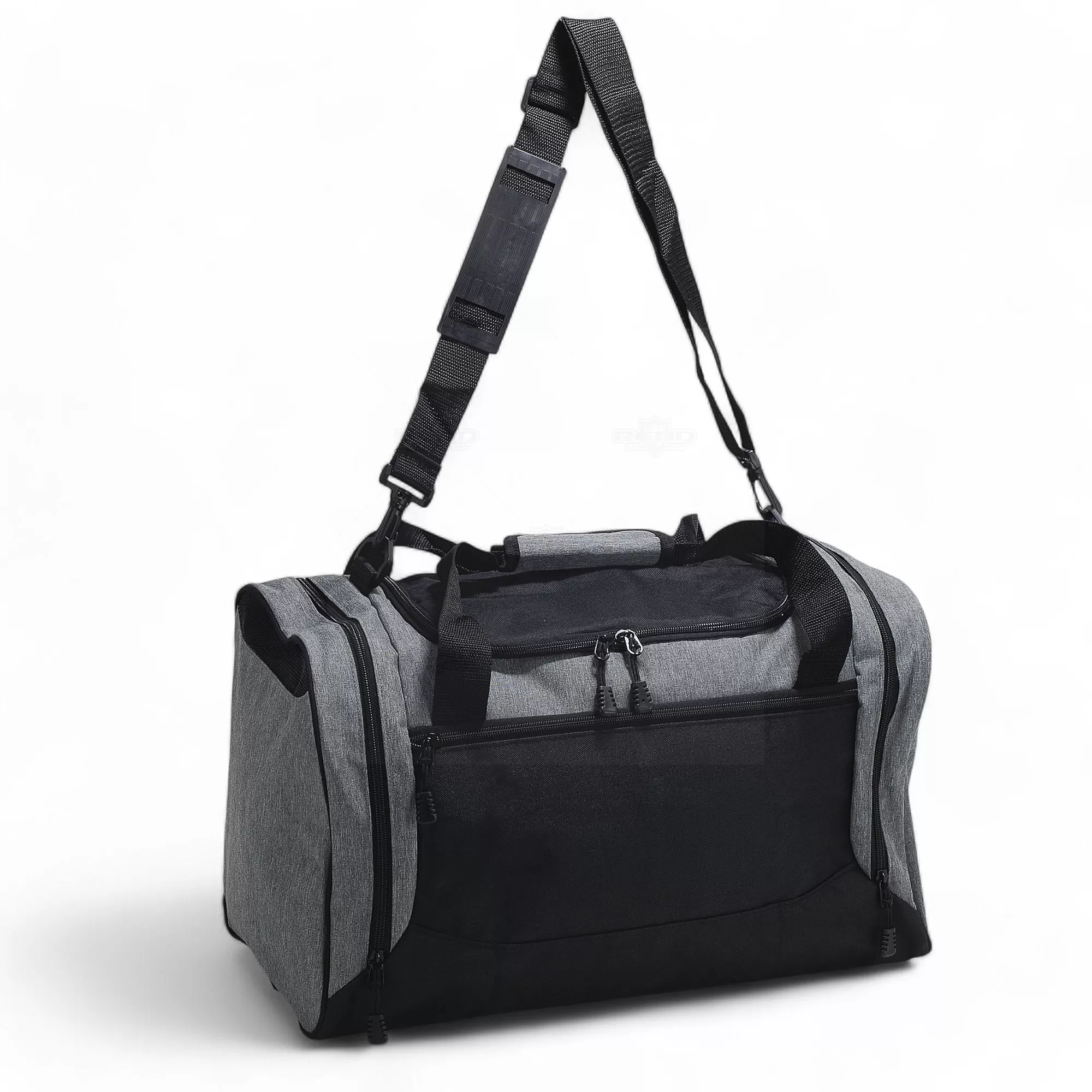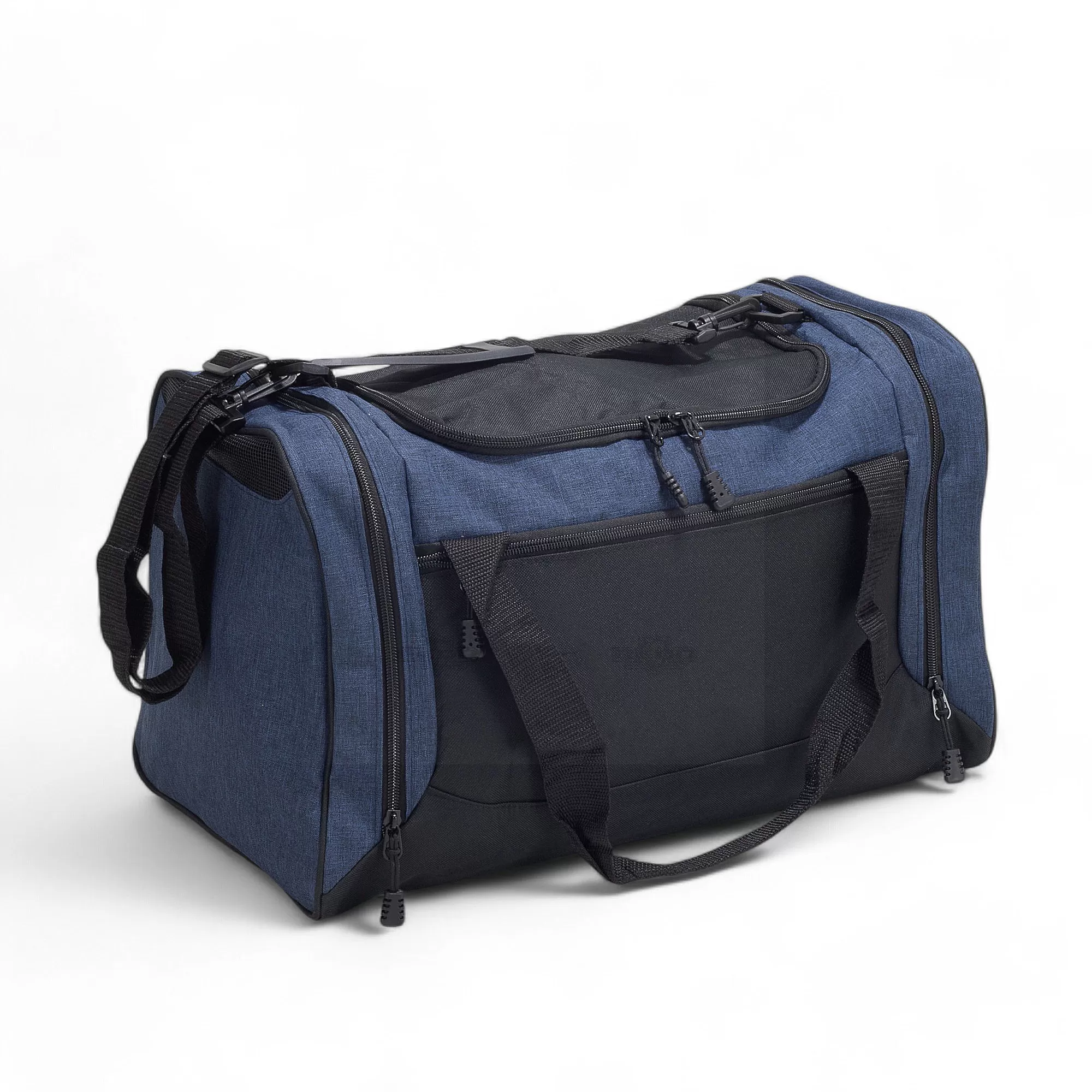 A bolsa de 46 litros confeccionada em nylon resistente à água é a solução ideal para quem busca praticidade e espaço sem abrir mão da durabilidade. Com quatro compartimentos bem distribuídos, oferece organização eficiente para diferentes itens. O destaque fica por conta do bolso lateral projetado para calçados, que possui uma parte telada, permitindo ventilação adequada e separação de outros pertences. Com uma alça transversal regulável e removível, além de duas alças de mão reforçadas, essa bolsa é extremamente versátil, adaptando-se ao seu estilo e necessidade de transporte. Seu material resistente à água protege os itens em dias chuvosos ou durante atividades ao ar livre. Ideal para uso em academias, viagens curtas ou como brinde personalizado em eventos corporativos, ela alia funcionalidade e estilo, atendendo a diferentes perfis de usuários. Imagem ilustrativa.