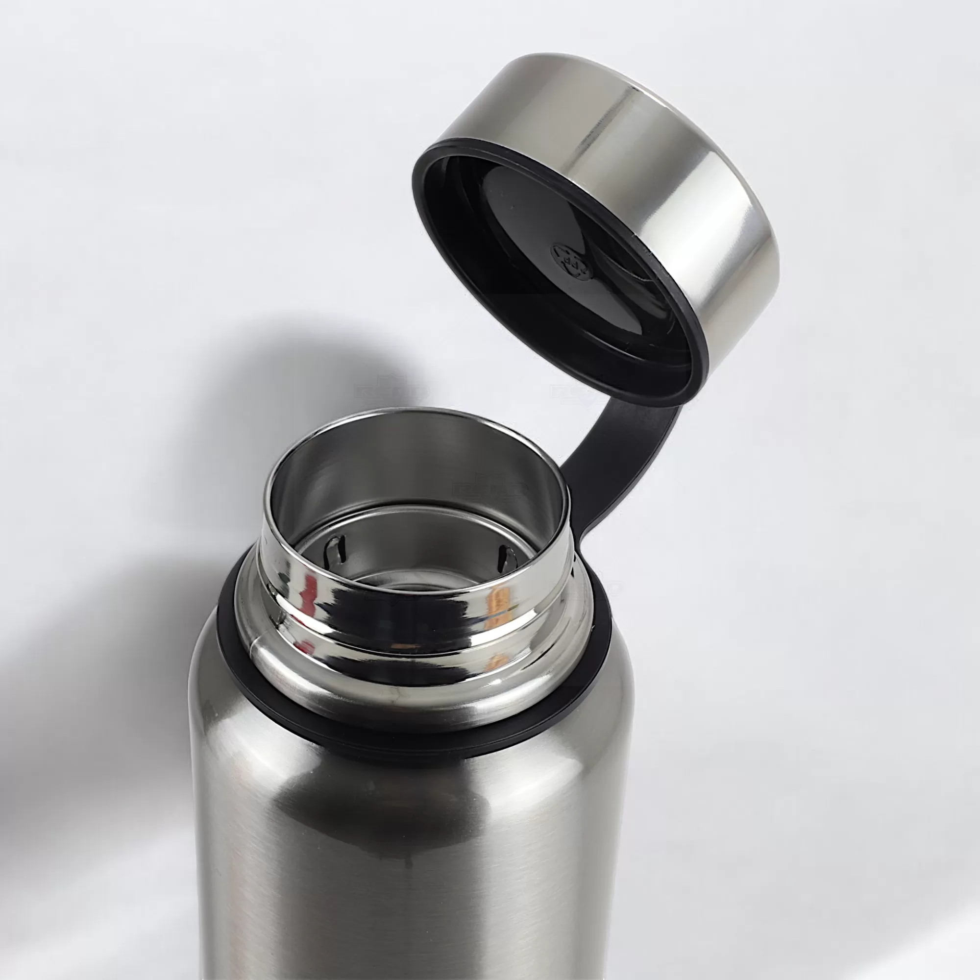 A garrafa térmica em aço inox com parede dupla é a combinação perfeita de durabilidade e eficiência. Com capacidade de 1 litro, ela mantém suas bebidas quentes ou frias por longos períodos, graças à sua construção em aço inoxidável de alta qualidade. A tampa em aço inox rosqueável, equipada com um anel de silicone, garante uma vedação segura, evitando vazamentos e preservando a temperatura interna. A alça em plástico oferece praticidade no transporte, tornando esta garrafa ideal para o dia a dia, viagens ou atividades ao ar livre. Perfeita como brinde personalizado para eventos corporativos, esta garrafa térmica não só promove a sua marca, mas também reforça seu compromisso com a qualidade e a sustentabilidade. Ao presentear clientes e colaboradores com este item funcional e sofisticado, você destaca a preocupação com o bem-estar e a satisfação de todos.