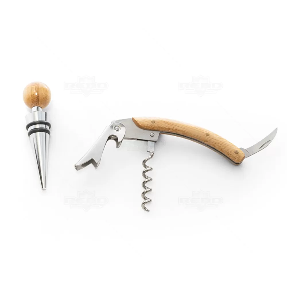 O conjunto de vinho com dois componentes em metal e bambu é a escolha perfeita para os amantes de vinhos que apreciam a combinação de elegância e funcionalidade. Este conjunto inclui um saca-rolhas e um salva-gotas, ambos feitos com materiais de alta qualidade. O saca-rolhas de metal oferece durabilidade e eficiência, enquanto o salva-gotas em bambu adiciona um toque de sofisticação e naturalidade, garantindo que suas superfícies permaneçam limpas e sem manchas. Cada peça do conjunto é única devido à variação de cor e impressão nos materiais naturais, conferindo exclusividade ao produto. Fornecido em uma caixa presente de papel kraft reciclado, este conjunto é ideal para presentes personalizados ou brindes promocionais em eventos corporativos. A combinação de metal resistente e bambu sustentável não apenas realça a estética do conjunto, mas também destaca o compromisso com o meio ambiente. Seja para ocasiões especiais ou uso diário, este conjunto de vinho é uma excelente adição para qualquer apreciador de vinhos.