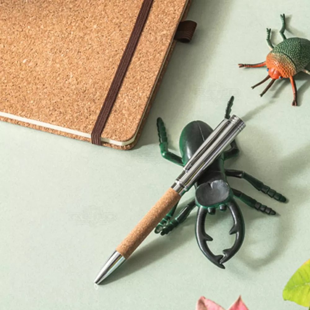 Esta esferográfica apresenta um corpo em cortiça, oferecendo uma solução ecológica e estilosa para suas necessidades de escrita. O clip de metal adiciona um toque de sofisticação e praticidade, permitindo prendê-la facilmente em bolsos, cadernos ou agendas. A esferográfica possui tinta azul, proporcionando uma escrita suave e consistente. O mecanismo twist oferece um acionamento eficiente e elegante. Acompanhada embalagem em cortiça, esta esferográfica é ideal para brindes promocionais, eventos corporativos e presentes personalizados. Perfeita para profissionais, estudantes e qualquer pessoa que valorize produtos sustentáveis e de alta qualidade.