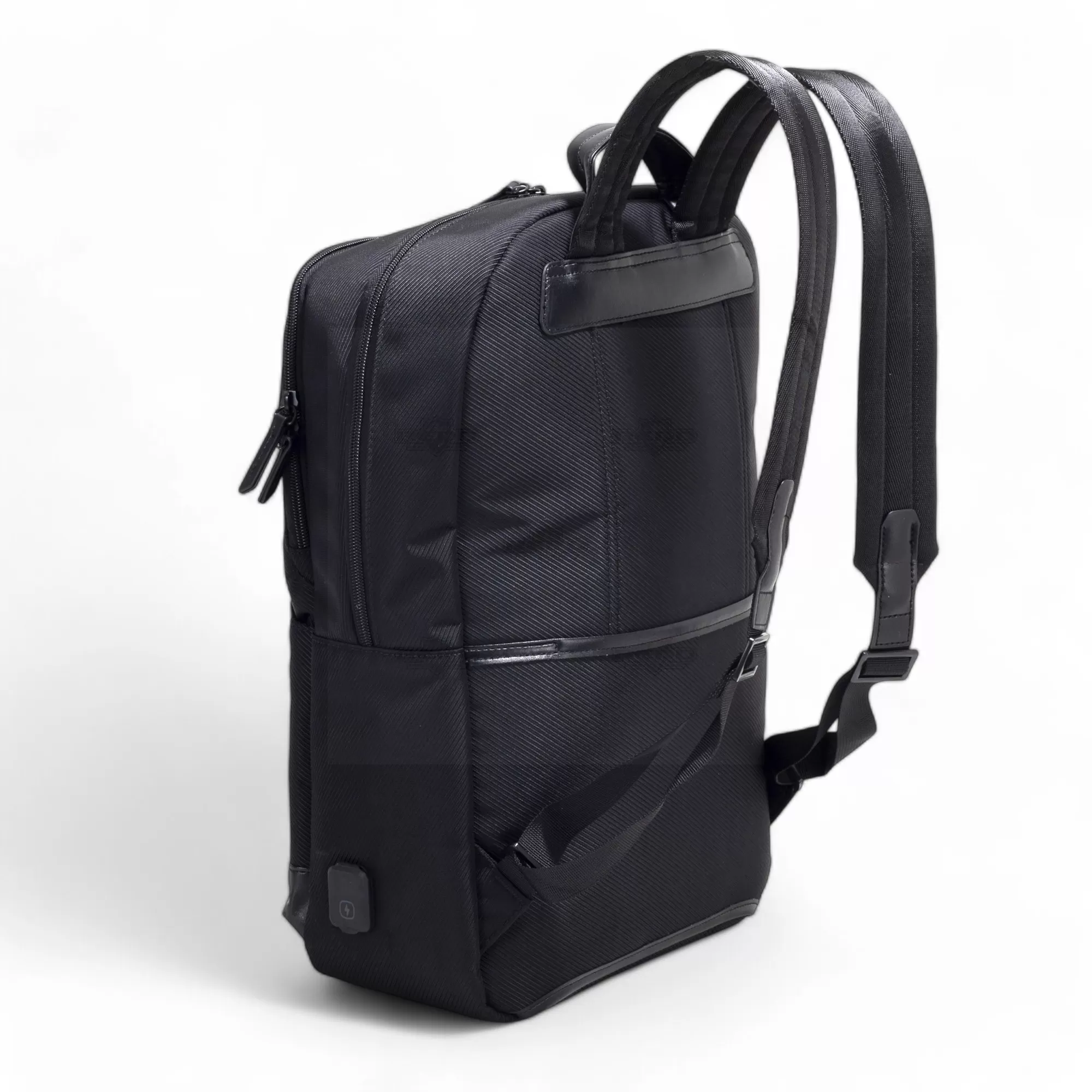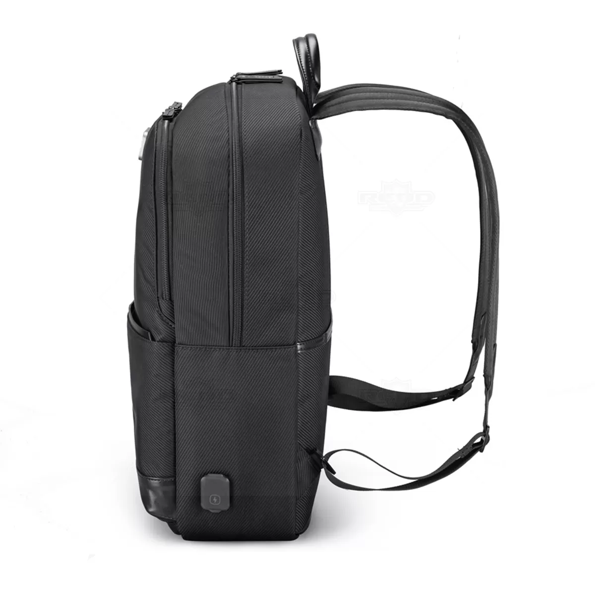 A mochila para notebook, confeccionada em poliéster acolchoado, é a escolha ideal para quem busca praticidade e conforto no dia a dia. Suas alças de ombro acolchoadas garantem um transporte confortável, mesmo em longos períodos de uso. O tecido impermeável protege os itens internos contra a chuva ou umidade, oferecendo maior durabilidade e segurança. Com um bolso frontal com zíper, ela facilita o acesso rápido a itens essenciais, enquanto a divisória interna organizada acomoda canetas e pequenos objetos com facilidade. Perfeita para profissionais em movimento, a mochila aceita notebooks de 15,6 proporcionando segurança para transportar equipamentos eletrônicos. O porta USB na lateral permite carregar dispositivos móveis de forma prática e rápida, mantendo a produtividade em qualquer lugar. Além disso, a mochila possui um engate para ser acoplada à mala de viagem, tornando-se a companheira ideal para viagens a trabalho ou lazer. Seja em ambientes corporativos, viagens ou no uso diário, esta mochila combina funcionalidade e estilo, destacando-se como um brinde personalizado de alto valor. *Itens decorativos não acompanham o produto.