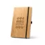O bloco de anotações personalizado é uma escolha sofisticada e sustentável para quem valoriza materiais naturais. Com capa dura feita de bambu, este caderno combina elegância e durabilidade, com aproximadamente 96 folhas pautadas na cor marfim, produzidas em papel reciclado, que oferecem uma superfície agradável para escrita, ideal para anotações diárias ou reuniões e lombada em poliéster 100% reciclado (100% rPET), além de um suporte para esferográfica (não inclusa) que adiciona praticidade ao seu uso. O elástico para fecho mantém o caderno seguro, preservando suas anotações. Devido à natureza dos materiais, a cor e o resultado da impressão podem variar entre os produtos, tornando cada peça única. Este bloco de anotações é perfeito para brindes corporativos ou como um presente personalizado, transmitindo uma mensagem de responsabilidade ambiental e bom gosto.