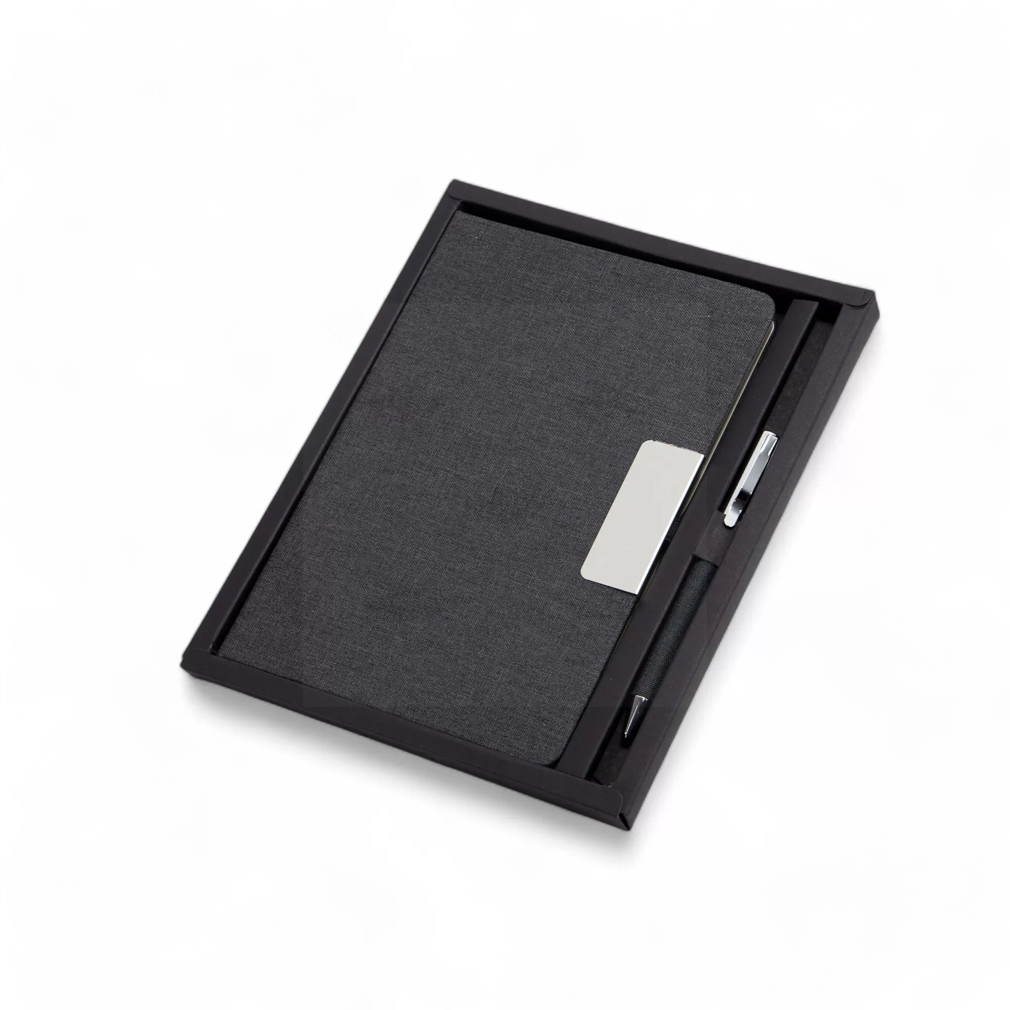 Este kit corporativo combina moda e sustentabilidade, sendo uma excelente opção de brinde personalizado. Ele acompanha uma caneta metálica sofisticada e um caderno de anotações feito de PET reciclado, reforçando o compromisso com o meio ambiente. O caderno possui capa dura resistente e miolo com aproximadamente 80 folhas pautadas, ideal para anotações em reuniões, conferências ou no uso diário. A caneta metálica, além de oferecer uma escrita suave, traz um toque de refinamento, perfeito para profissionais que valorizam estilo e funcionalidade. O kit é apresentado em uma embalagem elegante e pronta para presentes, ideal para ações promocionais e eventos corporativos que buscam transmitir uma imagem de sustentabilidade e cuidado com os detalhes. Seja em encontros empresariais ou como presentes personalizados, este conjunto oferece uma solução prática e sofisticada para o dia a dia.