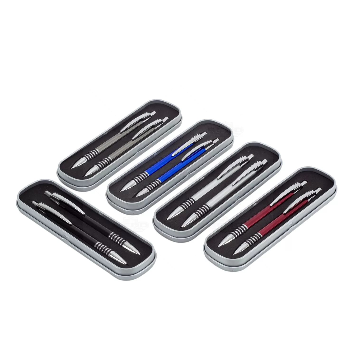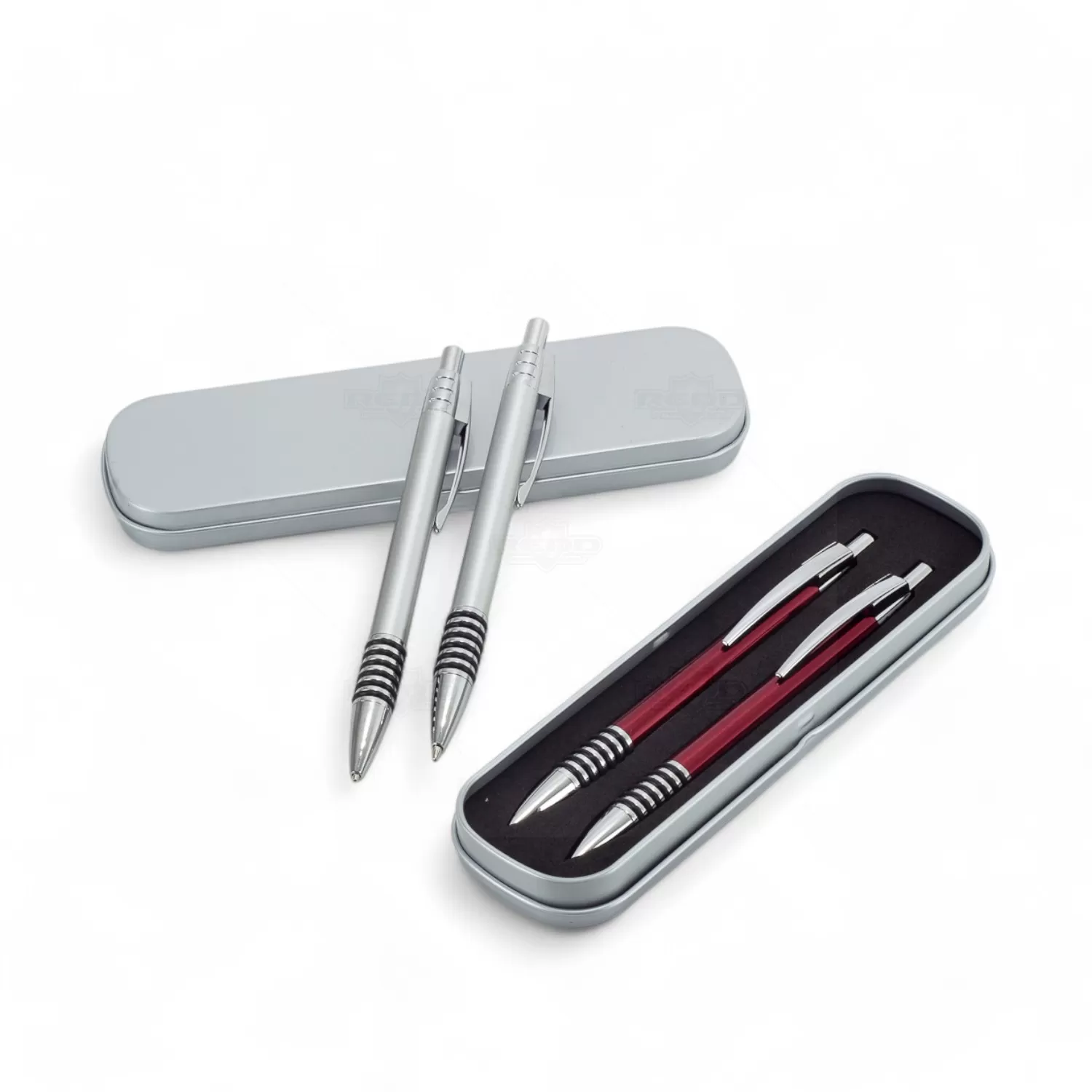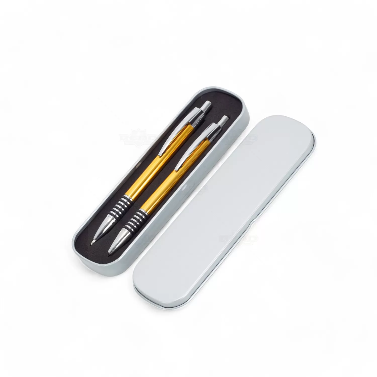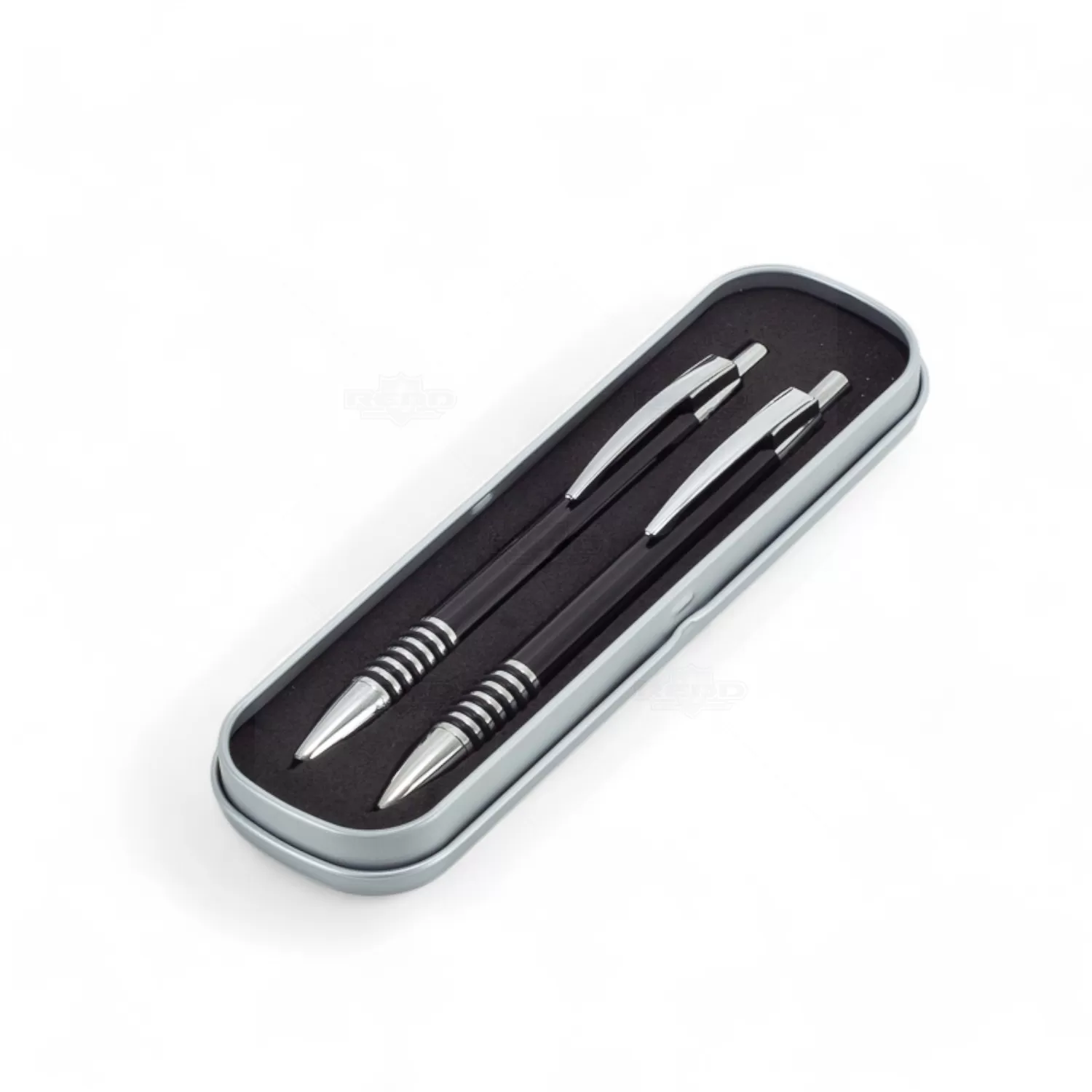 Este conjunto de caneta e lapiseira personalizado é ideal para eventos corporativos e brindes personalizados, exalando elegância e profissionalismo. A caneta de metal com tinta azul esferográfica e a lapiseira com grafite são projetadas para uma escrita refinada e confiável. Ambas apresentam clip de metal robusto e elegante e anéis de borracha trazendo melhor aderência enquanto escreve, oferecendo conveniência e estilo. O acionamento por click garante uma operação suave e prática. A embalagem de metal resistente, com interior revestido de E.V.A., protege e adiciona um toque de luxo à apresentação. Este conjunto combina durabilidade, sofisticação e funcionalidade, tornando-se a escolha perfeita para brindes corporativos que impressionam pela qualidade e design.