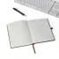 O bloco com textura soft touch é uma opção prática e estilosa para o dia a dia. Com capa rígida, oferece suporte de nylon para caneta, trazendo mais organização, embora o item não acompanhe a caneta . Conta com aproximadamente 96 folhas pautadas na cor marfim, ideais para anotações rápidas e listas de tarefas. O marcador de página em cetim facilita a localização de informações importantes, enquanto o elástico de fechamento com plaquinha emborrachada no centro garante segurança e um visual moderno. Perfeita para ser utilizada como brinde personalizado em eventos corporativos ou promocionais, a caderneta traz praticidade e funcionalidade em um único produto.