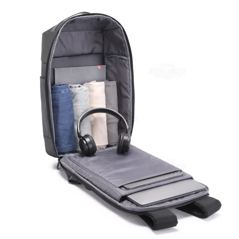 A mochila é confeccionada em poliéster acolchoado, oferecendo uma combinação ideal de conforto e durabilidade. Suas alças de ombro acolchoadas garantem um transporte leve e agradável, mesmo durante longas jornadas. O interior é projetado com divisórias que permitem organizar e proteger seus pertences, tornando-a prática para o uso diário, seja em ambientes de trabalho, estudos ou em viagens. Além disso, a mochila conta com um engate que facilita o transporte em conjunto com malas de viagem, proporcionando maior conveniência durante deslocamentos. Compatível com notebooks de 15,6”, oferece segurança e proteção para seu dispositivo. Com um design moderno e elegante, esta mochila não é apenas funcional, mas também uma excelente opção como brinde personalizado para empresas. É ideal para clientes e colaboradores que valorizam estilo e praticidade no seu dia a dia, refletindo a qualidade e o compromisso da marca em oferecer produtos que atendam às necessidades de seus usuários.