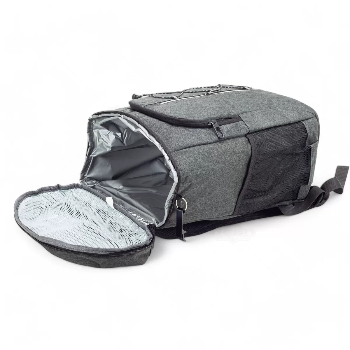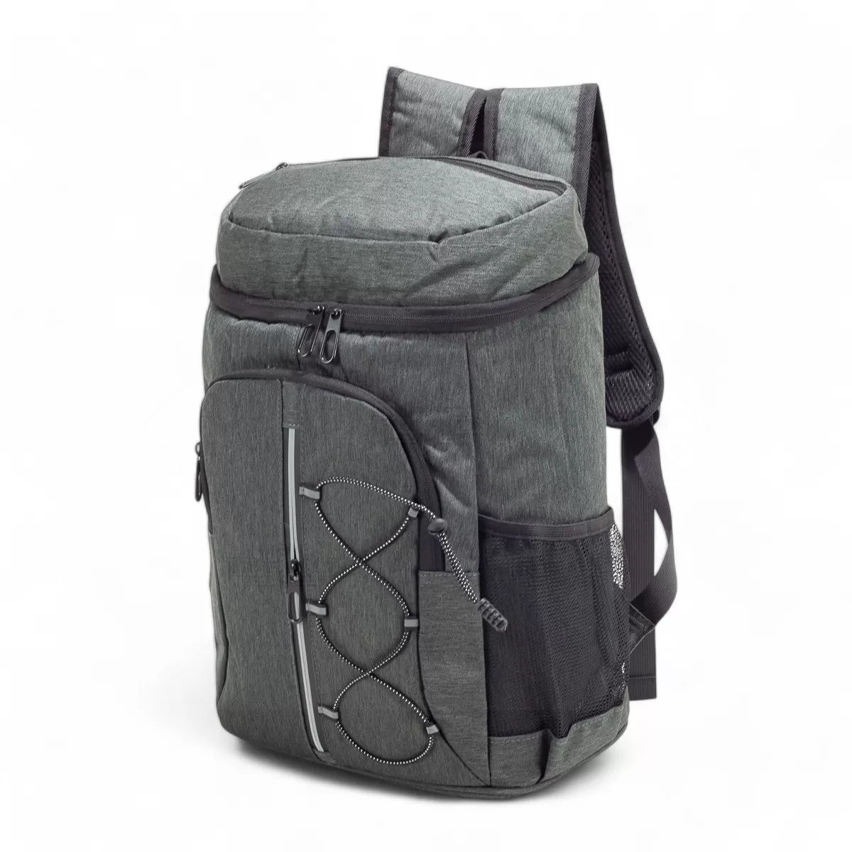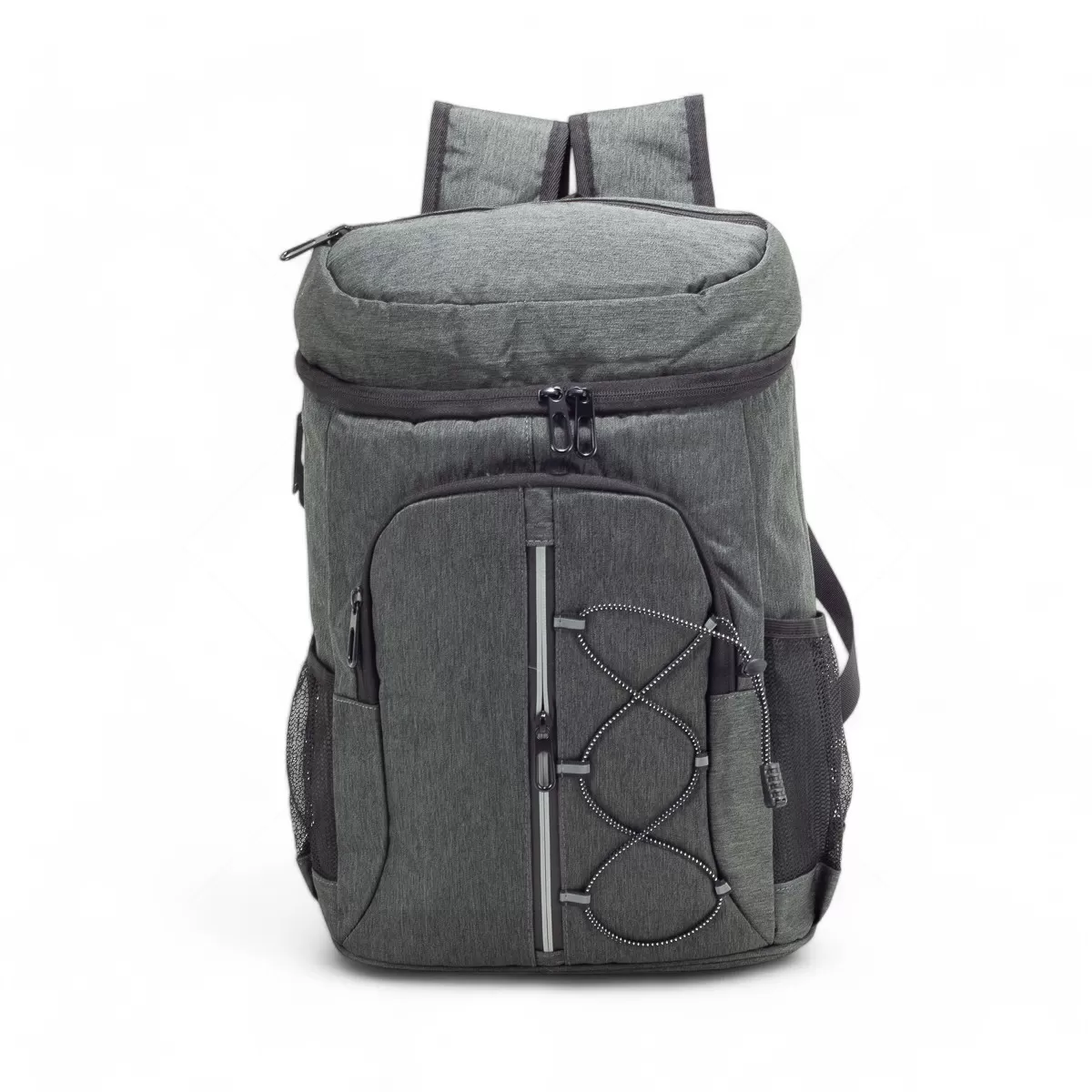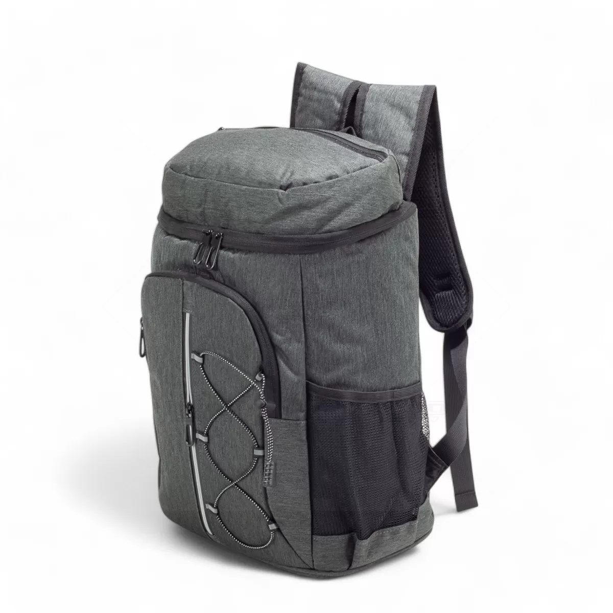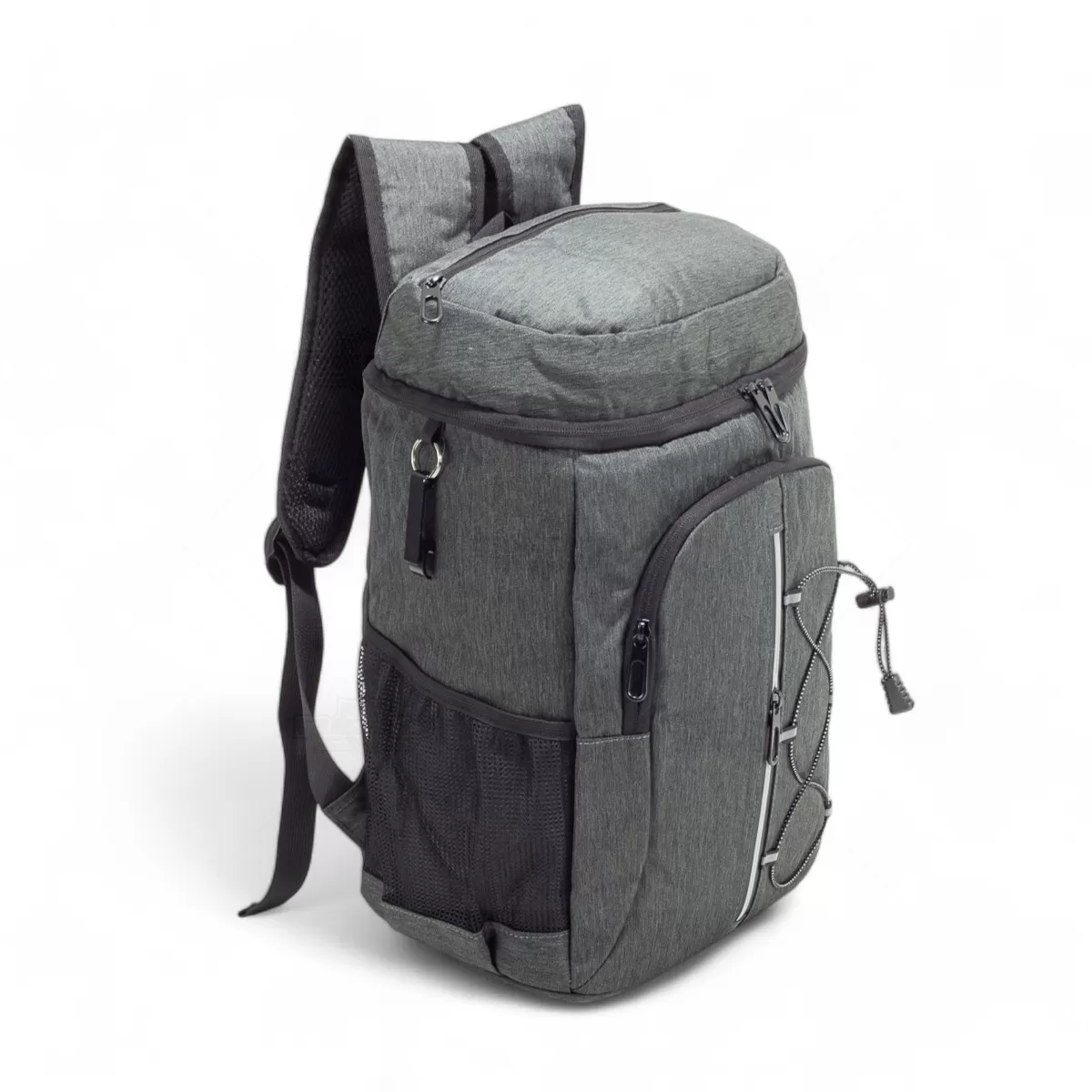 A mochila térmica de 32 litros é uma combinação perfeita de funcionalidade e praticidade, ideal para transportar alimentos e bebidas com segurança e estilo. Feita em oxford resistente à água, oferece durabilidade e proteção contra vazamentos graças ao compartimento principal revestido em PEVA atóxico, com costura soldada antivazamento que mantém a temperatura e preserva os alimentos. Além do espaço principal, possui dois compartimentos frontais com zíper, um deles equipado com faixa refletiva e elástico ajustável, garantindo maior visibilidade e organização. Os bolsos laterais telados proporcionam acesso rápido a garrafas e pequenos itens. As alças ajustáveis permitem carregá-la nas costas com conforto, tornando-a ideal para passeios, piqueniques e atividades ao ar livre. Para completar, inclui um chaveiro abridor de garrafas integrado, que adiciona praticidade extra. Essa bolsa térmica é uma excelente escolha para brindes personalizados, unindo design moderno e utilidade em qualquer ocasião.