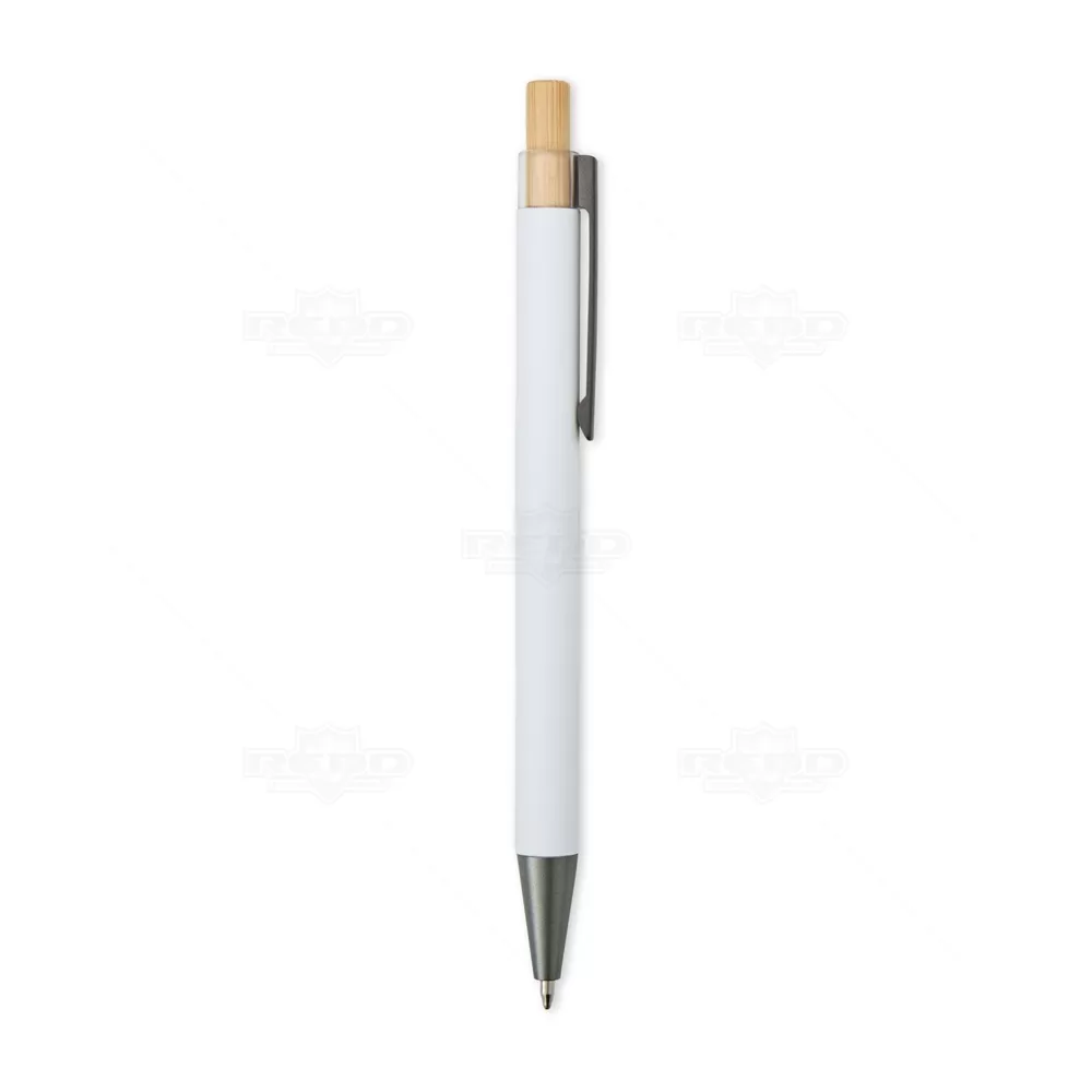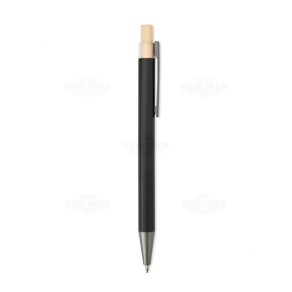 Caneta personalizada, produzida em alumínio 100% reciclado é um acessório elegante e sofisticado, ideal para trazer um toque de classe ao seu dia a dia e à sua mesa de trabalho. O corpo da caneta é produzido em alumínio, conferindo durabilidade e leveza ao acessório. O acionador em bambu adiciona um elemento natural e sustentável ao design, enquanto o clip cromado oferece um contraste brilhante e sofisticado. O detalhe transparente no topo da caneta feito em 100% rPET. adiciona um toque contemporâneo, permitindo vislumbrar o click em bambu, completando o visual elegante do item. A caneta possui escrita com tinta na cor azul, que é suave e consistente, ideal para anotações, assinaturas e uso diário, o acionamento por click facilita o uso rápido e prático, tornando a caneta conveniente para qualquer situação. Em resumo, esta caneta combina estilo, funcionalidade e sustentabilidade, destacando-se como uma escolha sofisticada e prática.