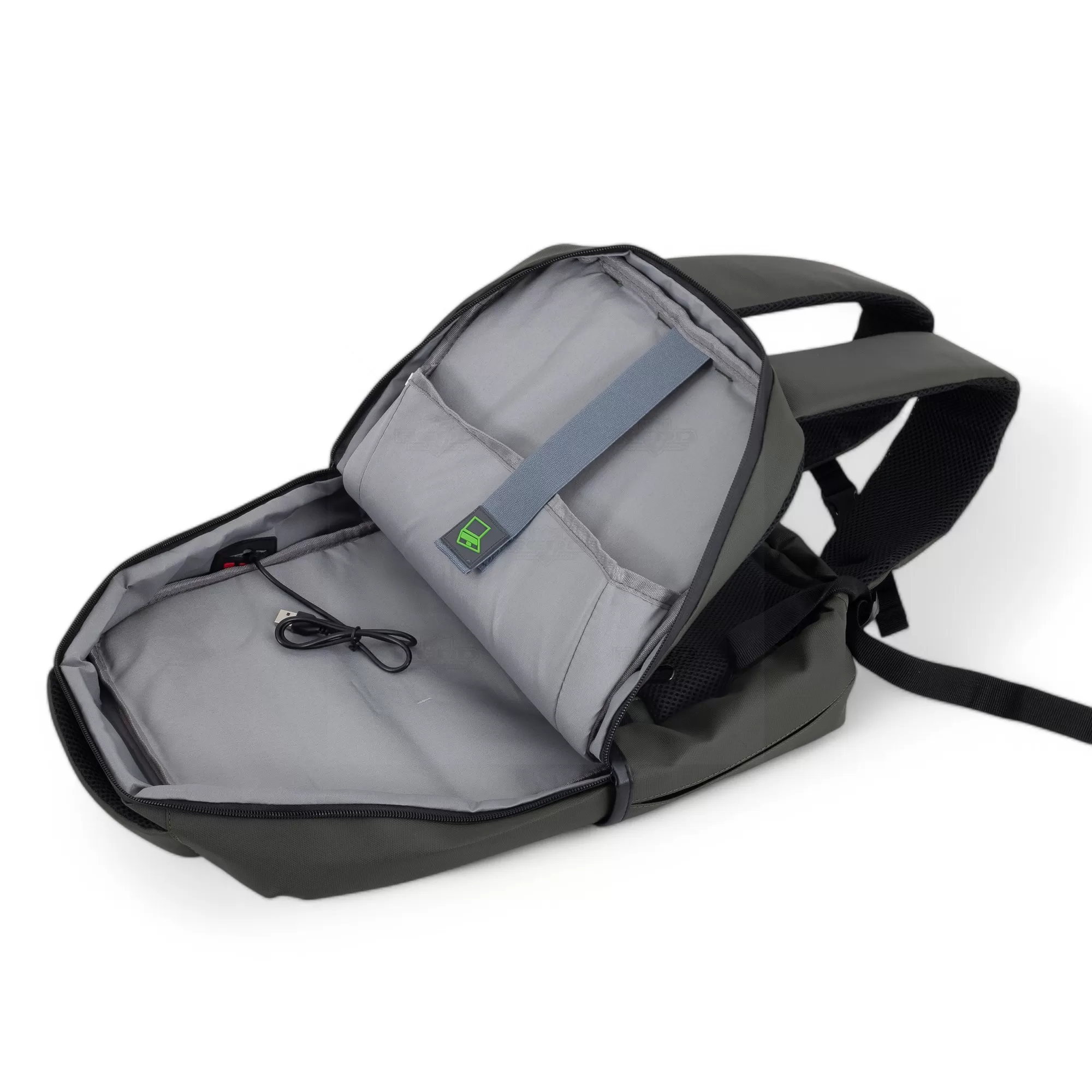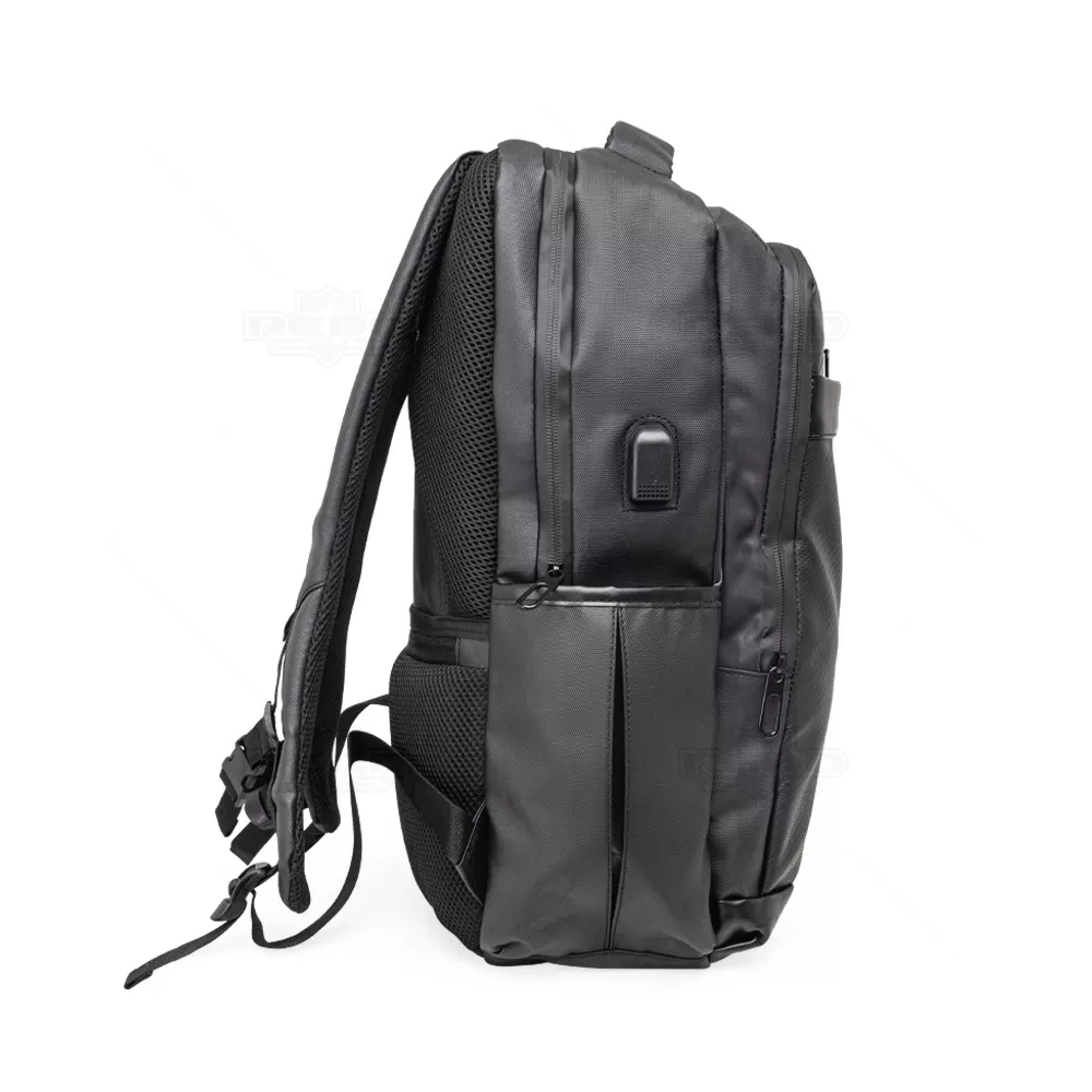 A mochila personalizada de 36 litros une praticidade e conforto! Feita de couro sintético resistente à água e com um design super inteligente, ela é perfeita para o ambiente de trabalho. Tem quatro compartimentos principais: um frontal, outro com bolsos e divisórias para documentos e canetas, um antifurto para manter seus itens mais valiosos seguros, e um espaço grande o suficiente para notebooks de até 15,6" com entrada para cabo USB. Também possui uma placa de metal de 4 x 1 cm para personalização, vem com dois bolsos laterais, alças ajustáveis e acolchoadas para distribuir o peso de forma equilibrada, acabamento refletivo e uma parte traseira confortável. E ainda tem um engate para malas de viagem, tornando-se a parceira ideal para o trabalho e para o dia a dia.