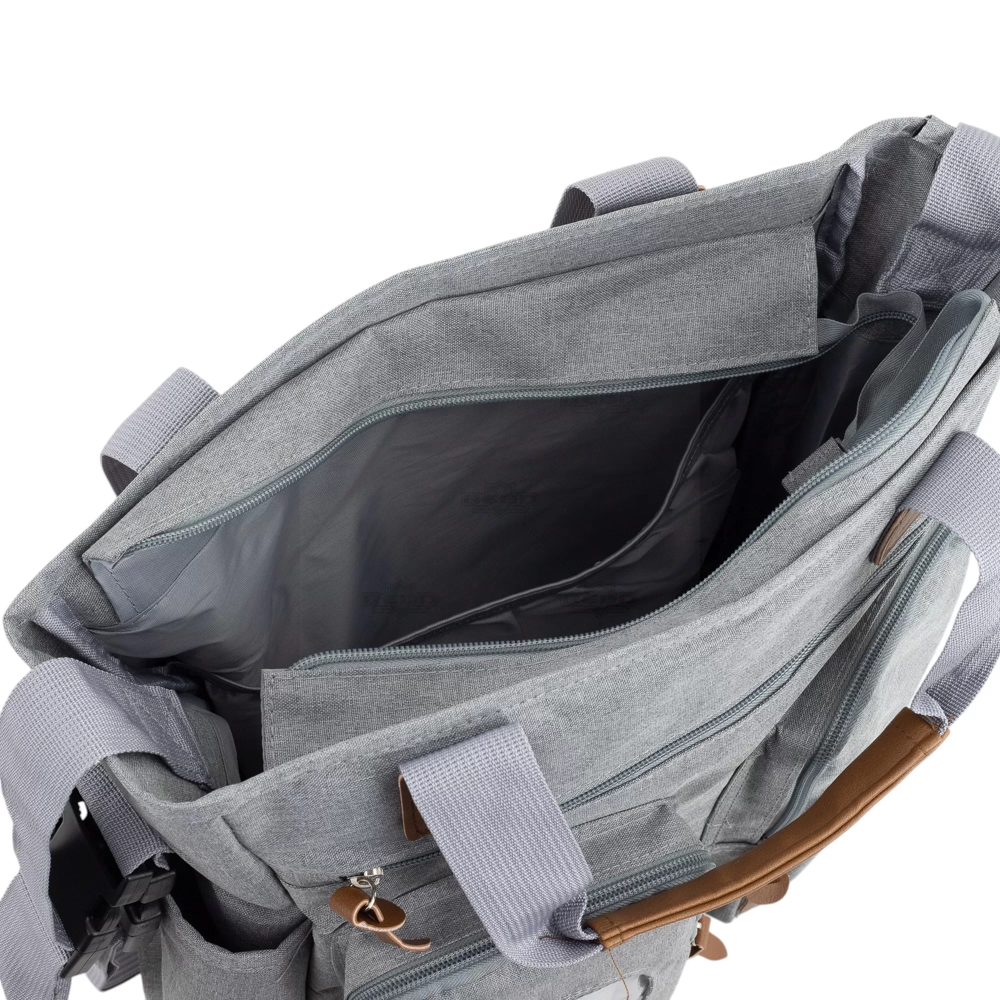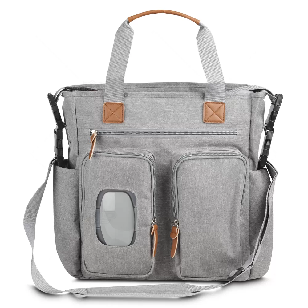 A bolsa maternidade é feita em poliéster com detalhes em PU, combinando durabilidade e estilo. Conta com dois compartimentos laterais e três bolsos frontais com zíper, além de um bolso adicional na parte oposta com fechamento em velcro, incluindo um compartimento específico para lenços umedecidos. As alças de ombro e de mão, com acabamento em PU, oferecem conforto e praticidade. Seu interior amplo é equipado com divisórias para melhor organização, e o fechamento em zíper garante a segurança dos itens. Uma opção prática e funcional para o dia a dia. Com diversos compartimentos e bolsos, ela facilita o acesso rápido a itens como fraldas, lenços umedecidos, roupas, mamadeiras, e outros objetos necessários. É especialmente útil para passeios, consultas, viagens ou qualquer situação em que seja necessário carregar diversos itens de forma prática e organizada.