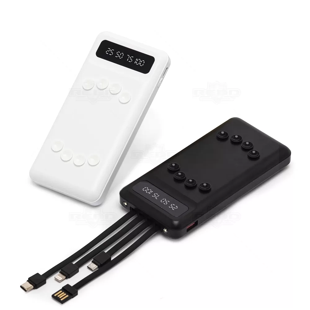 Carregador power bank de 10.000mAh com lanterna integrada e múltiplas saídas, ideal para quem busca praticidade e eficiência no dia a dia. Fabricado em plástico resistente, possui um display digital que facilita o monitoramento da carga. Equipado com quatro cabos de carregamento embutidos, elimina a necessidade de levar cabos extras, oferecendo mais comodidade. Compatível com entradas V8, Tipo-C, Lightning e USB, é uma solução versátil para manter diversos dispositivos sempre carregados. Para maior segurança e facilidade de transporte, o power bank conta com ventosas que fixam o celular durante o uso, evitando quedas. Acompanha cabo USB-V8 e lanterna integrada, sendo ideal para viagens, eventos corporativos ou uso diário. Uma escolha prática e funcional que combina tecnologia e conveniência, perfeita como brinde personalizado ou item essencial para o público conectado.