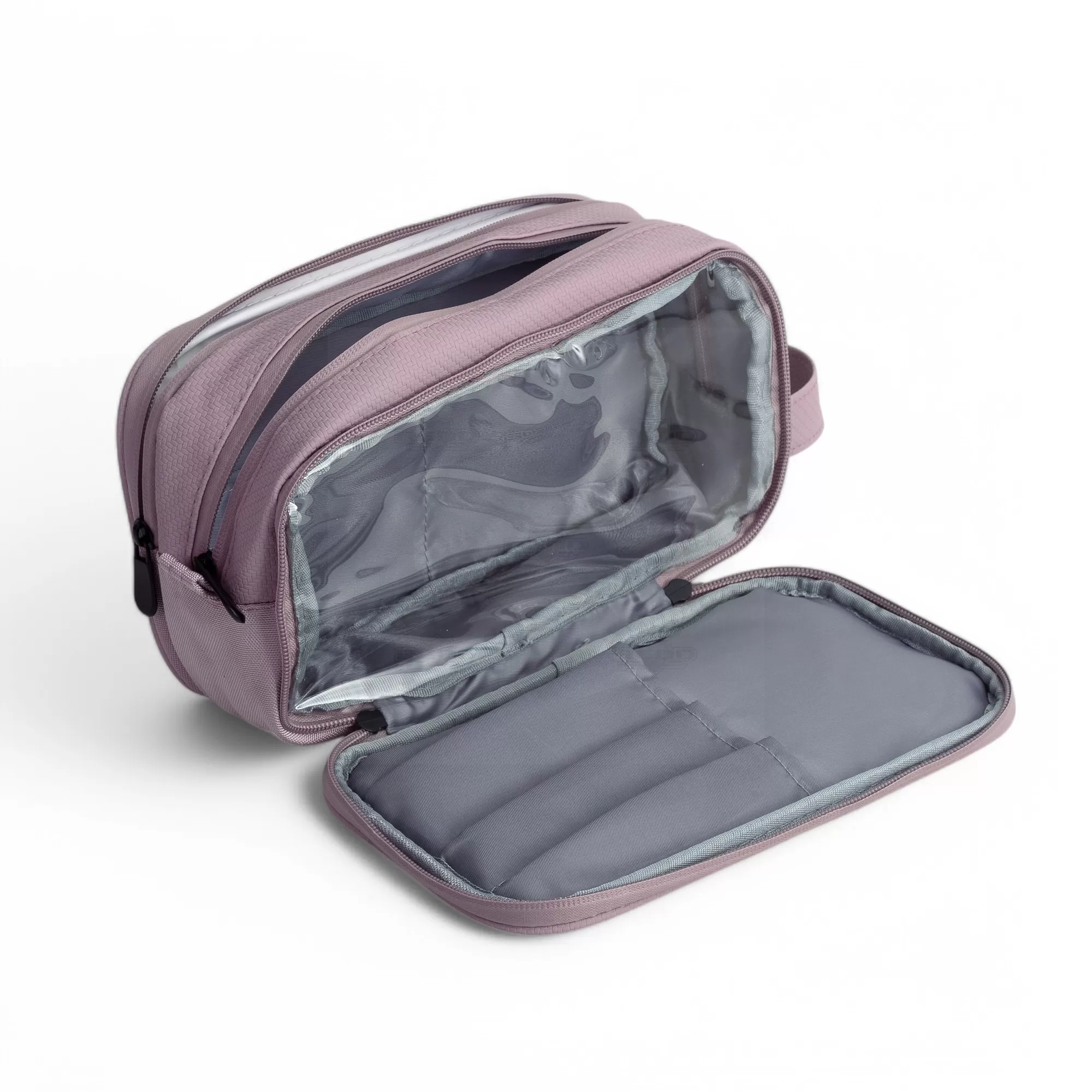 Necessaire em poliéster PVC, resistente à água e projetada para oferecer praticidade e organização em qualquer ocasião. Com três compartimentos distintos, atende a diversas necessidades: um para itens úmidos, outro principal com dois bolsos internos para guardar objetos com segurança e um compartimento com lateral transparente, permitindo fácil visualização do conteúdo. Além disso, conta com três divisórias internas ideais para armazenar lápis, escova de dentes, cremes e outros itens essenciais, garantindo máxima organização. Equipada com duas alças, oferece versatilidade no transporte – uma de mão para maior praticidade e outra perfeita para pendurar chaveiros ou acessórios. Compacta e funcional, essa necessaire é uma excelente opção para brindes personalizados em eventos promocionais ou corporativos. Seja para viagens, academias ou uso diário, proporciona praticidade, proteção e um design moderno, tornando-se um item indispensável para quem busca conveniência e estilo.