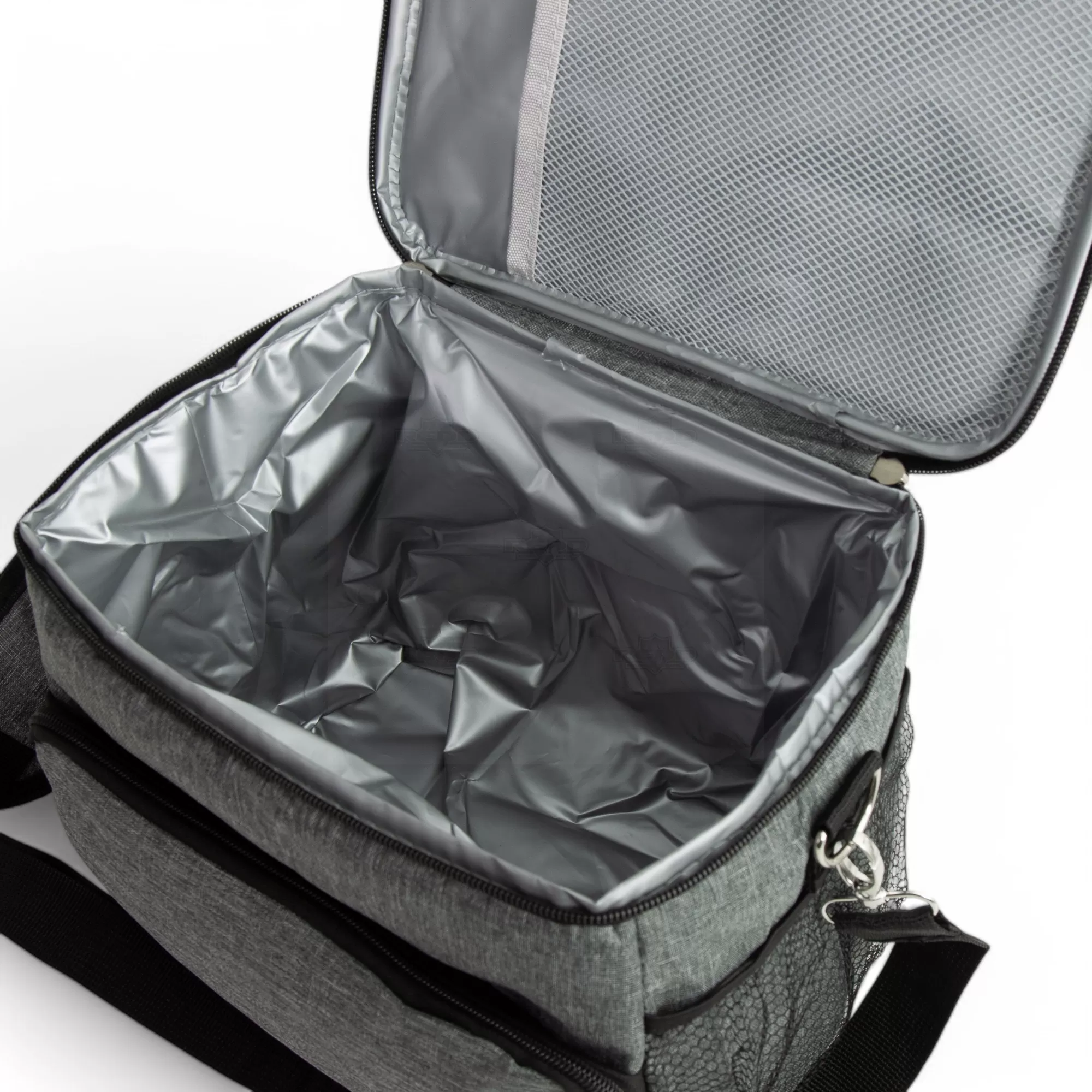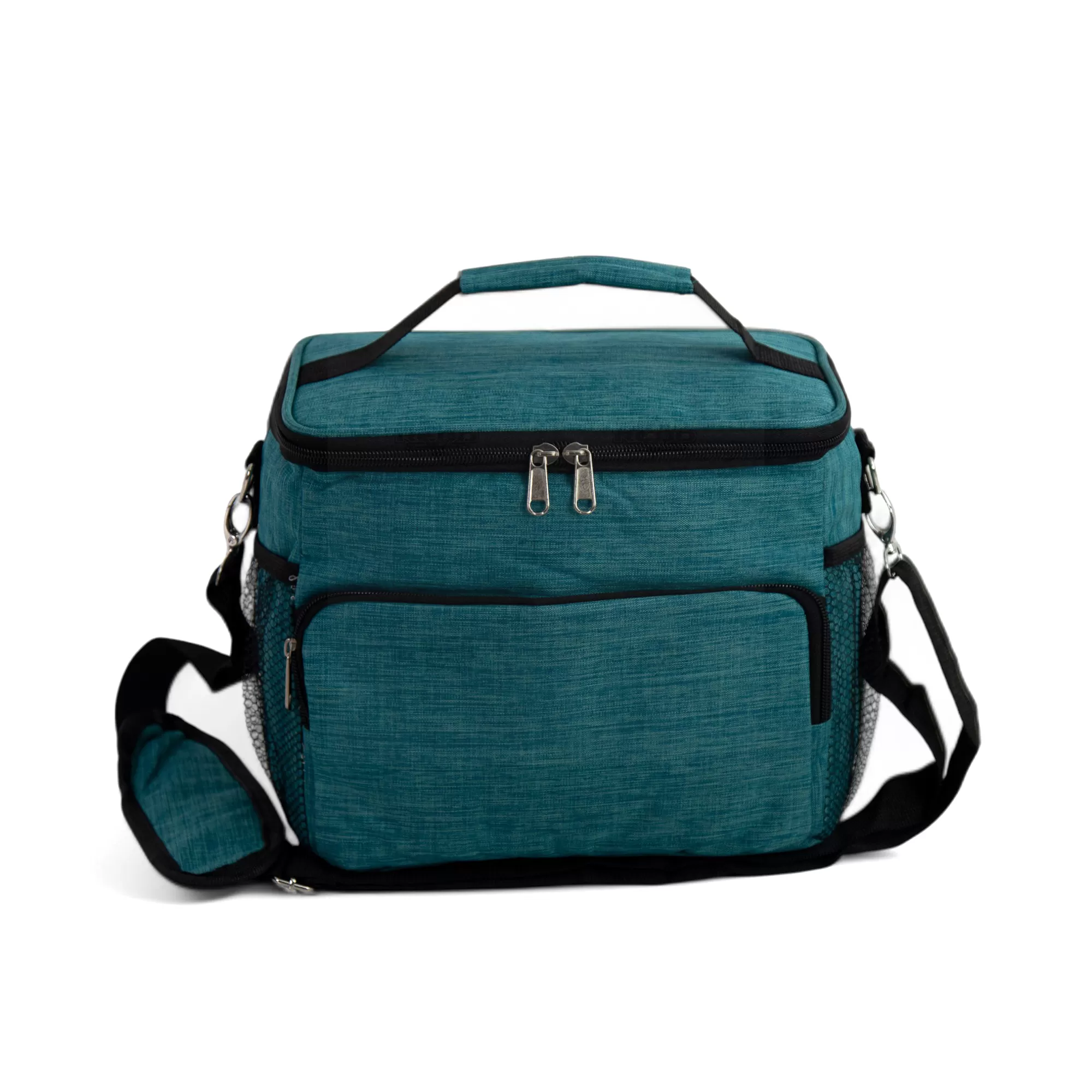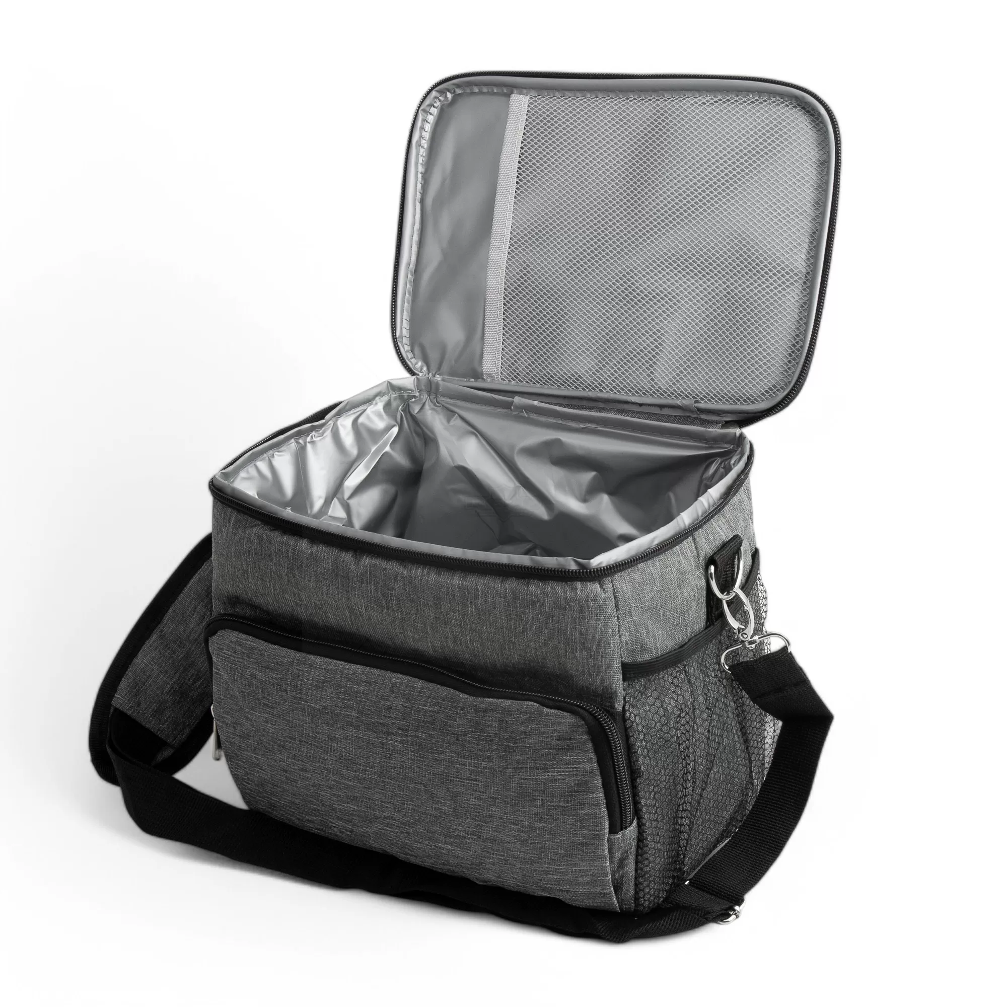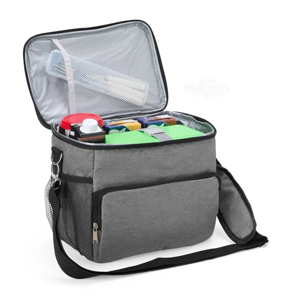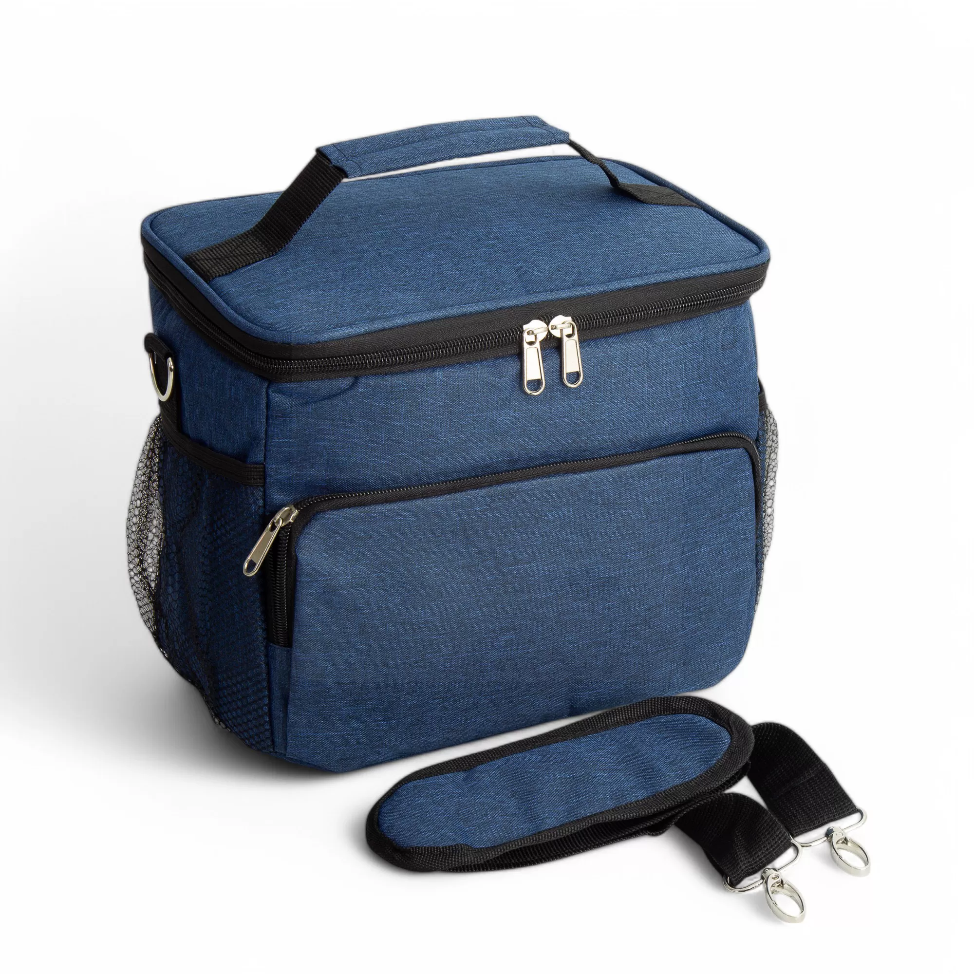 Bolsa térmica de poliéster, perfeita para manter alimentos e bebidas na temperatura ideal com praticidade e segurança. Conta com dois compartimentos espaçosos e um bolso telado interno, proporcionando organização eficiente para diferentes tipos de itens. Seu revestimento térmico em PEVA atóxico, com costura soldada, garante um isolamento impecável, mantendo o conteúdo protegido por mais tempo. Equipada com alça de mão e alça transversal ajustável e removível, oferece versatilidade no transporte, adaptando-se a diferentes necessidades. Além disso, possui bolsos laterais telados, ideais para armazenar pequenos objetos de fácil acesso. Moderna e funcional, é uma excelente escolha para o dia a dia, viagens, passeios ou como brinde personalizado em eventos promocionais. Combinando resistência e praticidade, essa bolsa térmica é indispensável para quem busca conveniência e eficiência no transporte de alimentos.