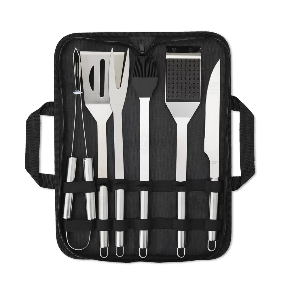 O kit churrasco é composto por 6 peças de alumínio, incluindo pegador, espátula, pincel, garfo, faca e escova para grelha, todas fabricadas em alumínio de alta resistência, garantindo durabilidade e leveza. O design das peças é ergonômico e moderno, combinando funcionalidade e estilo para atender às necessidades de quem aprecia um bom churrasco. O kit vem acompanhado de um estojo de nylon com alça, que oferece proteção e organização às peças, além de facilitar o transporte e o armazenamento. Ideal para uso doméstico, piqueniques, viagens ou eventos ao ar livre, o produto também se destaca como opção para brindes promocionais, eventos corporativos ou presentes personalizados, agregando valor e utilidade.