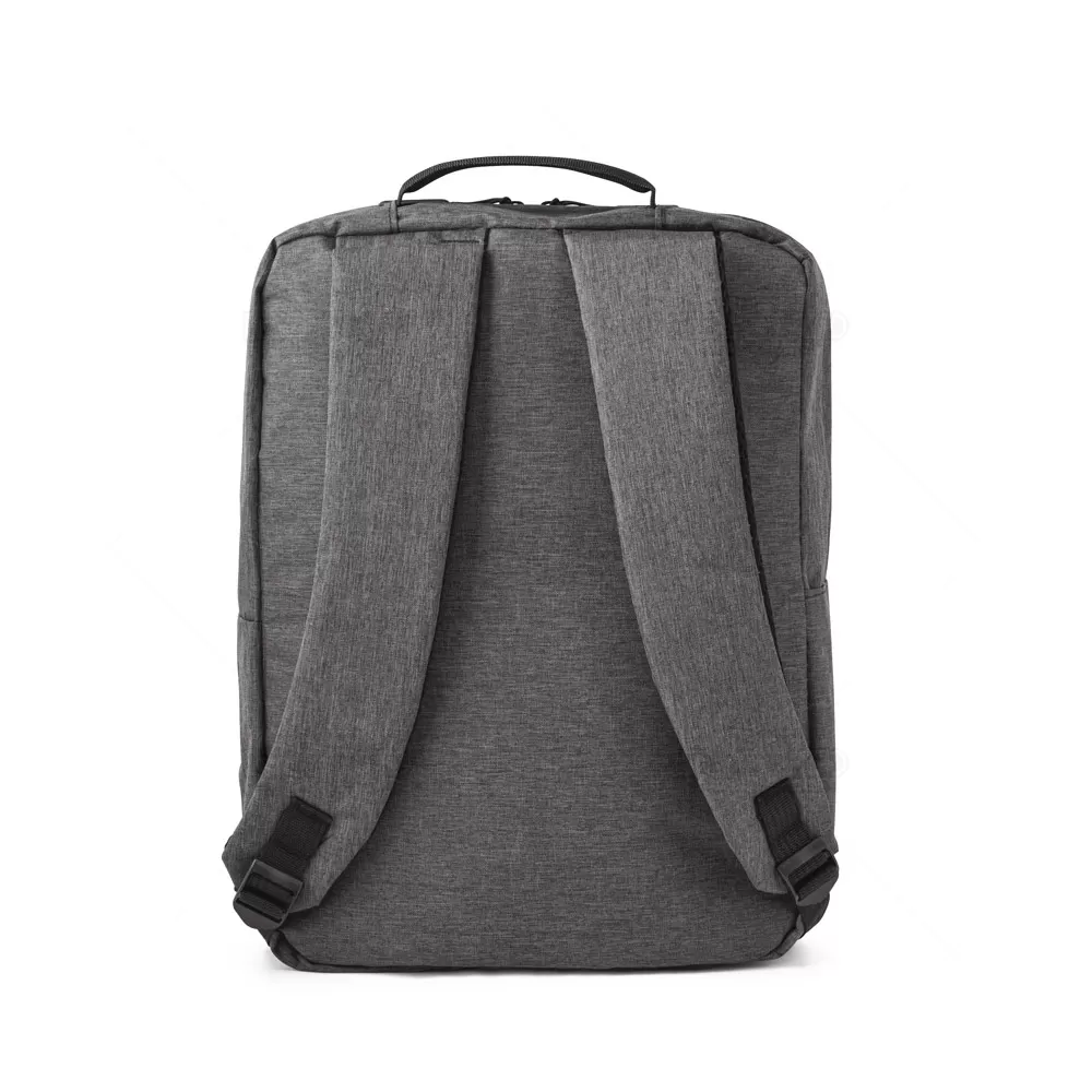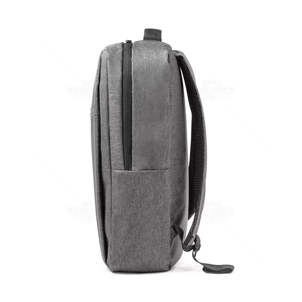 Mochila para notebook em 300D com placa de personalização. Tem 1 compartimento principal com bolso forrado para notebook até 15,6" e diversos bolsos interiores. Contém ainda bolso frontal e lateral . Parte posterior e alças são almofadadas. Imagem ilustrativa.