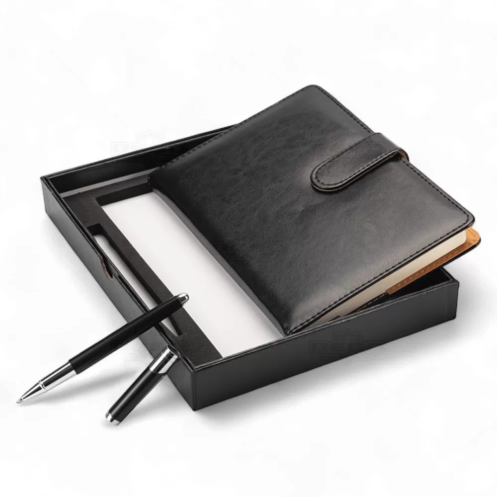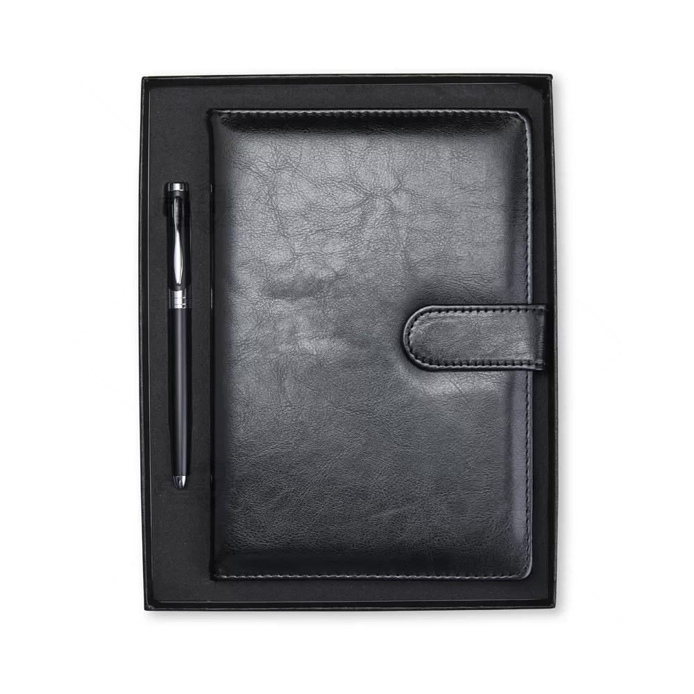 O Conjunto Escritório é um brinde sofisticado e funcional, ideal para ações promocionais que visam transmitir profissionalismo, organização e apreço pelos detalhes. Composto por uma caneta metálica esferográfica de ponta 1.0mm na cor preta, oferece escrita fluida e elegante, perfeita para o dia a dia corporativo. Acompanha uma caderneta em couro sintético com fechamento imantado, que confere um toque moderno e seguro ao acessório. Suas aproximadamente 96 folhas pautadas na cor marfim proporcionam uma escrita confortável, enquanto a fita de cetim facilita o acesso a páginas importantes. O suporte acomoda a caneta com praticidade, mantendo o conjunto sempre pronto para uso. Apresentado em um estojo de papelão com acabamento clean e acompanhado de uma plaquinha metálica para personalização, este kit agrega valor e visibilidade à marca. Um brinde estratégico para empresas que desejam marcar presença com elegância e utilidade no ambiente de trabalho.
