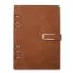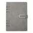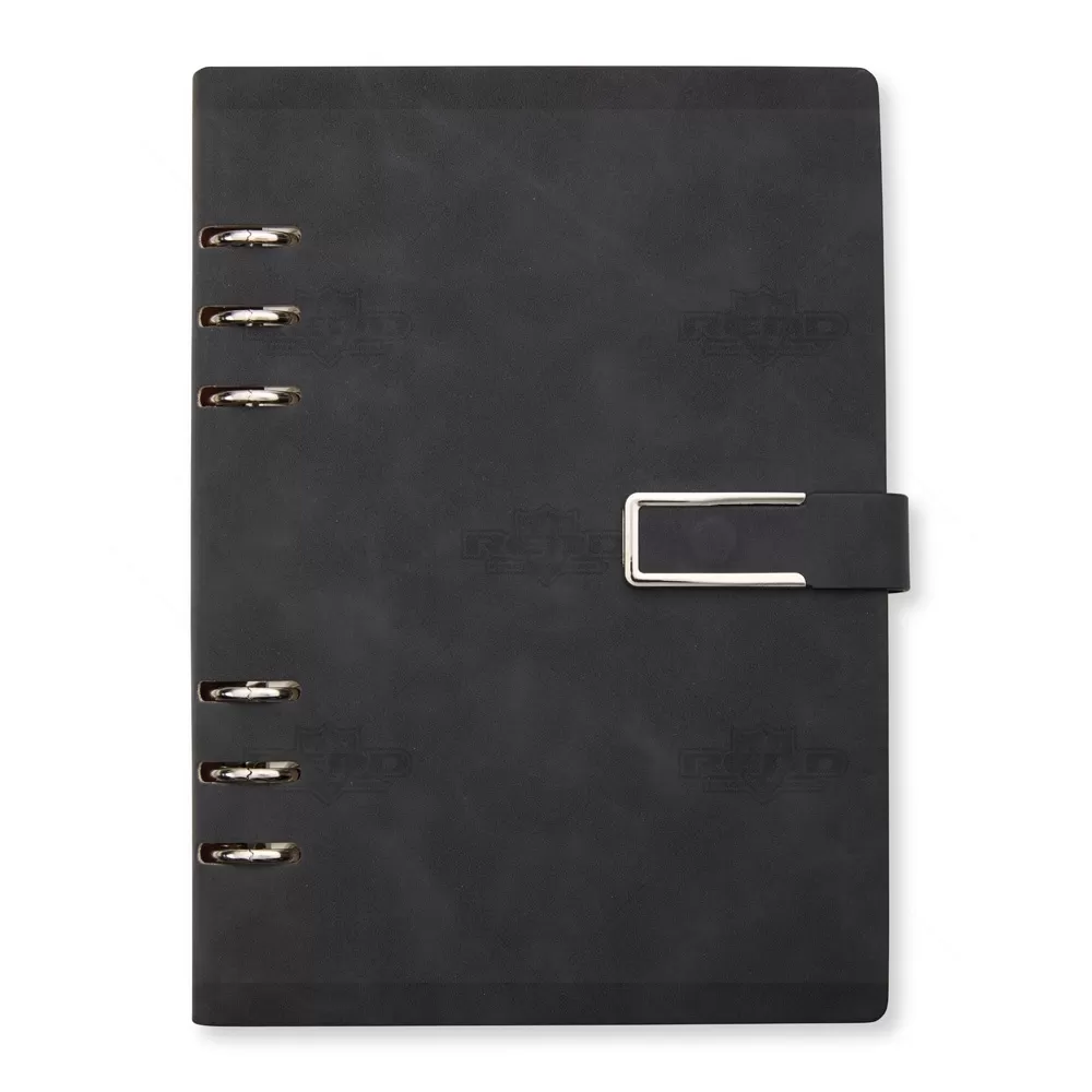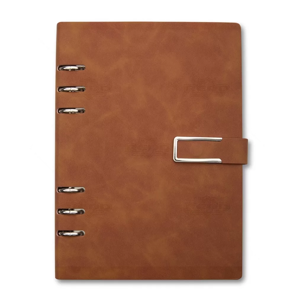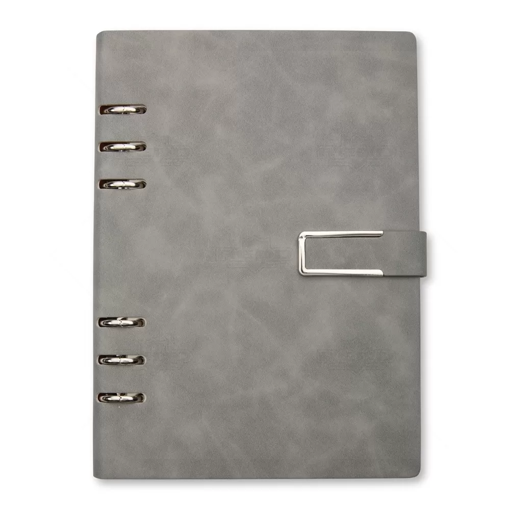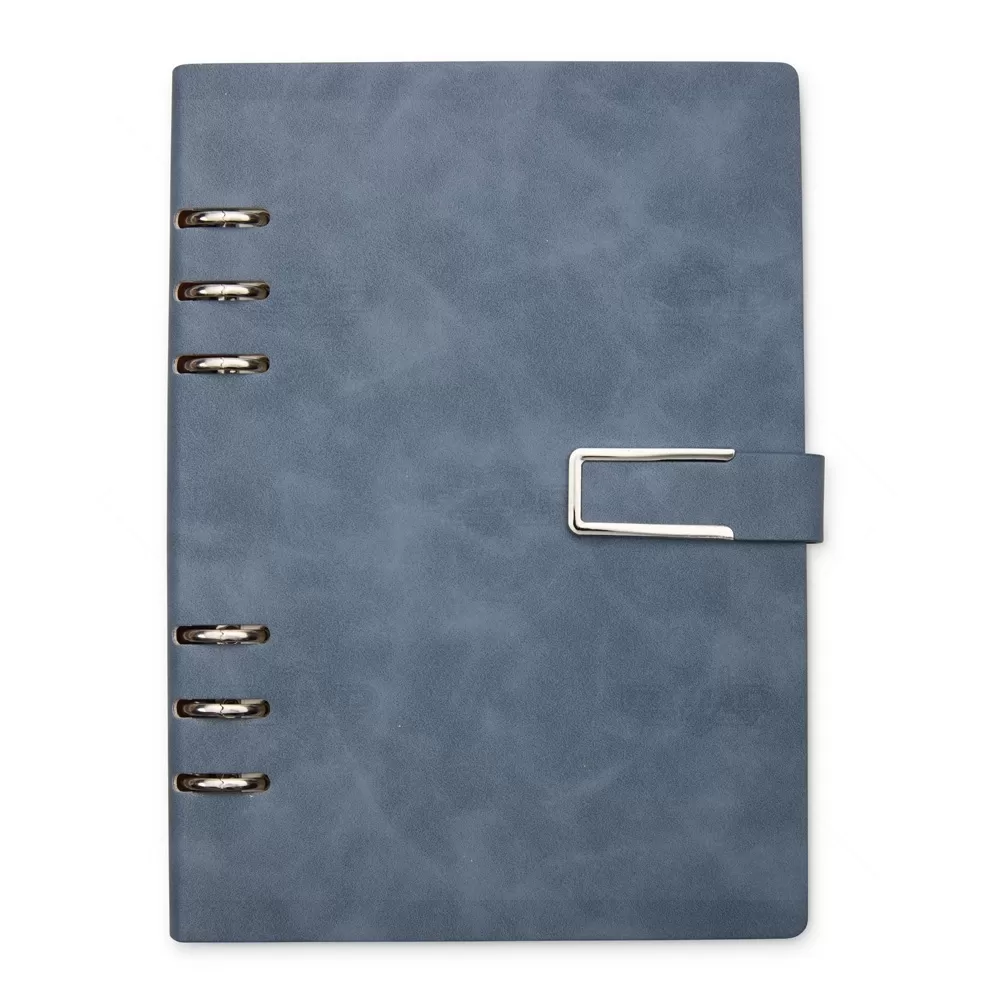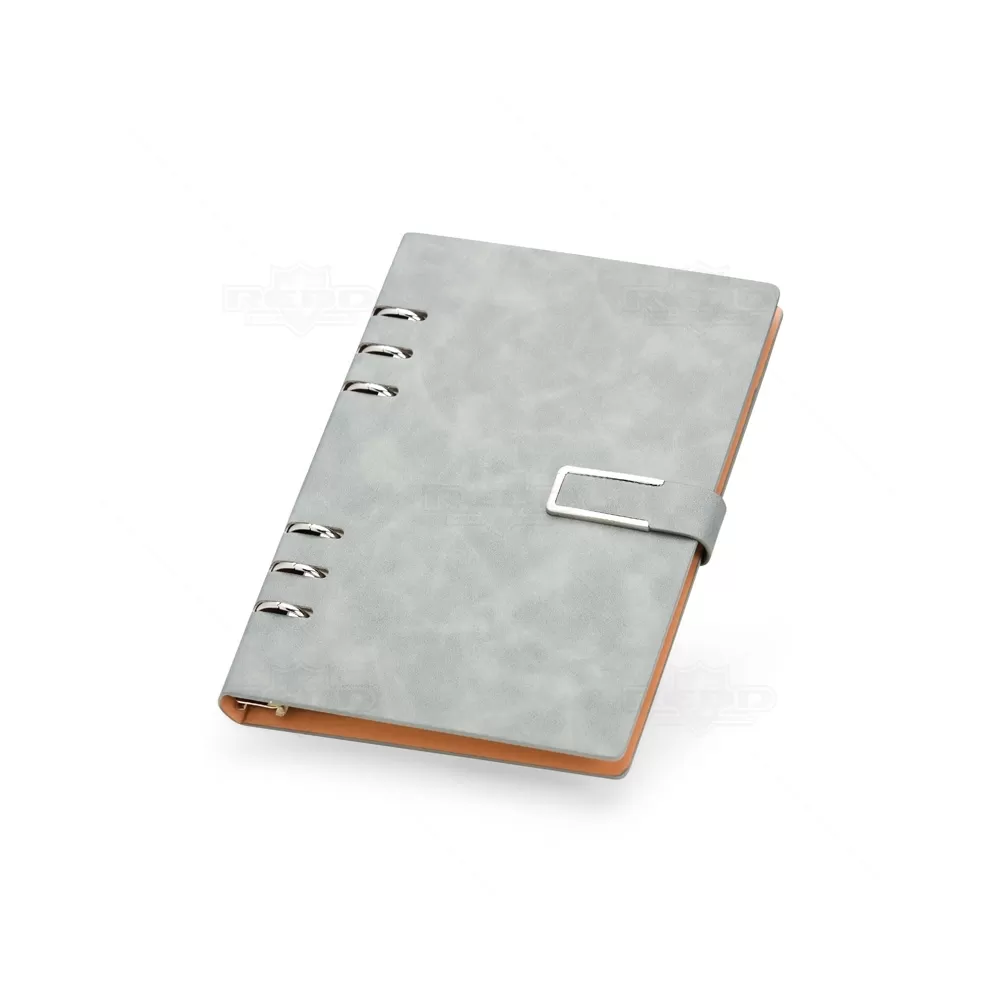 Este bloco fichário em PU combina sofisticação e funcionalidade em um acessório compacto e elegante. Com capa dura no formato A5 e acabamento texturizado, oferece resistência e estilo para o uso diário em ambientes corporativos, acadêmicos ou pessoais. Seu fechamento com fivela imantada garante segurança e praticidade, mantendo o conteúdo sempre protegido. Internamente, conta com 119 folhas em papel marfim pautado, que proporcionam uma escrita suave e agradável. A primeira página inclui um espaço dedicado para dados pessoais, facilitando a identificação em caso de perda. Os seis anéis metálicos permitem total liberdade para remover, reorganizar ou adicionar folhas, adaptando-se às necessidades de organização de cada usuário. Este bloco é ideal para anotações, planejamentos ou registros profissionais. Com visual moderno e utilidade comprovada, é também uma excelente escolha como brinde em eventos empresariais, feiras e ações promocionais, oferecendo uma lembrança refinada que reforça a imagem da marca com praticidade e bom gosto.
