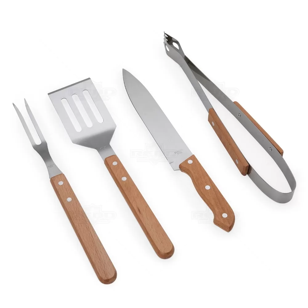 Este kit churrasco reúne quatro peças essenciais para quem valoriza praticidade e eficiência na hora de preparar carnes com excelência. Composto por espátula, garfo, pegador e uma robusta faca de 7 polegadas, todos os utensílios são fabricados em aço inox, oferecendo durabilidade e resistência ao calor. Os cabos de madeira proporcionam um toque rústico e confortável ao manuseio, além de conferirem estilo ao conjunto. Acompanha um estojo de nylon funcional, que facilita o armazenamento e transporte dos itens, mantendo tudo organizado para uso em casa ou em encontros ao ar livre. Para maior exclusividade, o kit inclui uma plaquinha metálica personalizável com verso autoadesivo, ideal para aplicação de logomarcas ou mensagens institucionais. É uma escolha certeira como brinde promocional em campanhas voltadas ao universo gourmet, ações corporativas ou datas comemorativas, agregando valor à marca com um item útil, elegante e alinhado a momentos de confraternização.