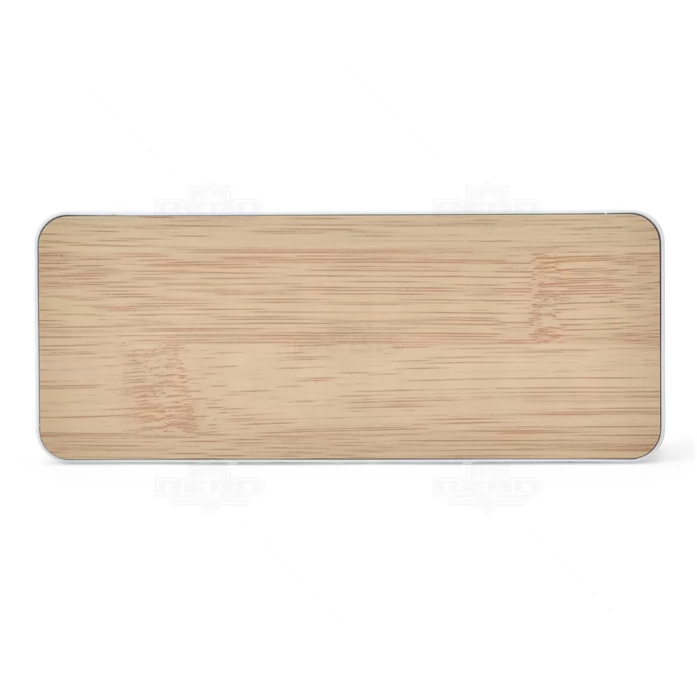 Moderno e funcional, este relógio despertador é produzido em bambu e plástico, unindo design natural com tecnologia. Conta com painel de LED de fácil leitura, que exibe a hora, data e temperatura ambiente de forma clara e elegante. O alarme pode ser personalizado com ajuste de frequência sonora e configuração dos dias de acionamento, ideal para adaptar a rotina do usuário. Possui três níveis de intensidade luminosa no display, permitindo maior conforto visual em diferentes ambientes. Pode ser alimentado por uma pilha AAA (não inclusa) ou via cabo USB DC 5V, que acompanha o produto, oferecendo flexibilidade no uso. Compacto e sofisticado, é ideal para mesas de escritório, criados-mudos ou ambientes corporativos. Por sua estética contemporânea, utilidade diária e apelo sustentável, é uma excelente opção de brinde personalizado para ações promocionais, campanhas institucionais ou eventos que valorizem inovação, funcionalidade e consciência ambiental.