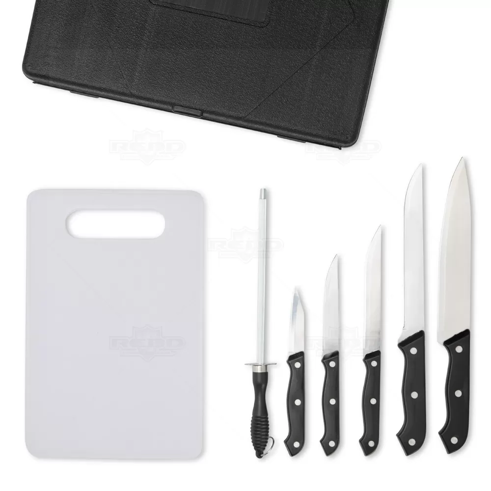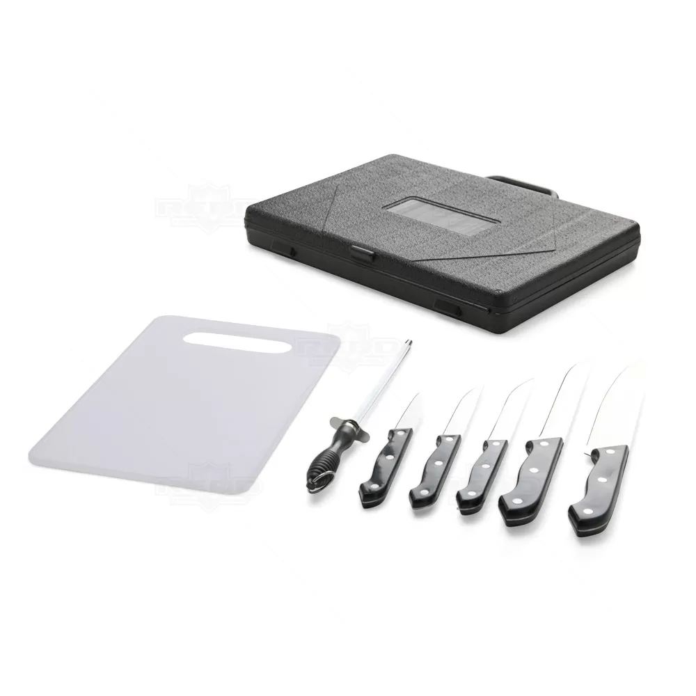 O Kit Churrasco 7 Peças é uma solução completa para quem busca praticidade e precisão no preparo de carnes e alimentos. Acompanha uma tábua em plástico resistente, ideal para cortes seguros e higiênicos, e uma chaira em aço inox para manter as lâminas sempre afiadas. Inclui ainda cinco facas de diferentes tamanhos e finalidades: faca de legumes (3”), faca de cozinha (4”), faca de desossar (5”), faca trinchante (7”) e faca peixeira (8”), todas com lâminas em aço inox e cabos ergonômicos para maior controle e segurança no manuseio. Os itens são organizados em uma maleta plástica robusta, que facilita o transporte e garante proteção durante o armazenamento. Perfeito para uso doméstico ou em confraternizações, o kit atende tanto iniciantes quanto entusiastas do churrasco. Por sua apresentação prática e elegante, é uma excelente opção de brinde personalizado em ações promocionais, eventos corporativos ou datas comemorativas.