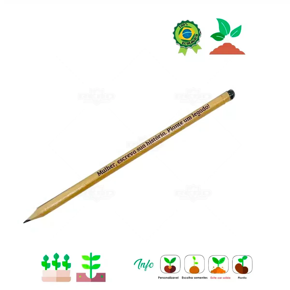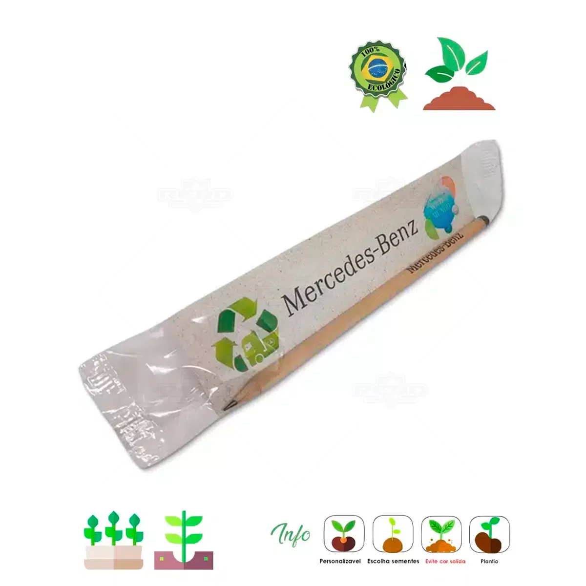 O Lápis Semente é uma proposta criativa e ecológica que alia funcionalidade à consciência ambiental. Produzido em madeira e acompanhado de embalagem, ele possui na extremidade uma cápsula biodegradável com sementes selecionadas, como hortaliças, flores ou árvores. Após o uso, basta plantar o lápis com a ponta para cima e regar com frequência para que a semente germine, proporcionando uma experiência sustentável e interativa. Estão disponíveis sementes de embaúba, figueira branca, rúcula, almeirão, agrião, salsa, coentro, crotalária e gipsofila. Com espaço para personalização, pode receber frases ou logotipos que reforcem mensagens institucionais e valores ambientais. É ideal para campanhas educativas, eventos corporativos, datas comemorativas ou ações de responsabilidade socioambiental, reforçando o simbolismo do ciclo entre escrever e cultivar. Uma excelente opção de brinde personalizado para empresas que desejam conectar sua marca a causas sustentáveis, inovação e compromisso com o futuro do planeta.