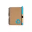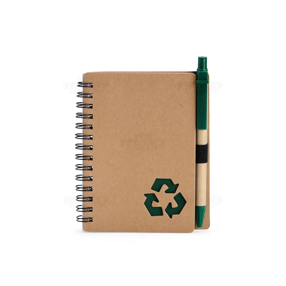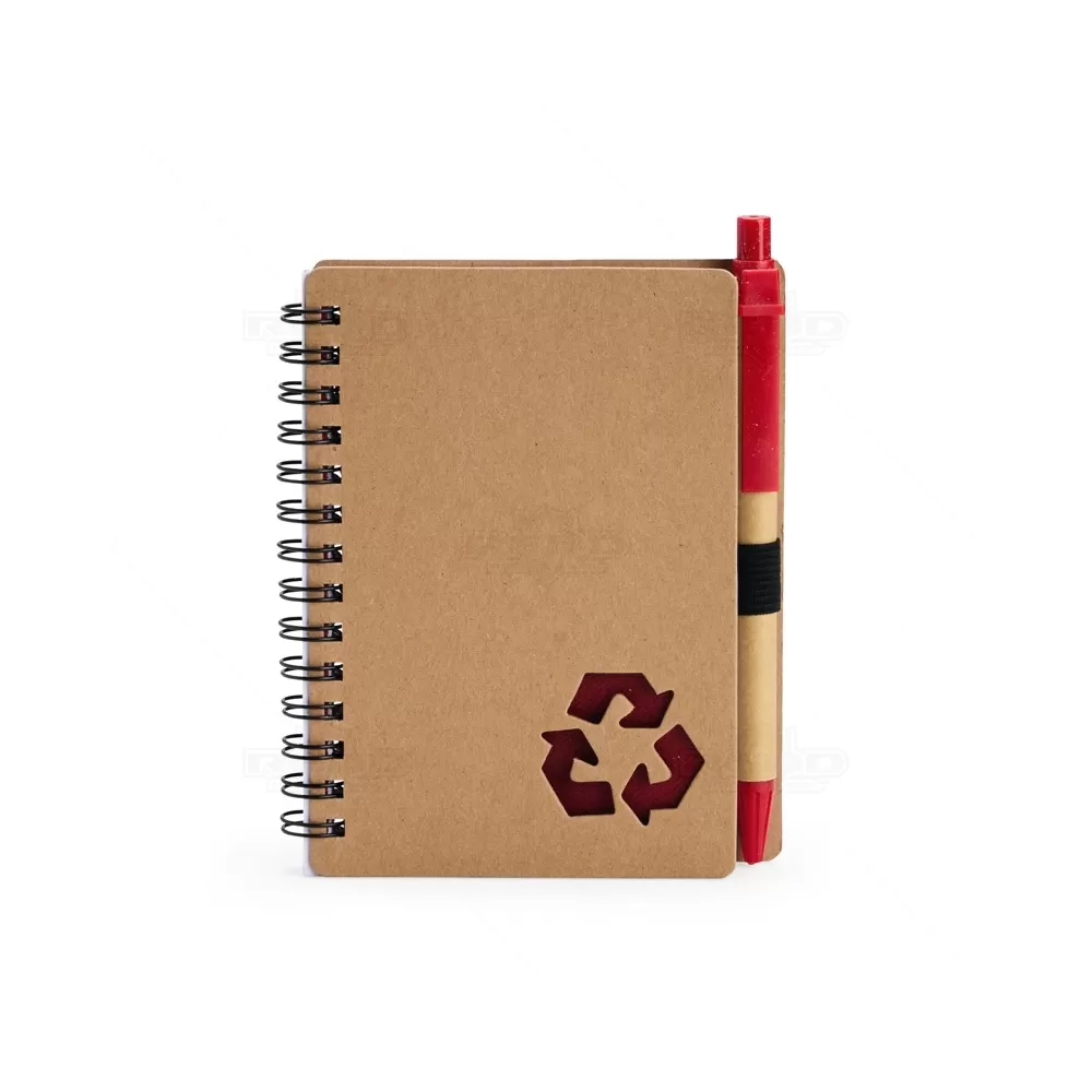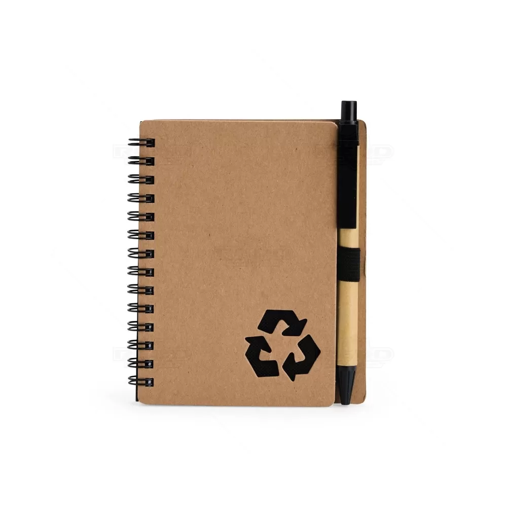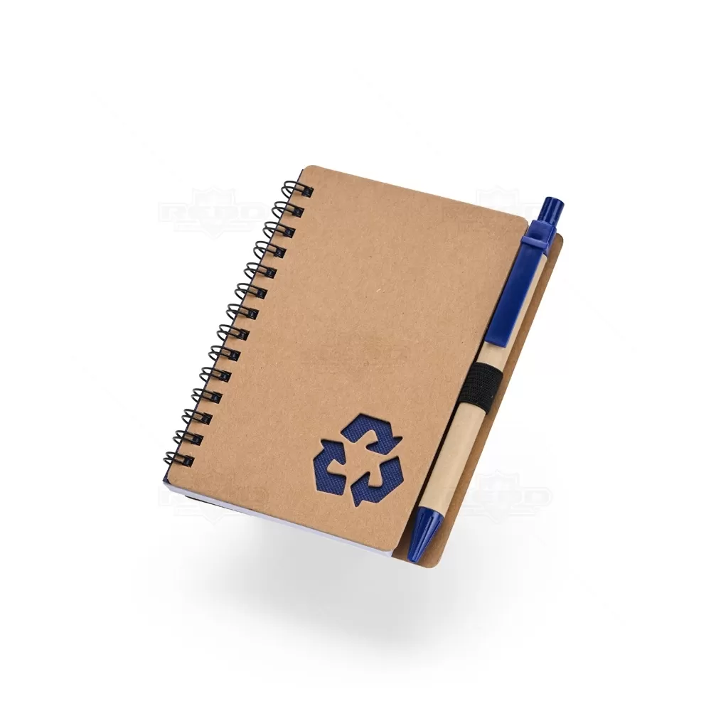 Este bloco ecológico é uma opção funcional e consciente para o dia a dia. Sua capa é produzida em papelão resistente, com detalhe vazado que remete ao símbolo da reciclagem, reforçando seu apelo sustentável. Possui encadernação Wire-O, que garante maior durabilidade e facilita o manuseio das páginas. Com aproximadamente 70 folhas pautadas em papel branco, oferece espaço ideal para anotações organizadas em ambientes corporativos, educacionais ou pessoais. Acompanha uma caneta esferográfica de carga azul 1,0 mm, com corpo em papelão reciclável, clip funcional, acionamento por clique e ponteira em plástico, promovendo uma combinação equilibrada entre utilidade e responsabilidade ambiental. Um elástico integrado à capa mantém a caneta sempre acessível, agregando praticidade ao conjunto. Esse produto é ideal como brinde personalizado em eventos sustentáveis, campanhas ecológicas, feiras ou ações promocionais que buscam destacar o compromisso com a sustentabilidade e proporcionar visibilidade à marca de forma consciente.
